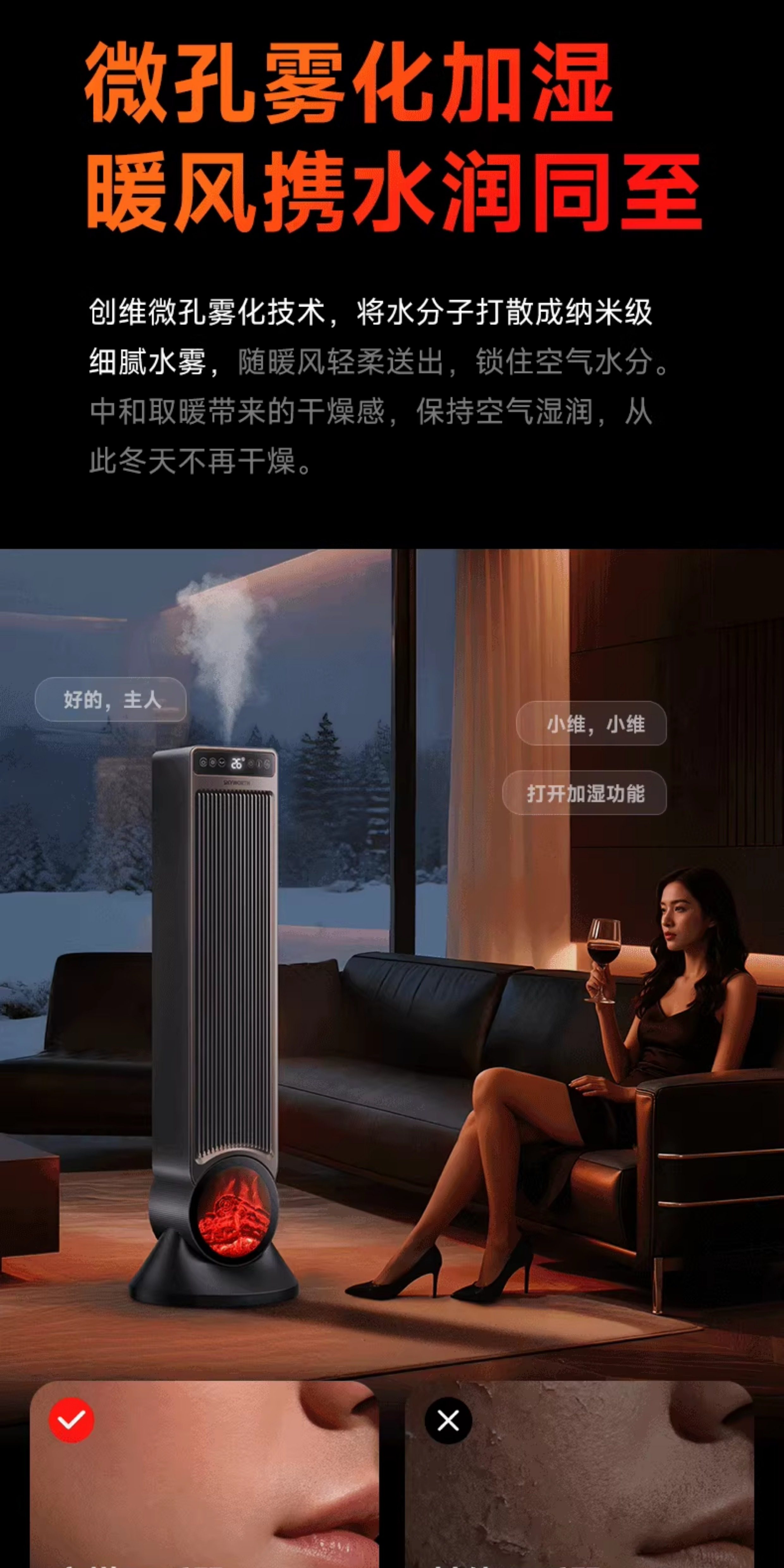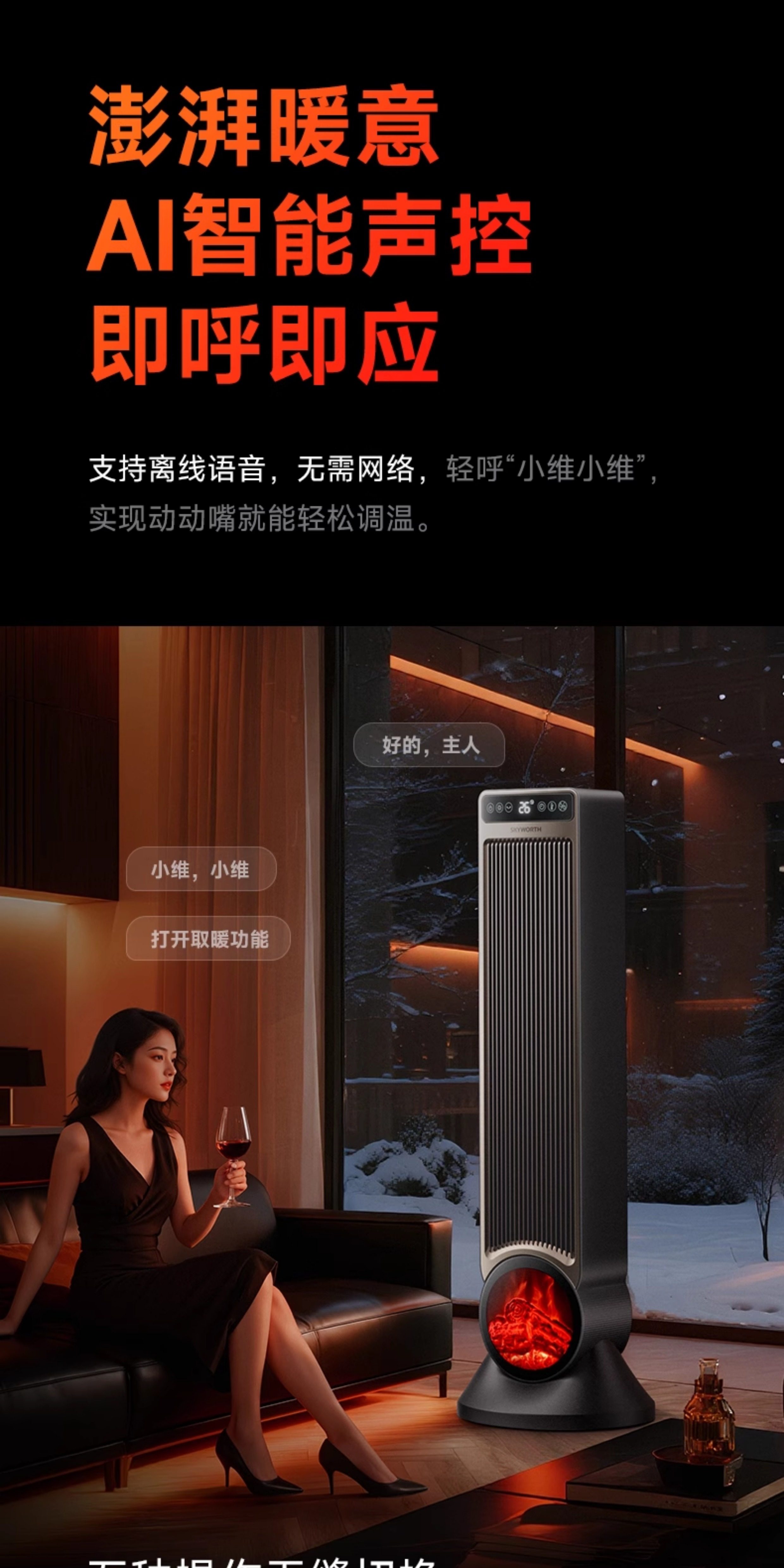 Skyworth Star Flame Smart High-Tower Heater Fan Heater Electric Heater 2025 New Model for Large Area Home Use Energy Saving
