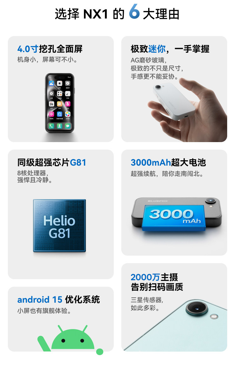 [Brand-Operated] Blue Fox Nx1 Octa-Core Mini Smart Android 15 Full Network 4g Small Screen Mobile Phone Mini