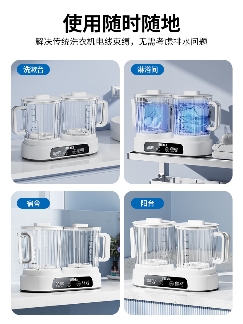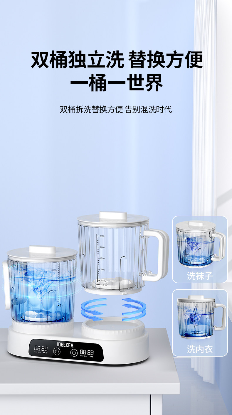 Double-Tub Underwear Washing Machine, Mini Underwear Cleaner, Small Washing Machine, Wireless and Convenient, Special for Washing Socks, Laundry Cup Gadget