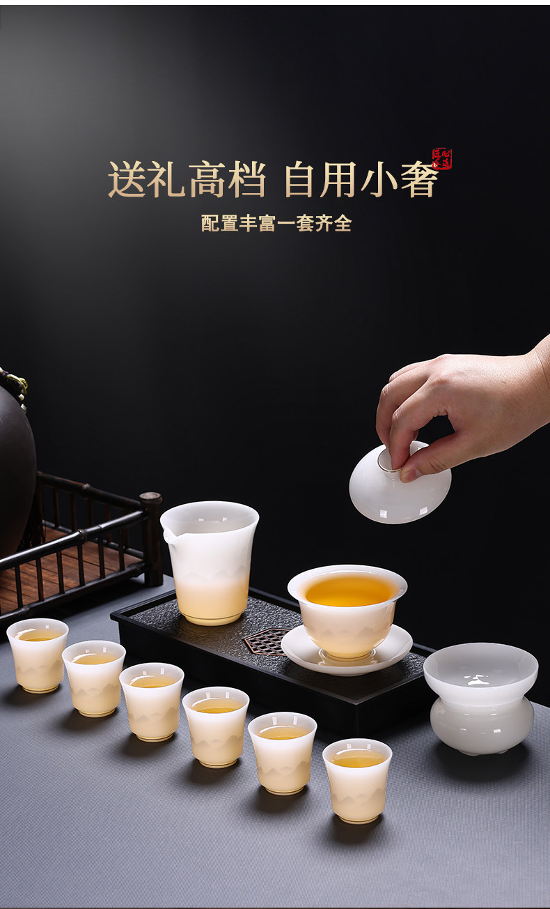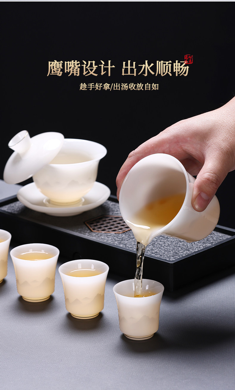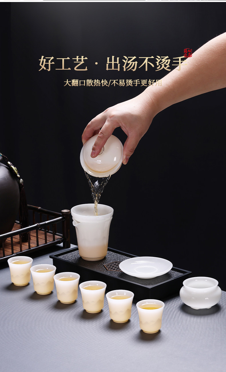Tea Set 2025 New Model Ice Jade Ceramic Special for Brewing Tea Kung Fu Tea Set Home Use Tea Cup Light Luxury High-End