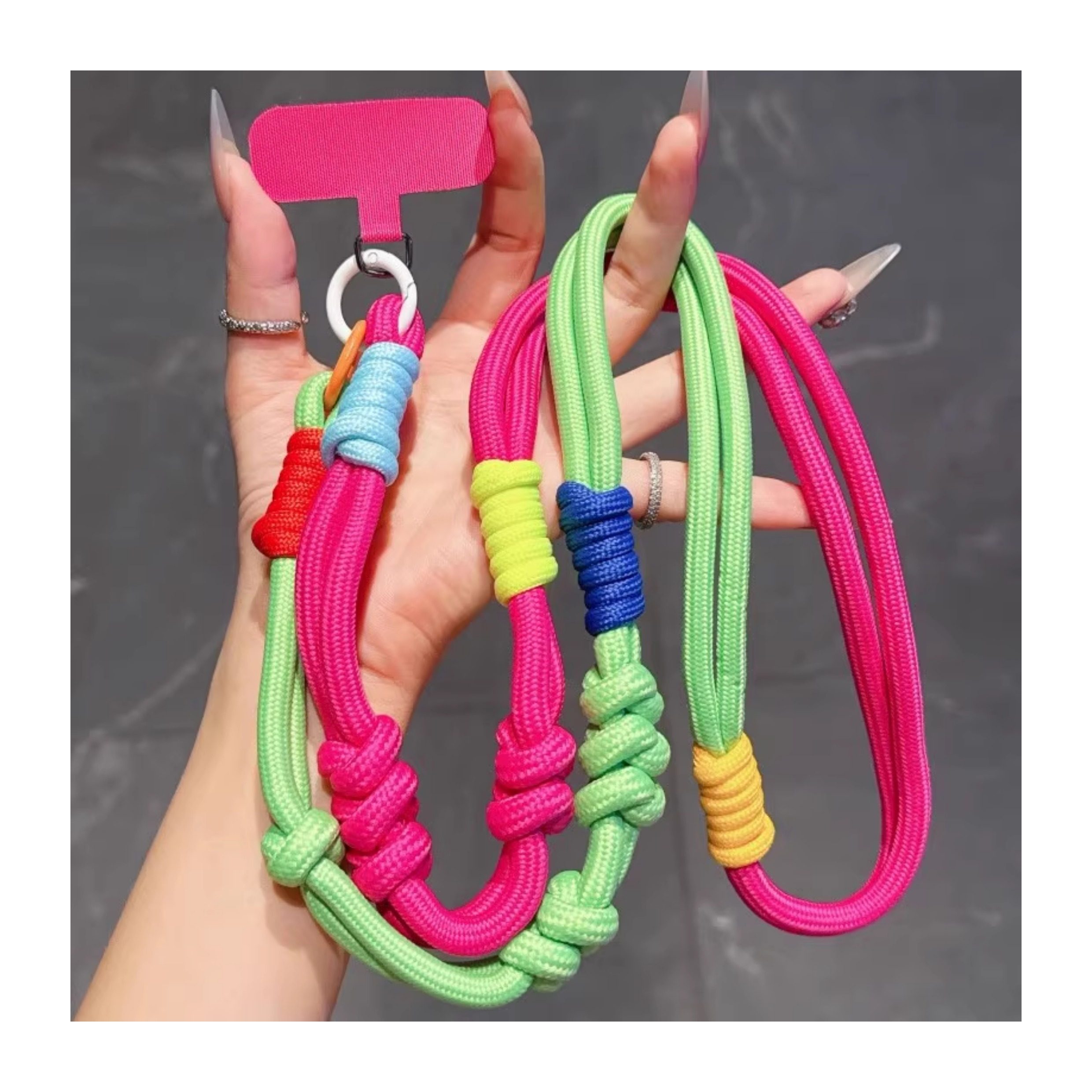 | Pendant Color | Rose Blue Two-Color Multi-Knot Long Rope + Pink Clip,Rose Gray Two-Color Multi-Knot Long Rope + Gray Clip,Orange and Blue Two-Color Multi-Knot Long Rope + Yellow Clip,Black and White Checkered Multi-Knot Long Rope with Black Clip,Blue and Brown Checkered Two-Color Multi-Knot Long Rope + Light Blue Clip,Brown Two-Color Multi-Knot Long Rope + Brown Clip,Red and Yellow Multi-Knot Long Rope + Red Clip,Yellow and Green Two-Color Multi-Knot Long Rope + Dark Night Green Clip,Purple and Blue Two-Color Multi-Knot Long Rope + Purple Clip,Orange and Green Two-Color Multi-Knot Long Rope + Fluorescent Green Clip |