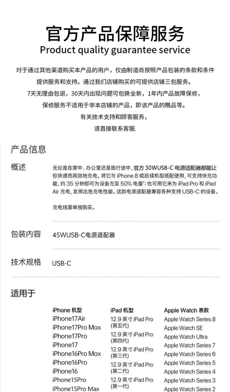 | Color Classification | [Tmall ]Faster Than ![Do Not Purchase This Item. Orders Will Default to the 45W Head],[Official]45W Power Adapter,[17-15 Dedicated - Braided Cable]45W Fast Charging Head +1.0m Pair of Type-C Braided Wires,[17-15 Dedicated - Braided Cable]45W Fast Charging Head +1.5m Pair of Type-C Braided Wires,[17-15 Dedicated - Braided Cable]45W Fast Charging Head +2.0m Pair of Type-C Braided Wires,[Special for 17-15]45W Fast Charging Head +1.0m Dual Type-C Fast Charging Cable,[Special for 17-15]45W Fast Charging Head +1.5m Pair of Type-C Fast Charging Cable,[Special for 17-15]45W Fast Charging Head +2.0m Dual Type-C Fast Charging Cable,[Special for 17-15]1.0m Pair of Type-C Braided Fast Charging Cable[Two Pack],[Special for 17-15]1.5m Pair of Type-C Braided Fast Charging Cable[Two Pack],[Special for 17-15]2.0m Pair of Type-C Braided Fast Charging Cable[Two Pack],[Exclusively for 8-14]45W Fast Charging Head +1.0m Pd Fast Charging Cable,[Exclusively for 8-14]45W Fast Charging Head +1.5m Pd Fast Charging Cable,[Exclusively for 8-14]45W Fast Charging Head +2.0m Pd Fast Charging Cable,[Exclusively for 8-14]1.0m Pd Fast Charging Cable[Two Pack],[Exclusively for 8-14]1.5m Pd Fast Charging Cable[Two Pack],[Exclusively for 8-14]2.0m Pd Fast Charging Cable[Two Pack] |
