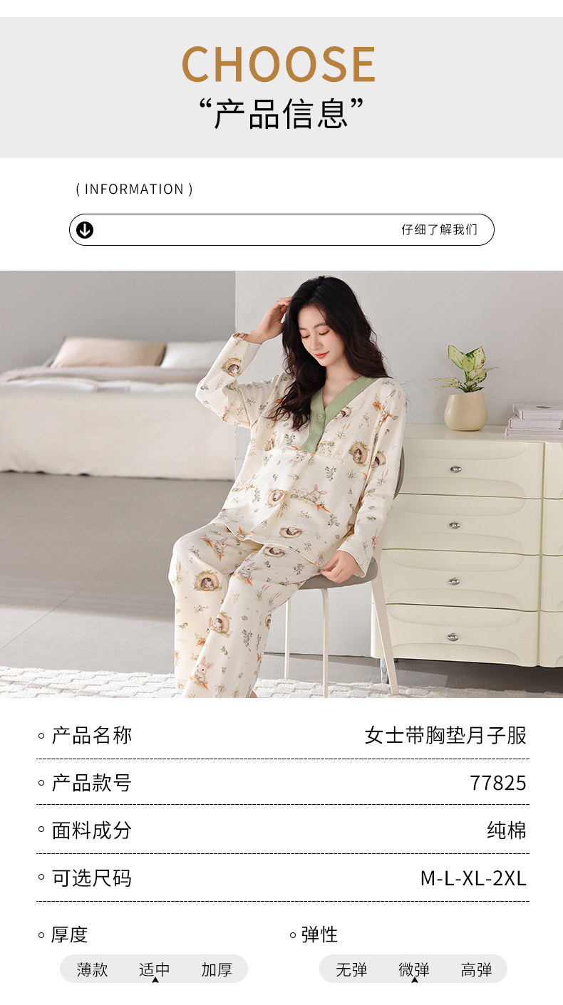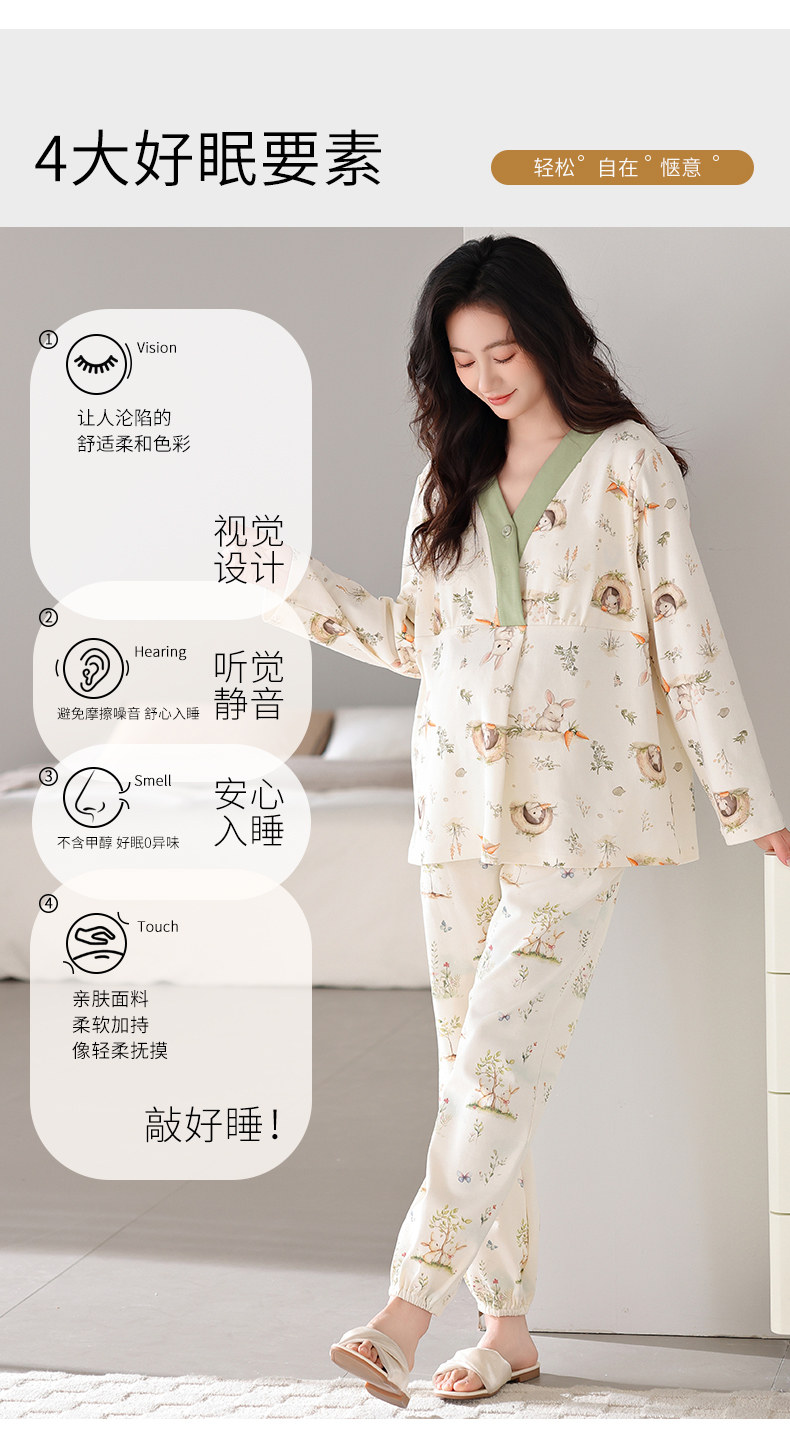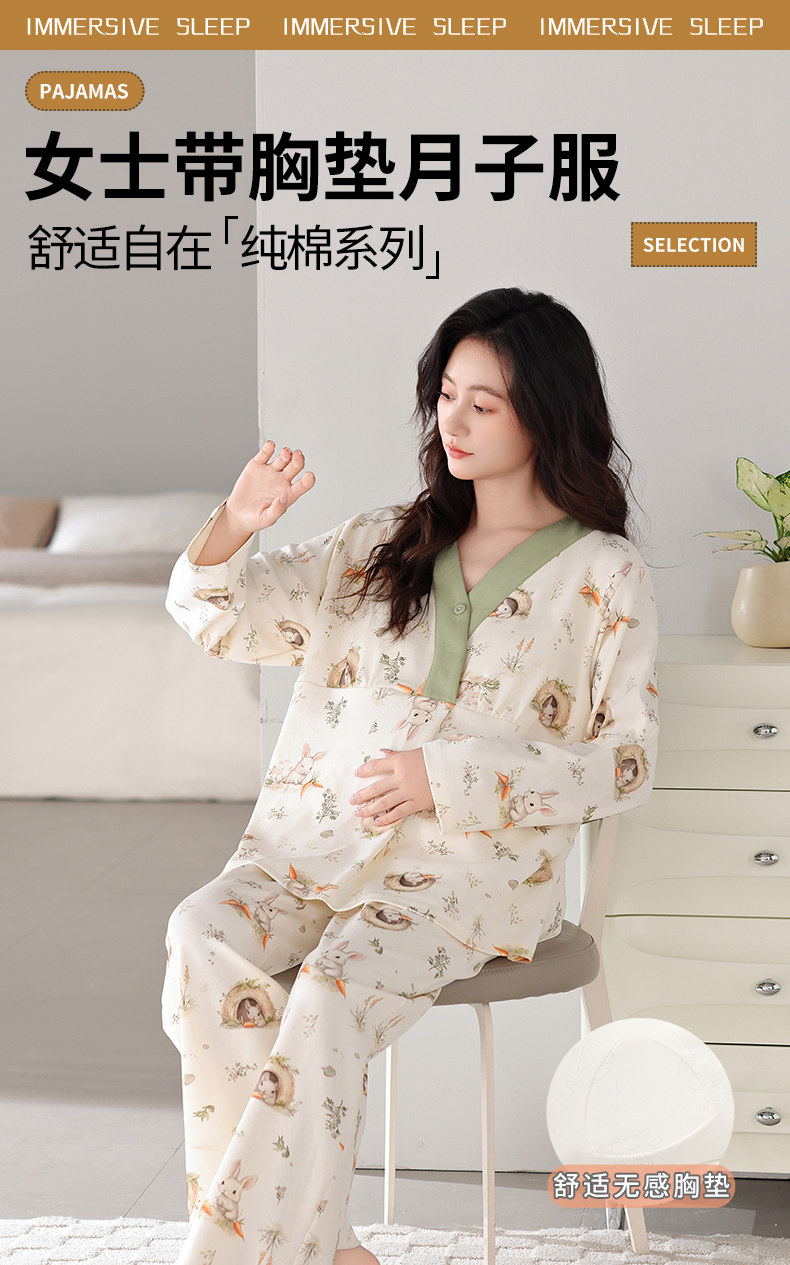 Postpartum Clothing October Pure Cotton Sweat-Absorbent Maternity Pajamas with Breast Pads Postpartum Nursing Thin Home Wear