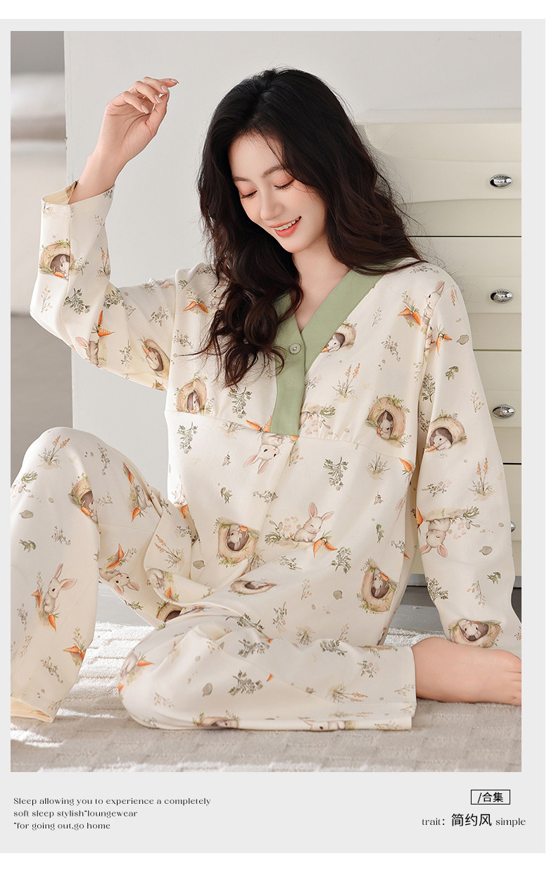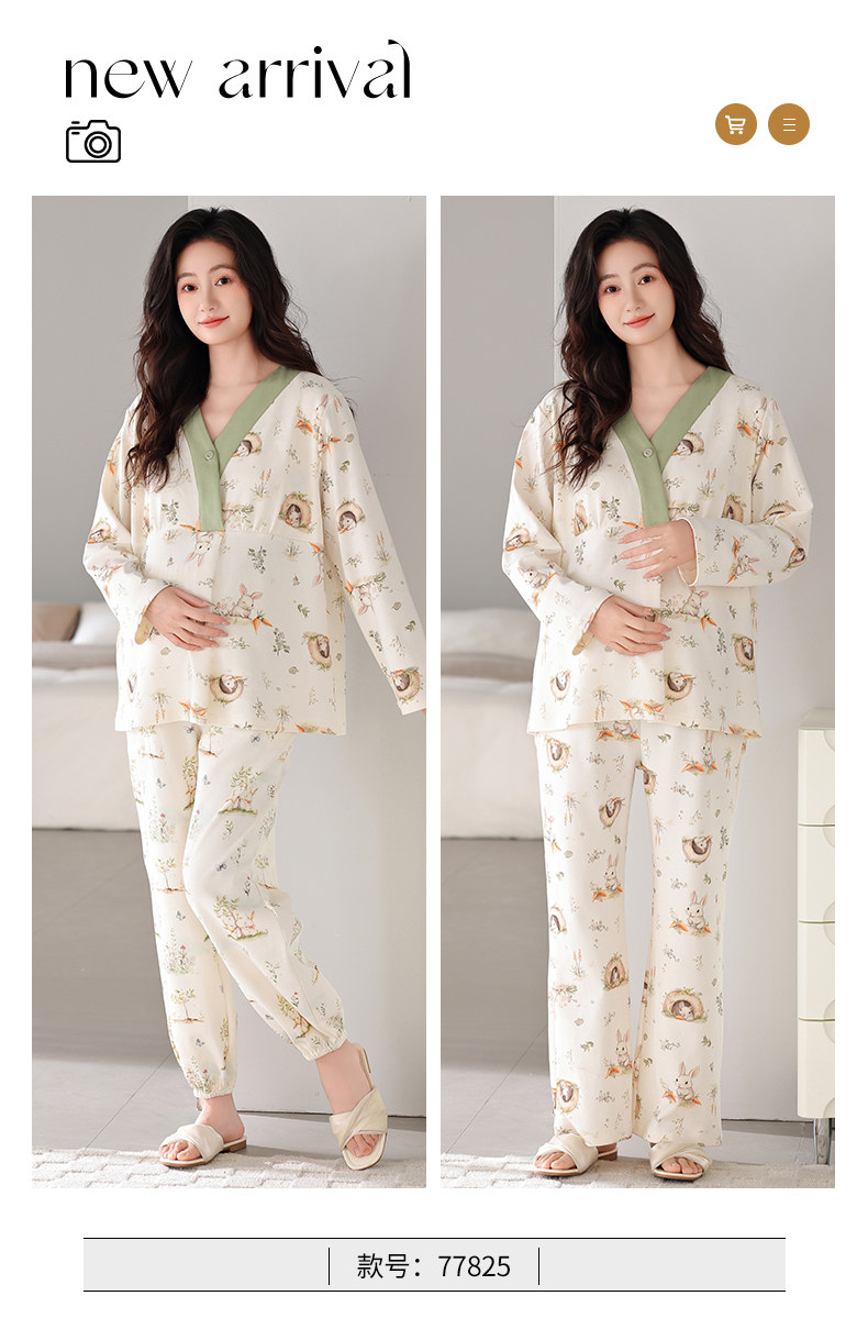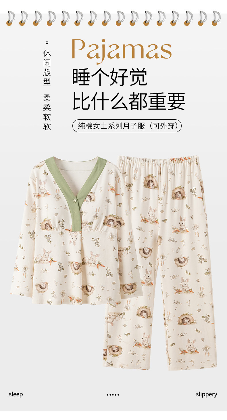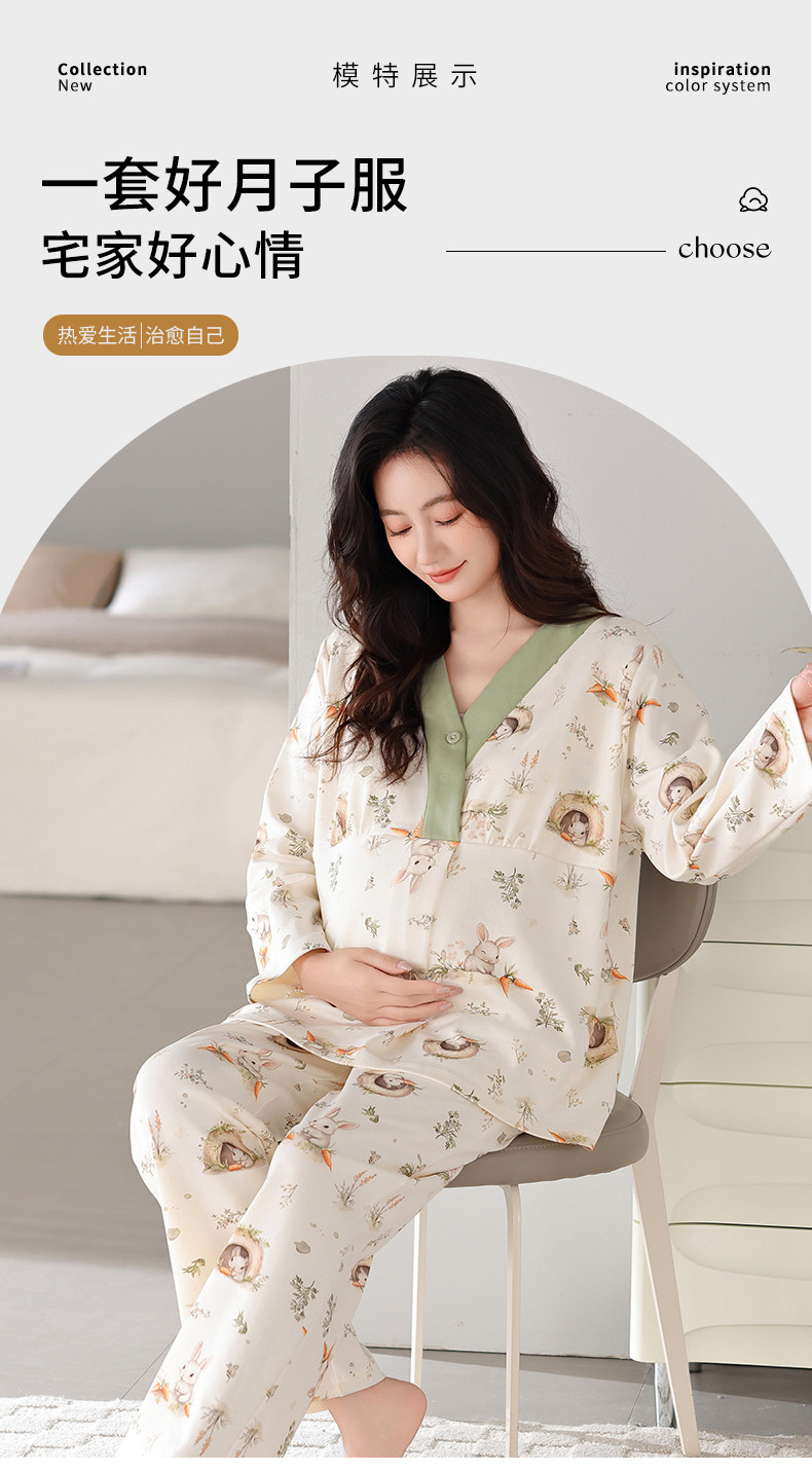 Postpartum Clothing October Pure Cotton Sweat-Absorbent Maternity Pajamas with Breast Pads Postpartum Nursing Thin Home Wear