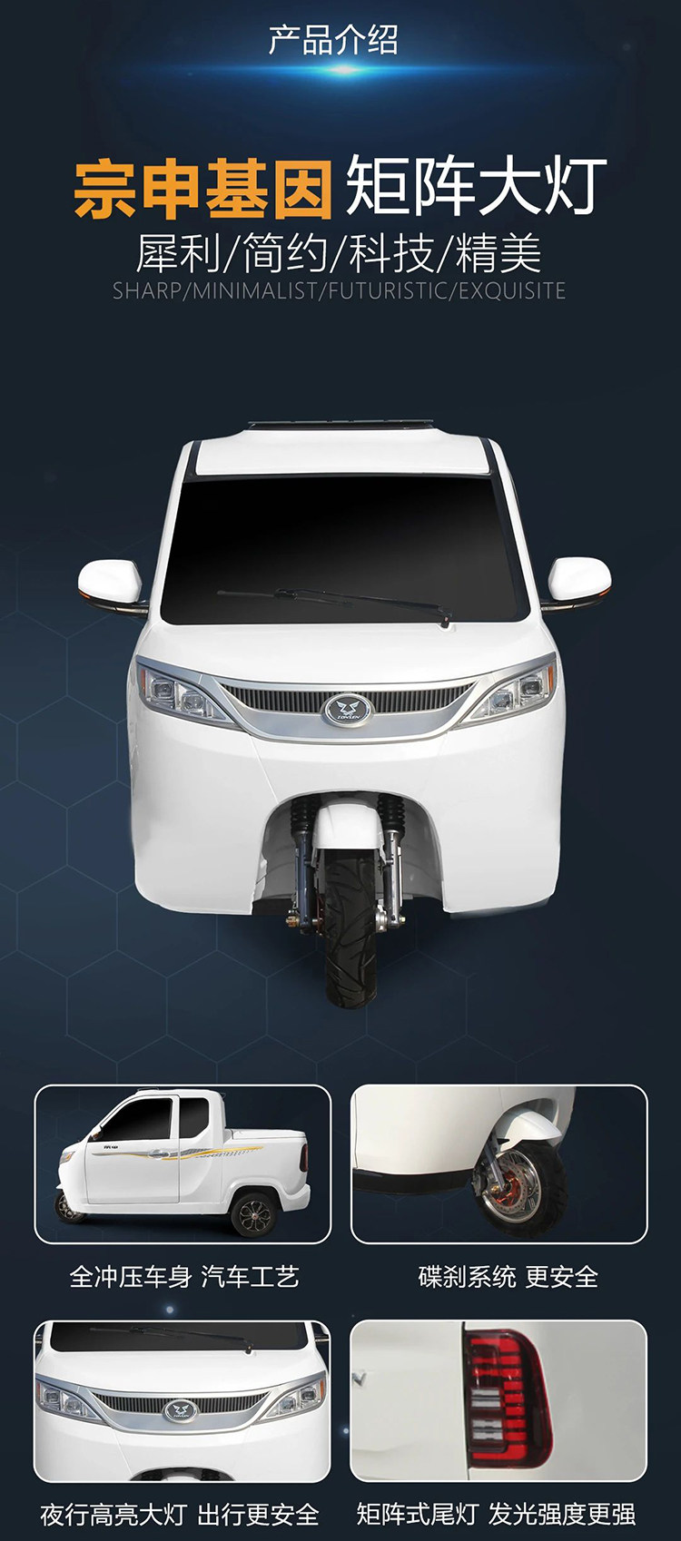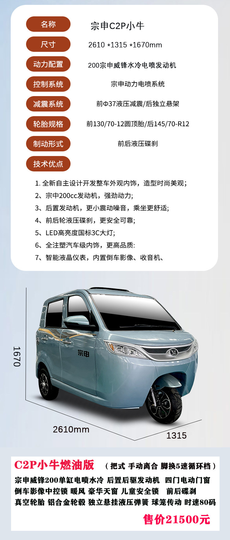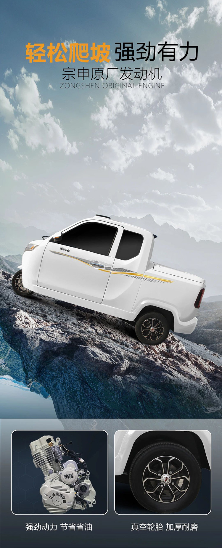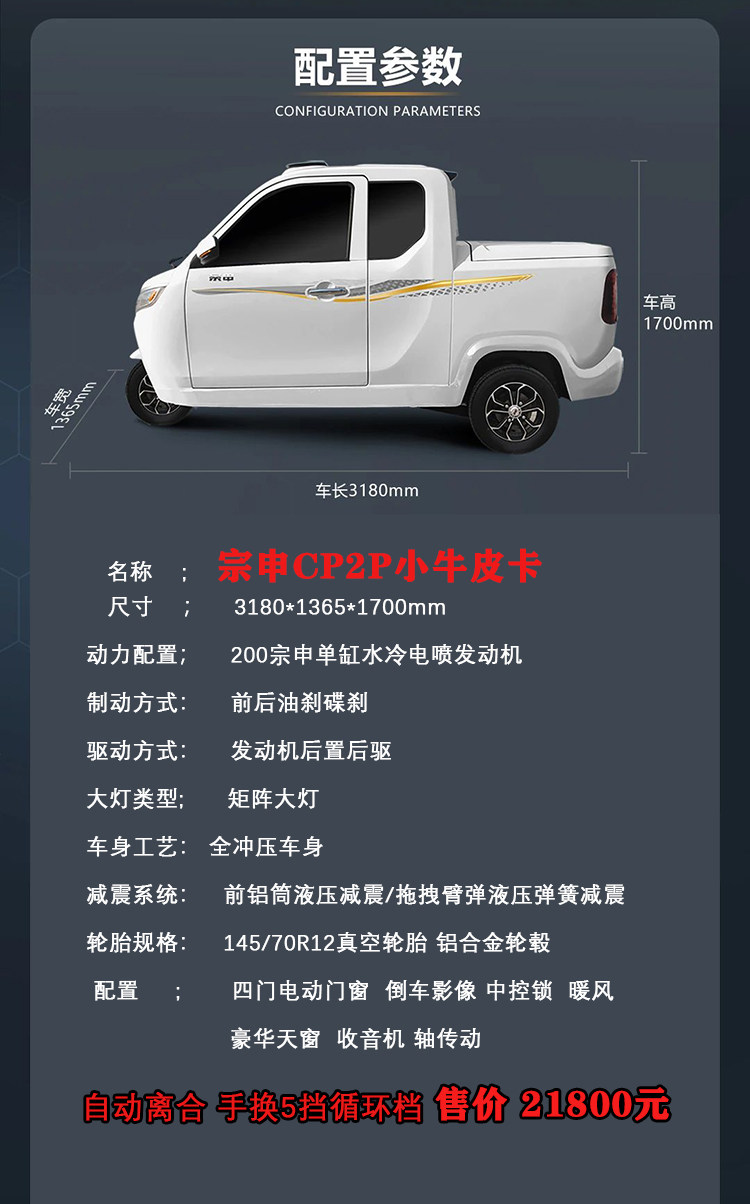 Zongshen Pure Fuel Three-Wheeler, National Standard C2P, Small Pickup Truck, Licensed, Water-Cooled, Electronic Fuel Injection Engine, Fully Enclosed Motorcycle