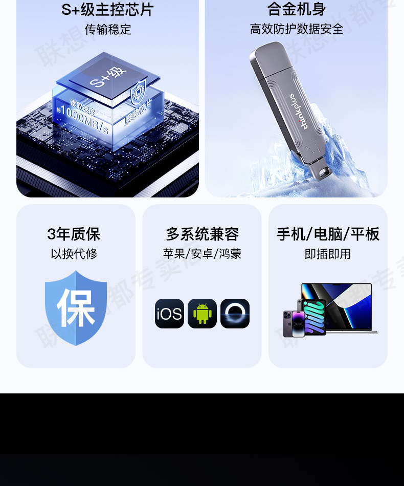 Lenovo High-Speed Solid-State USB Flash Drive Typec Dual-Interface Mobile Phone and Computer Dual-Use Official Large-Capacity 1t USB Flash Drive Genuine 2t