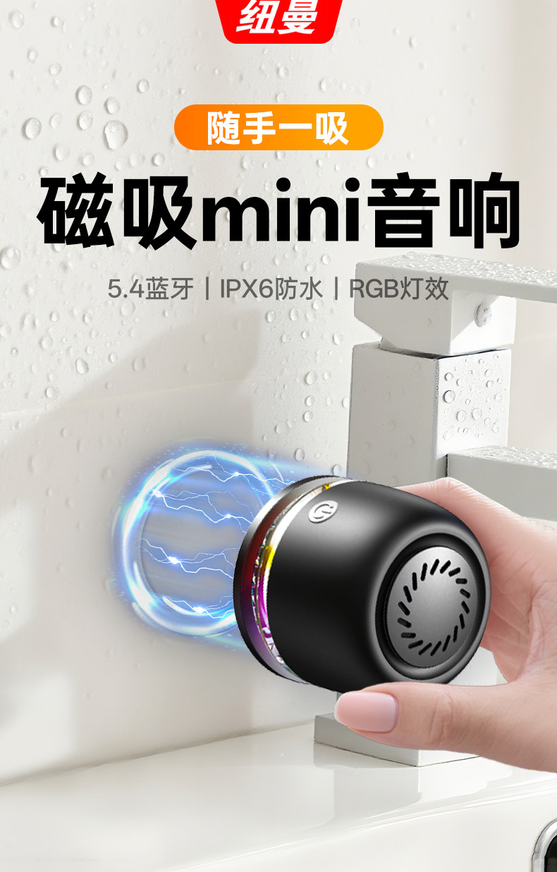 Newman Bluetooth Bathroom Waterproof Speaker Wireless Portable Magnetic Mini Small Speaker Phone Holder Stereo