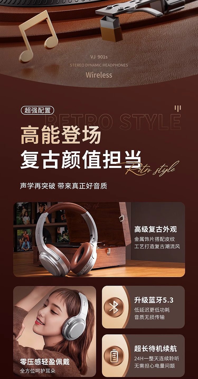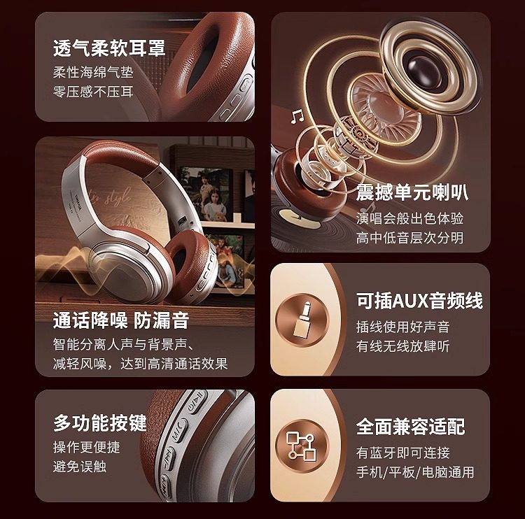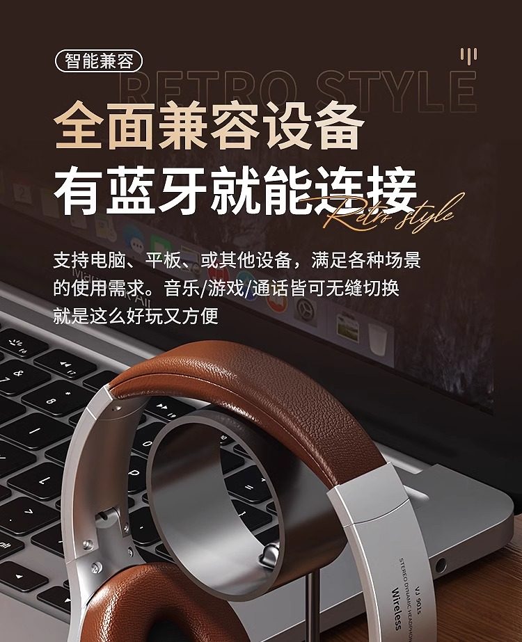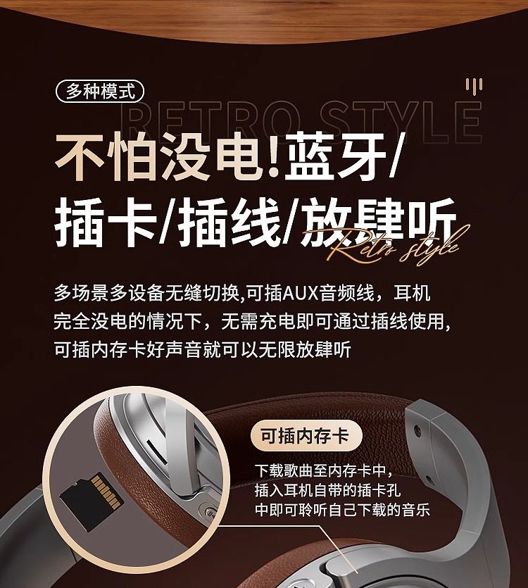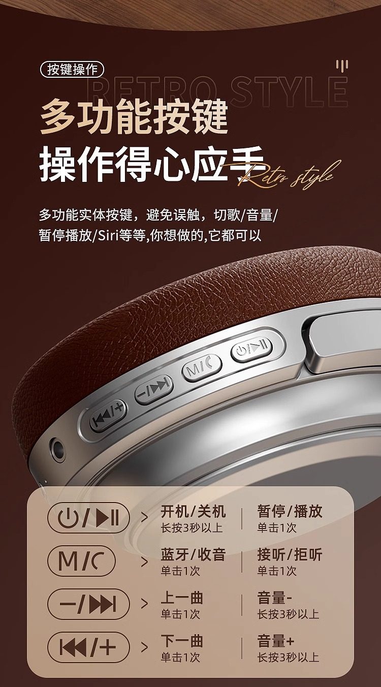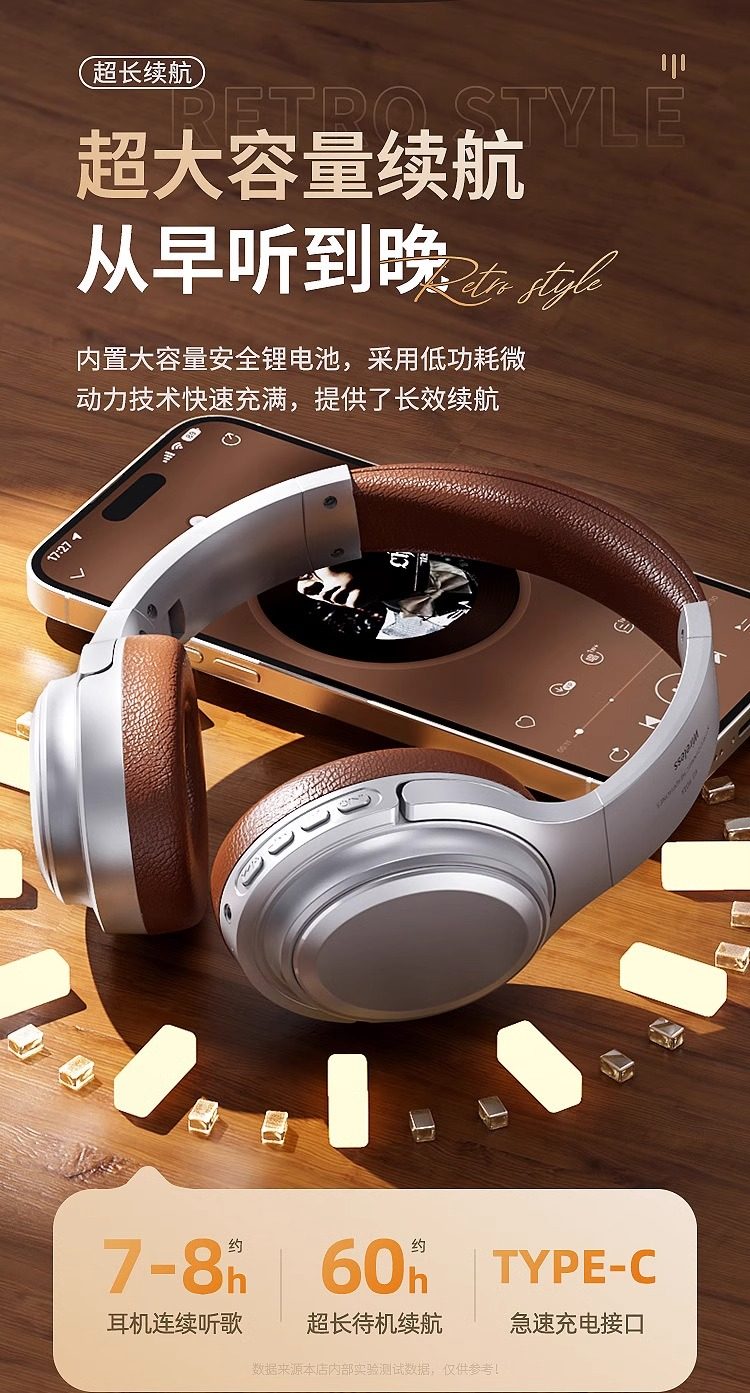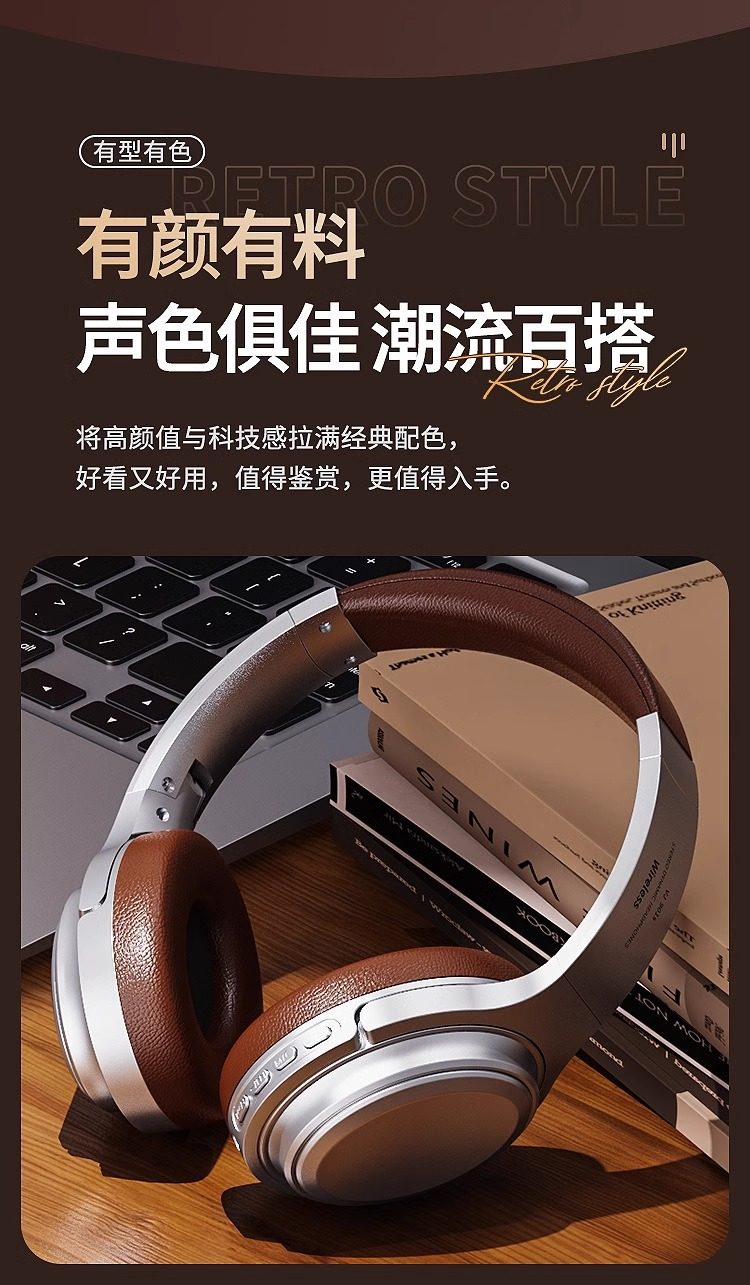 2026 New Model Over-Ear Bluetooth Headphones Wireless Computer Gaming Headset with Microphone, Sound Quality, American Retro Style