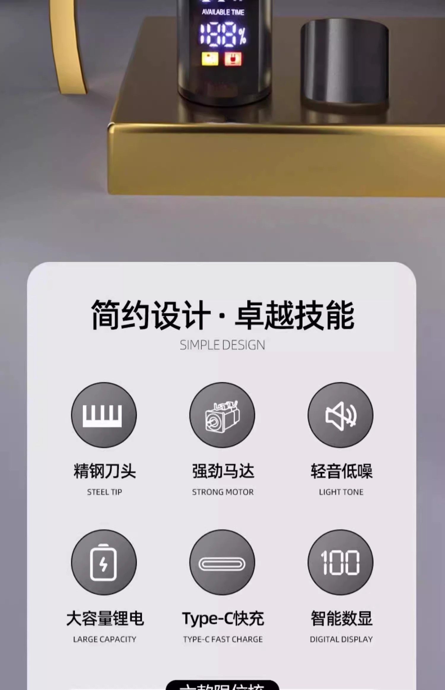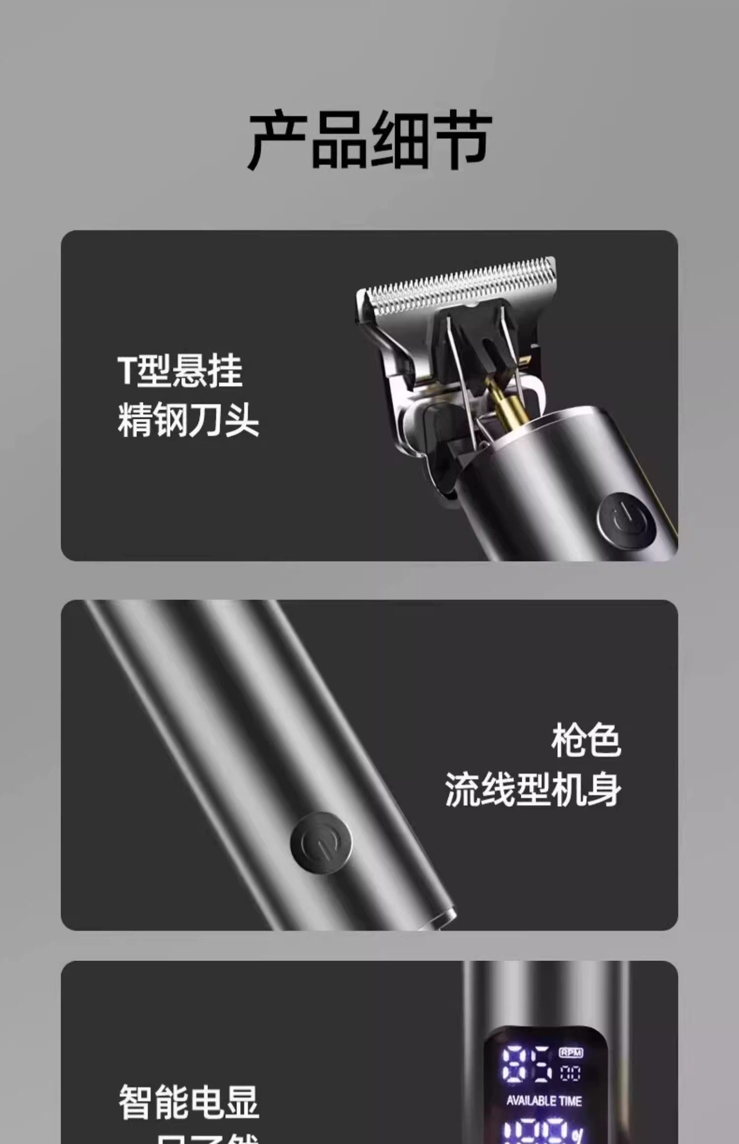 | Color Classification | [German Precision Workmanship] Gun Color/Steel Blade/Large Screen Digital Display [Type-C Fast Charge],[German Precision Workmanship] Glossy Black/Stainless Steel Blade/Large Screen Digital Display [Type-C Fast Charge],[German Precision Workmanship] Fluorescent Green/Steel Blade/Large Screen Digital Display [Type-C Fast Charge],[German Precision Workmanship] Wood Grain Color/Steel Blade/Large Screen Digital Display [Type-C Fast Charge],Gunmetal Professional Barber Kit [Sponge + Cape + Comb + Template + Storage Bag + Clipper Head + Straight Scissors + Thinning Shears],Black Professional Hairdressing Set [Sponge + Cloth + Comb + Model + Storage Bag + Cutter Head + Flat Scissors + Dental Scissors],Fluorescent Green Professional Hairdressing Set [Sponge + Cloth + Comb + Model + Storage Bag + Blade + Flat Scissors + Dental Scissors],Wood Grain Color Professional Hairdressing Set [Sponge + Cloth + Comb + Model + Storage Bag + Blade + Flat Scissors + Dental Scissors] |