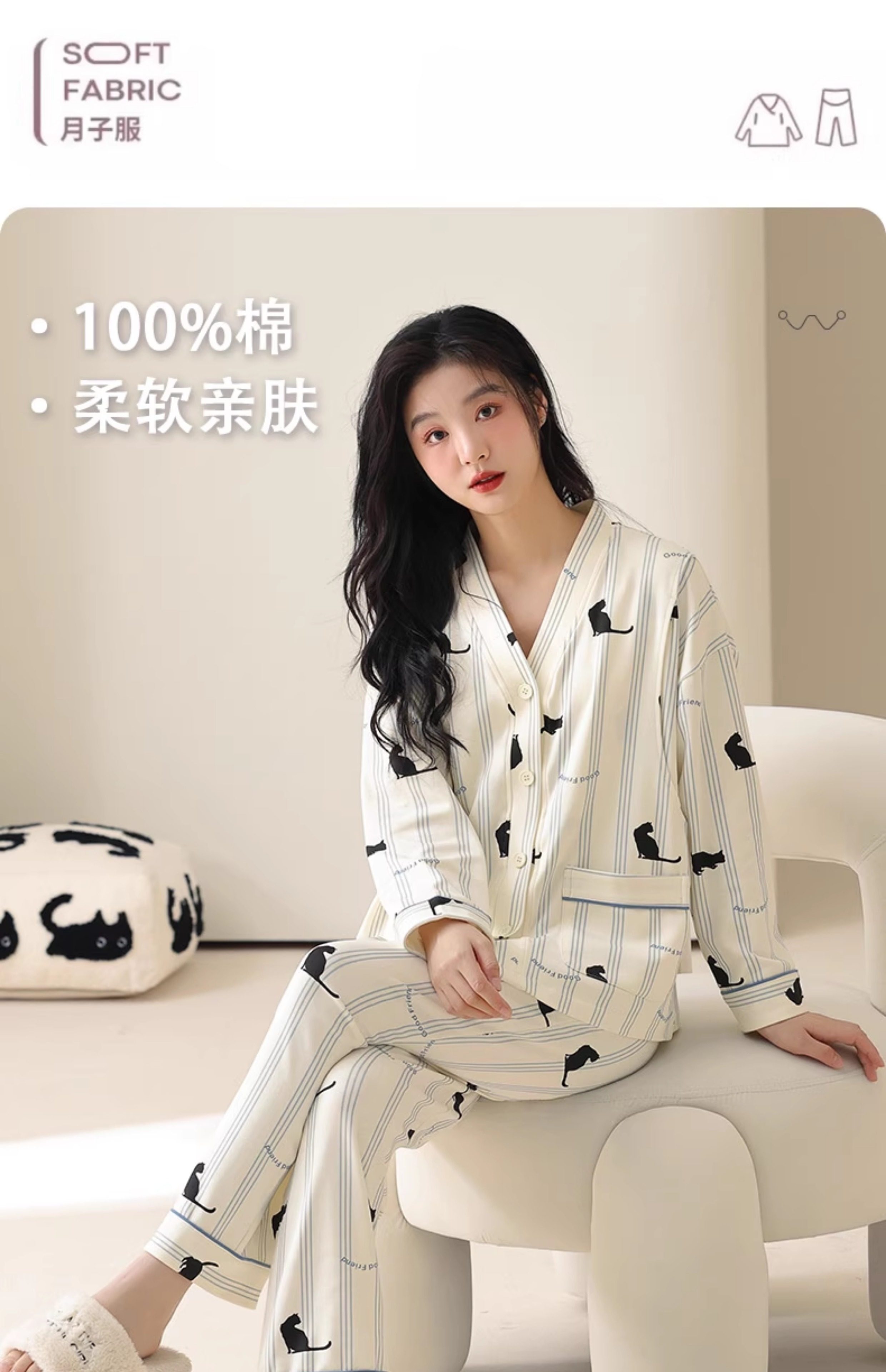 Jingqi Postpartum Clothing, Pure Cotton, October, All-Cotton, Sweat-Absorbent, Postpartum Maternity Pajamas, Breastfeeding, Maternity Home Wear for Women