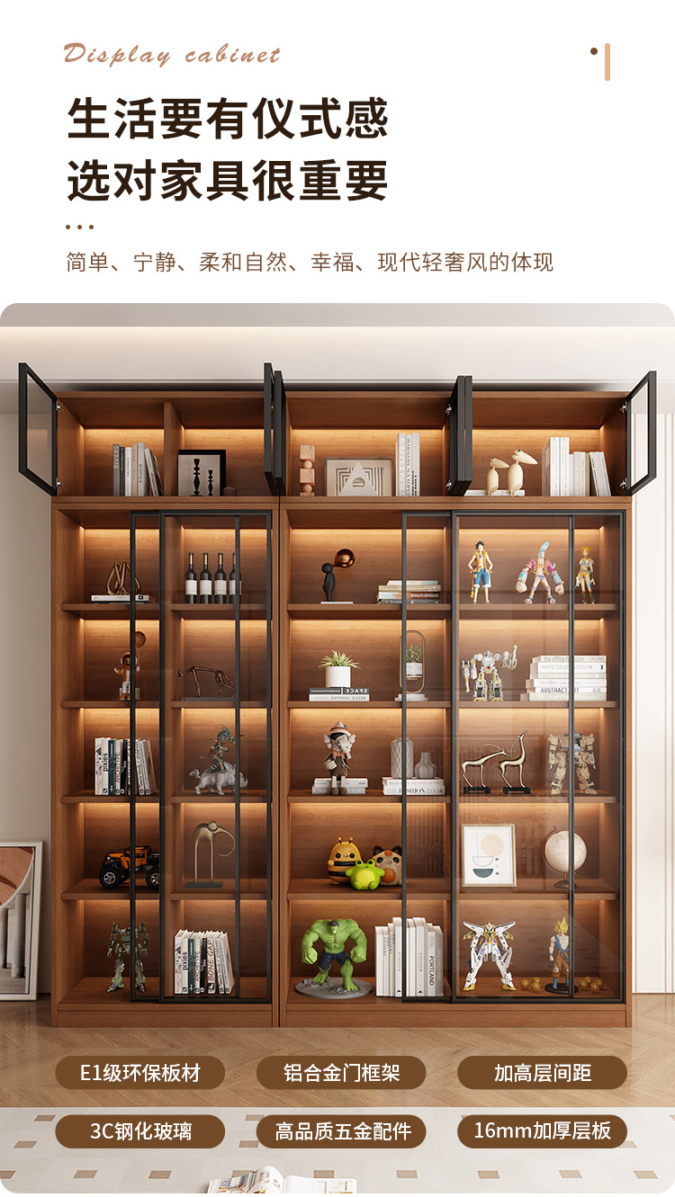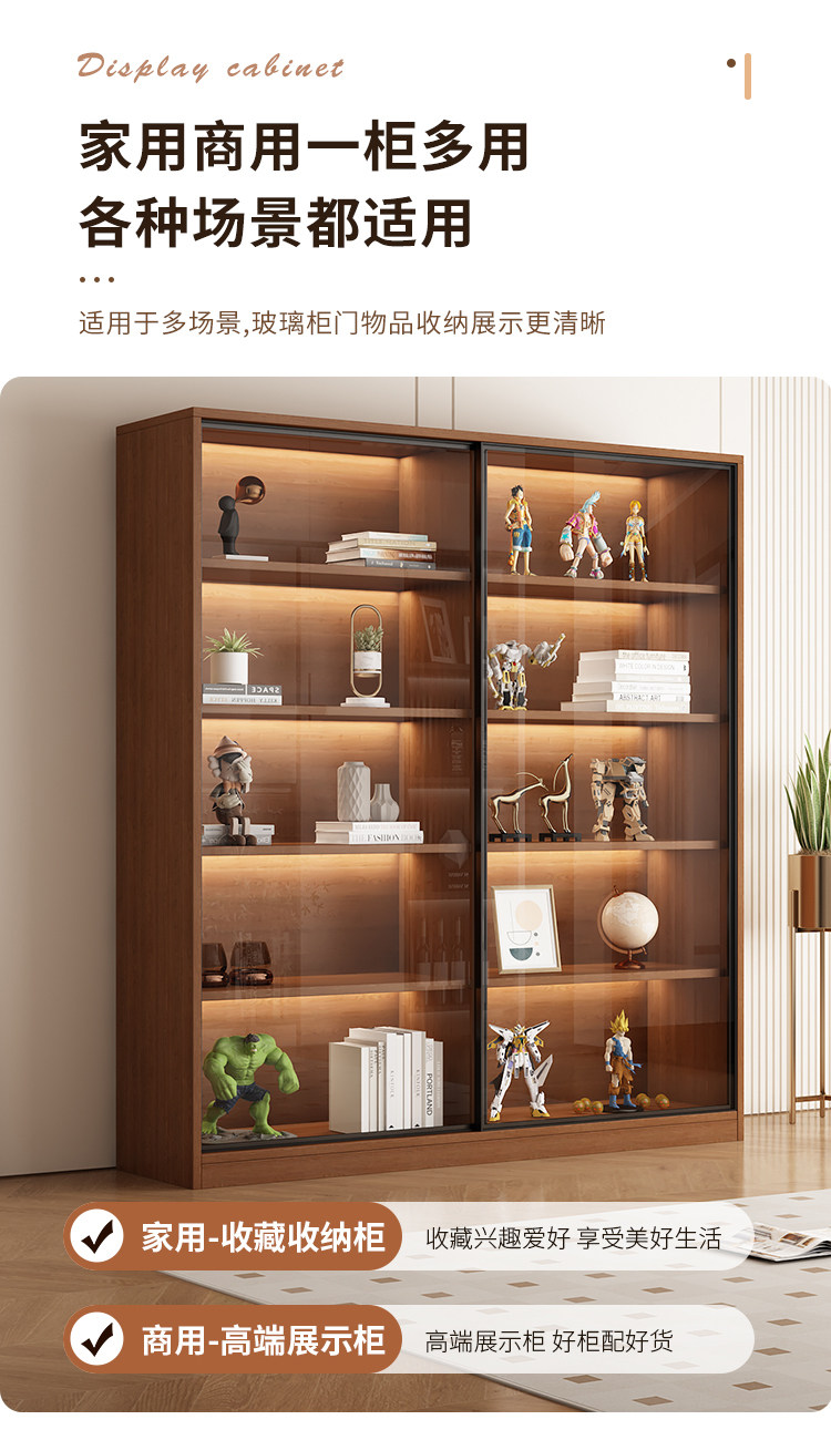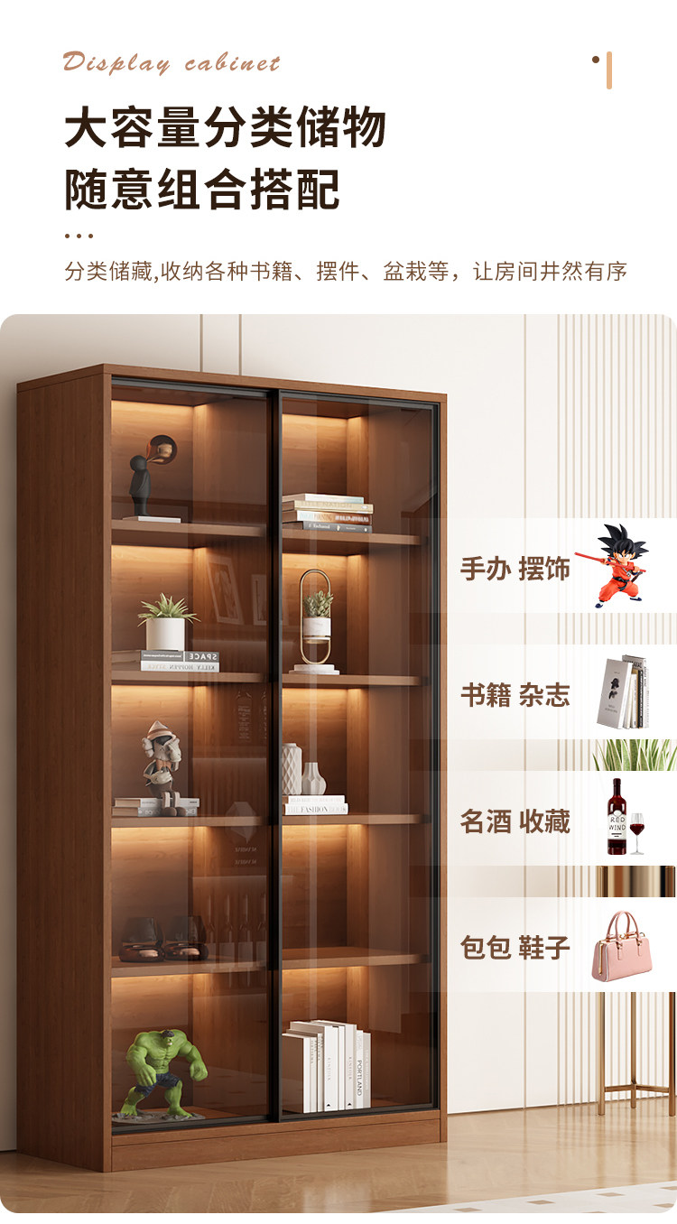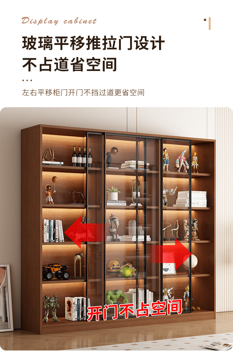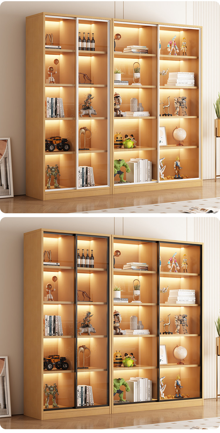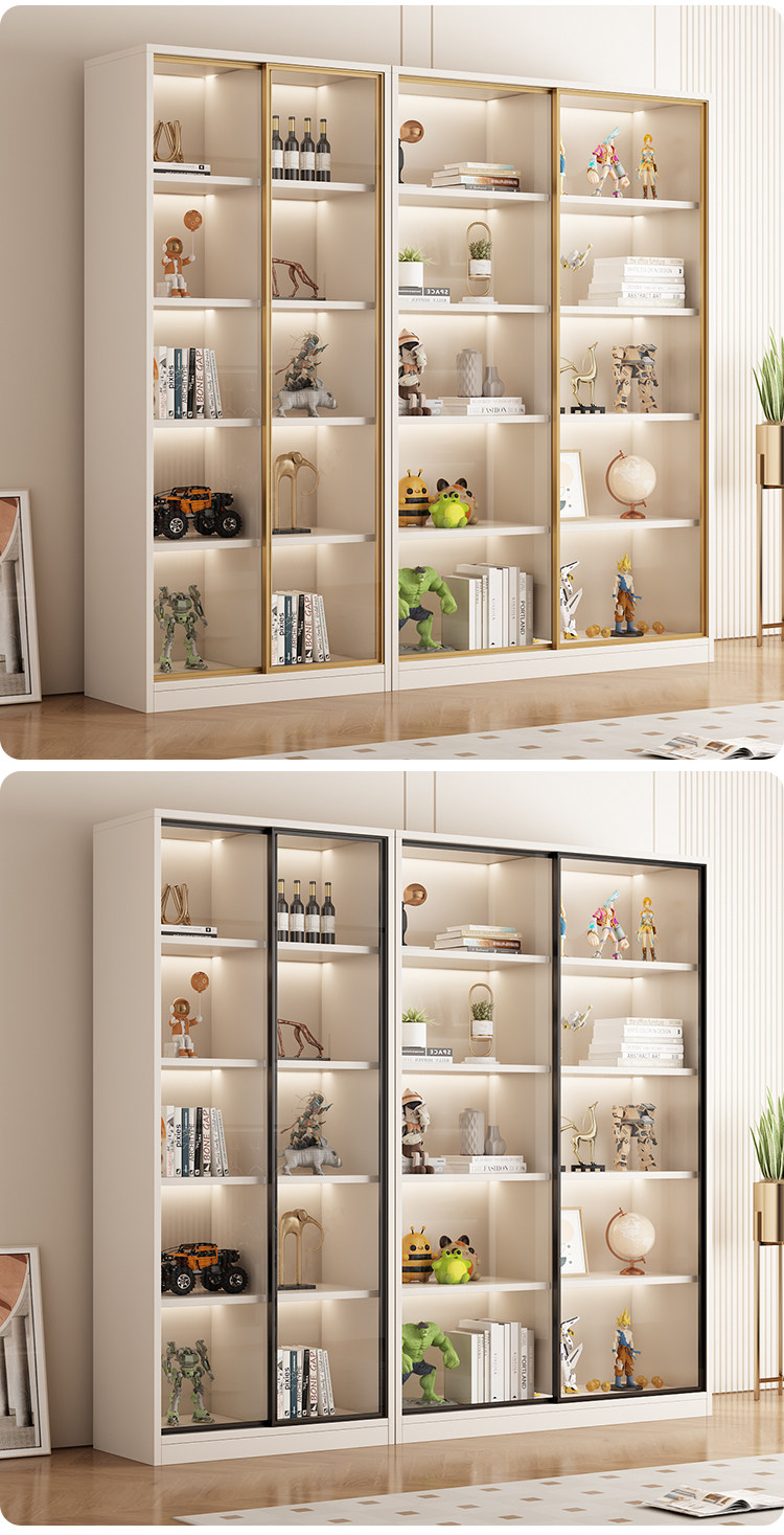 Glass Door Sliding Door Bookcase Display Cabinet for Figurines, Lego Models, Toys, Blind Boxes, Home Living Room Wine Cabinet Bookshelf