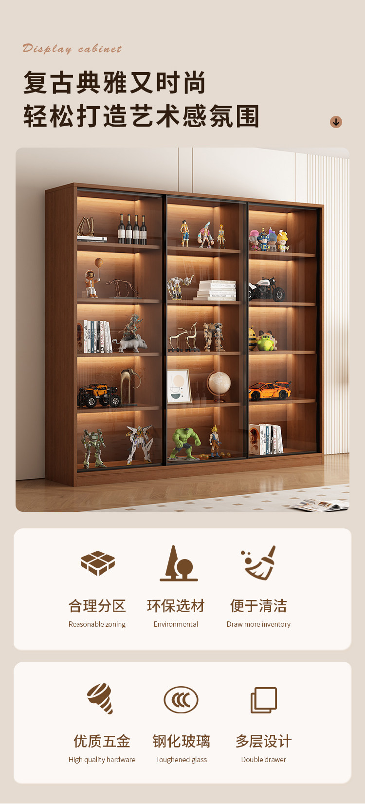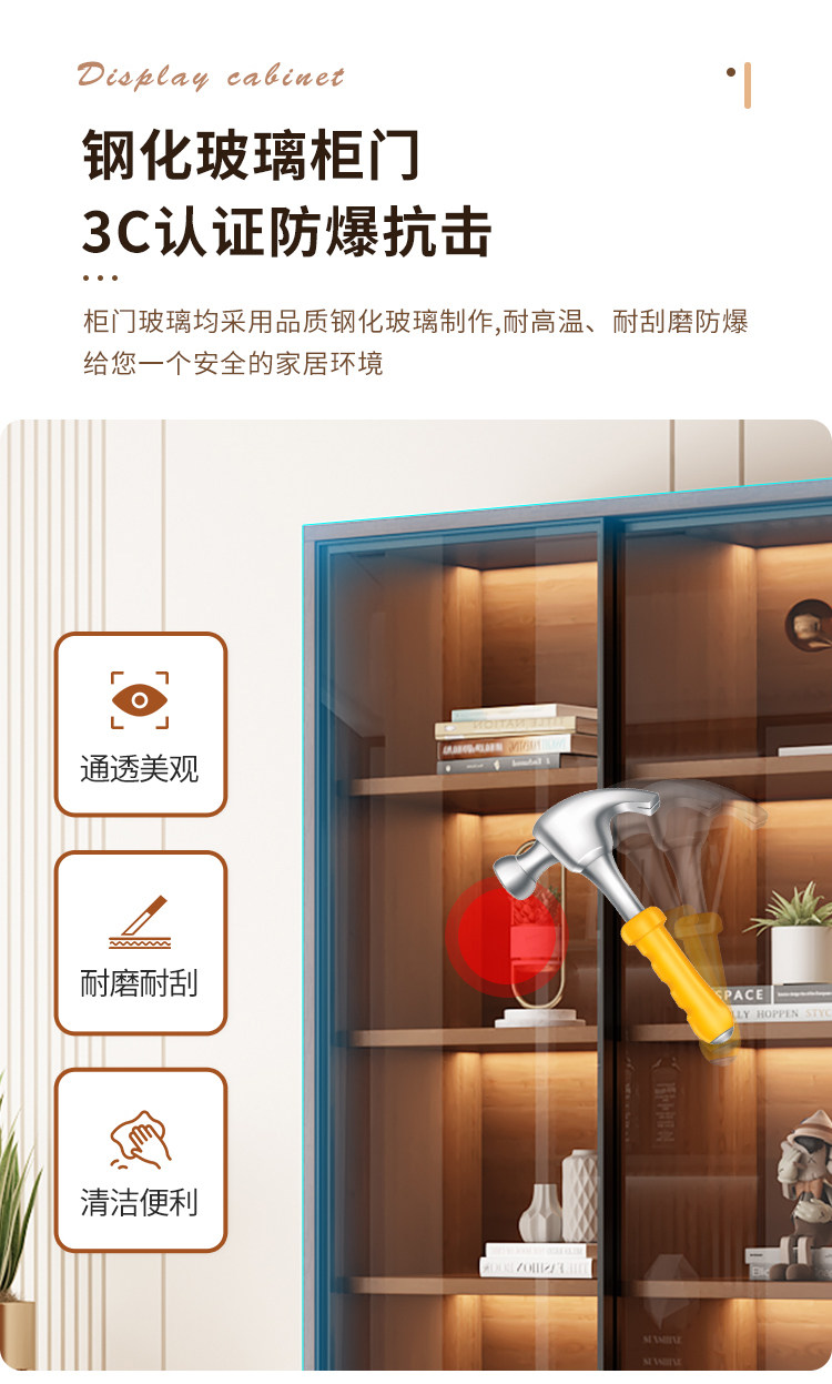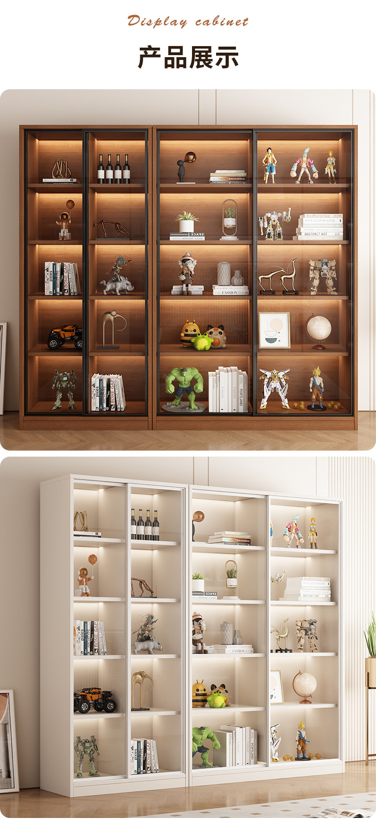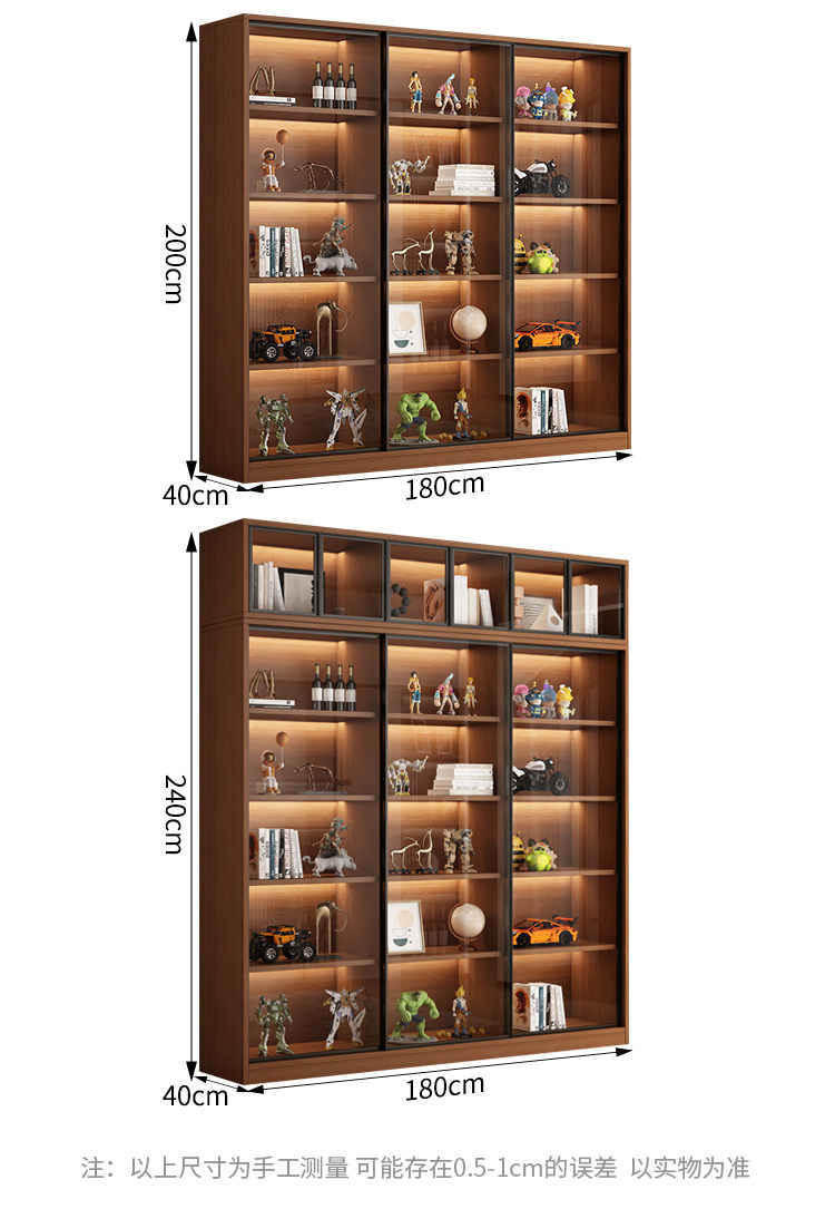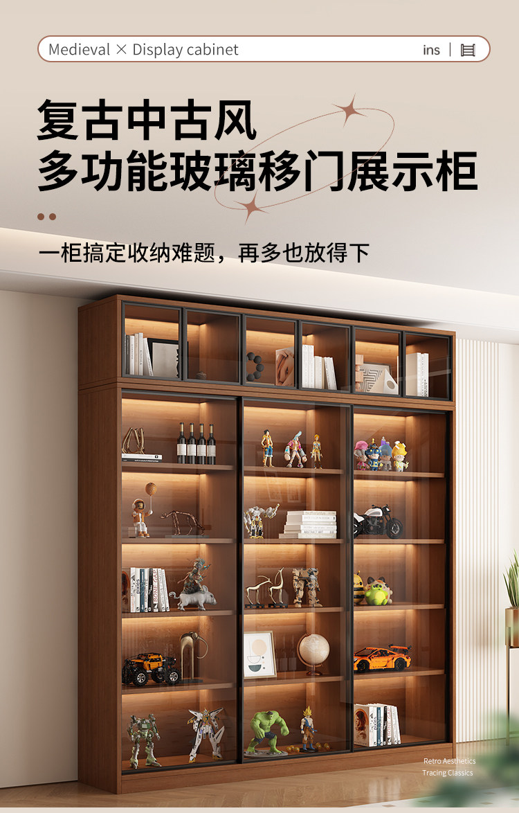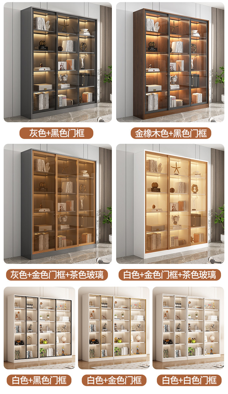 Glass Door Sliding Door Bookcase Display Cabinet for Figurines, Lego Models, Toys, Blind Boxes, Home Living Room Wine Cabinet Bookshelf