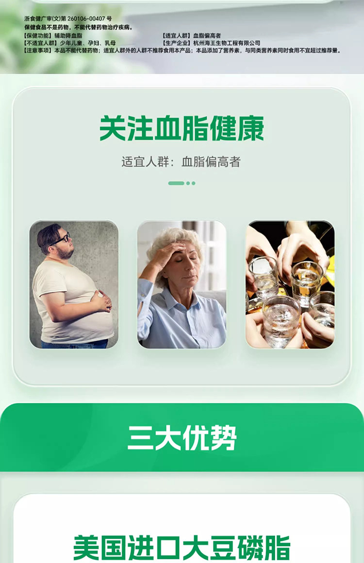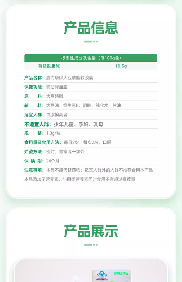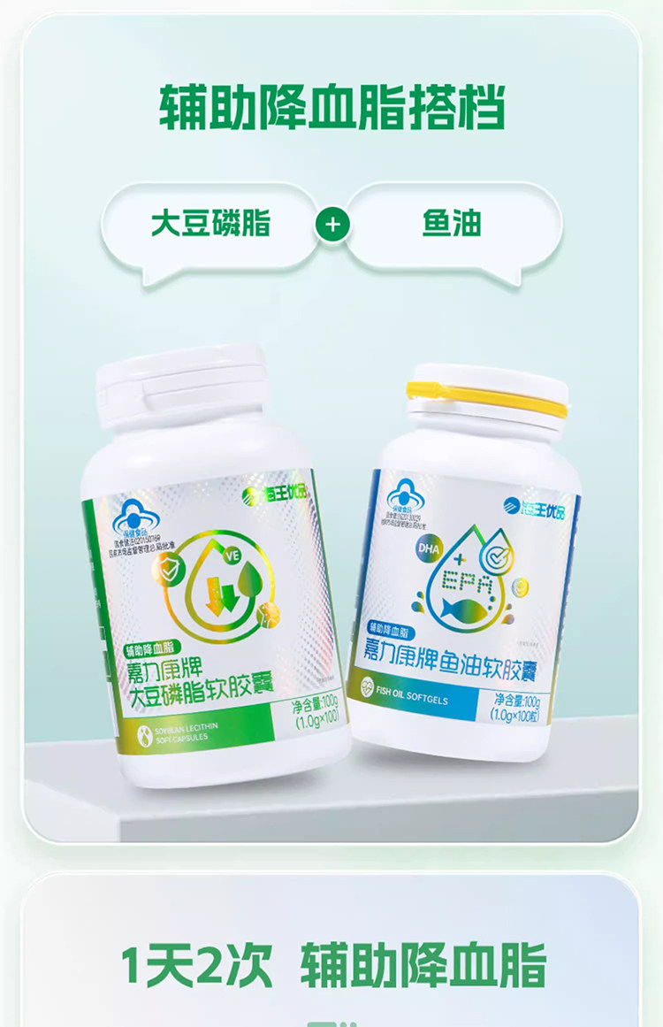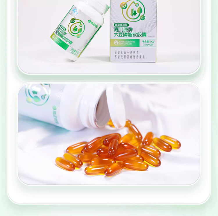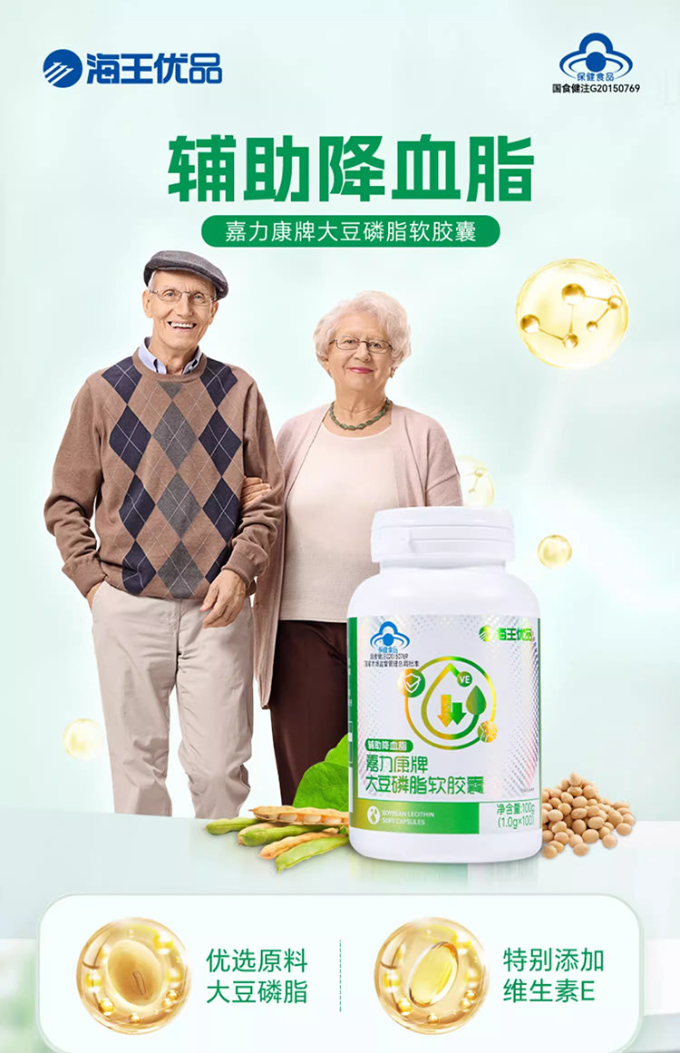 Neptune Premium Brand Jialikang Soy Lecithin Soft Capsules 100 Capsules Assist in Lowering Blood Lipids and Contain Vitamin E for Middle-Aged and Elderly People