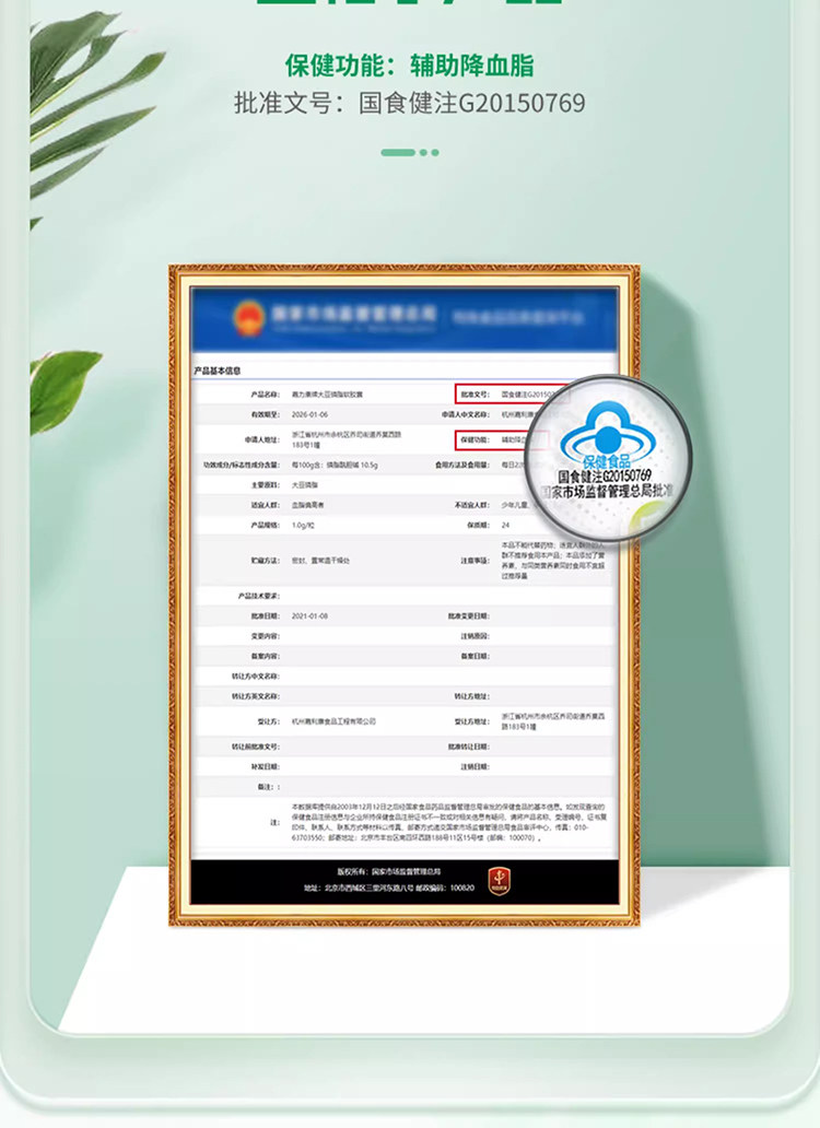 | Health Food Approval Certificate Number | National Food Health Note G20150769 |
