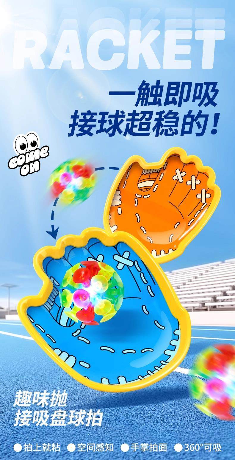 British Children's Suction Cup Toss and Catch Ball, Creative Sticky Palm Ball, Parent-Child Outdoor Camping Toy, Hand-Held Racket Ball