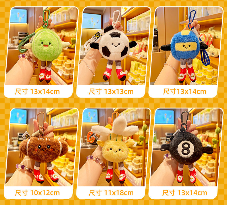 Authentic Original Sports Plush Keychain for Men, Tennis, Baseball, Volleyball, Soccer, Basketball Doll, Backpack Pendant