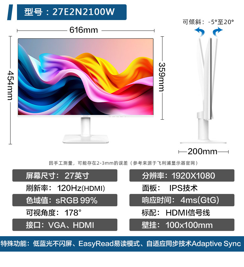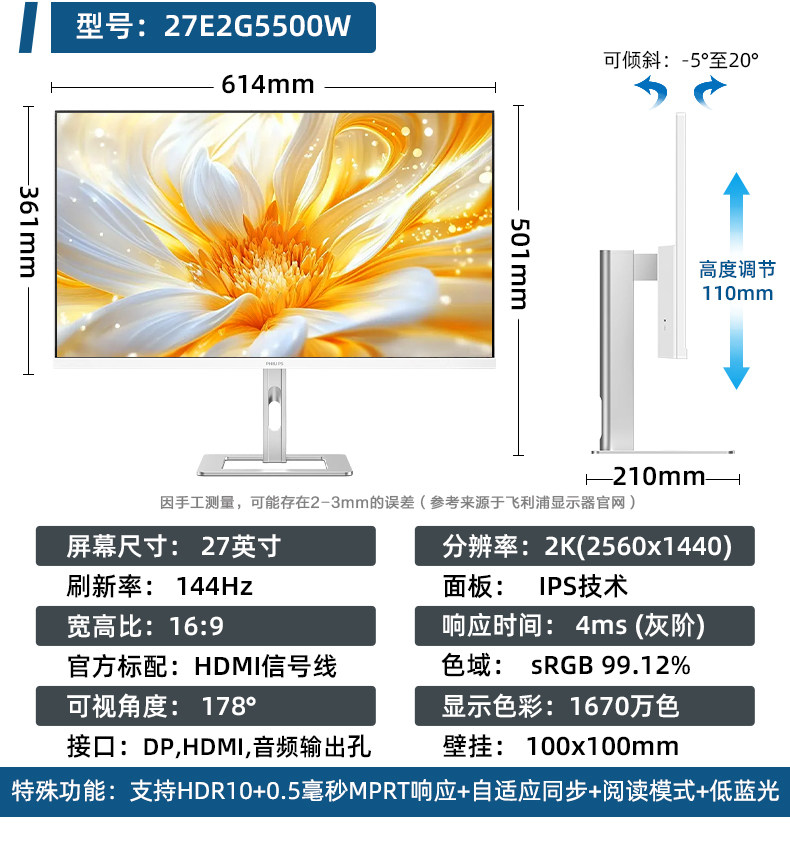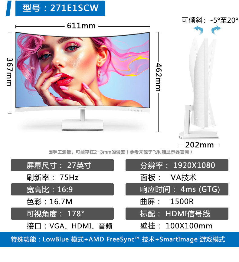 | Color Classification | White/ 23.8inch /120Hz/Low Blue Light Eye Protection/High-Definition Ips Screen,White/ 27inch /120Hz/Low Blue Light Eye Protection/High-Definition Ips Screen,White/2K/144Hz/Hardware Anti-Blue Light Eye Protection Ips Screen/Supports Height Adjustment,White / 27inch / 2K / 200Hz / Zero-Resistance Synchronized Acceleration / Supports Height Adjustment and Rotation,[Curved Screen White] 27-Inch 75Hz Hd Eye Protection Curved Screen,23.8inch /120Hz/Low Blue Light Eye Protection/Hd Ips Screen,23.8inch /144Hz/Low Blue Light Eye Protection Ips Screen,27-Inch 120Hz/Low Blue Light Eye Protection/High-Definition Ips Screen,27inch /2K Hd/75Hz/Low Blue Light Eye Protection/Ips Screen/Hdr10,27inch /4K Ultra-Clear/Low Blue Light Eye Protection/Ips Screen/1.07 Billion Colors |