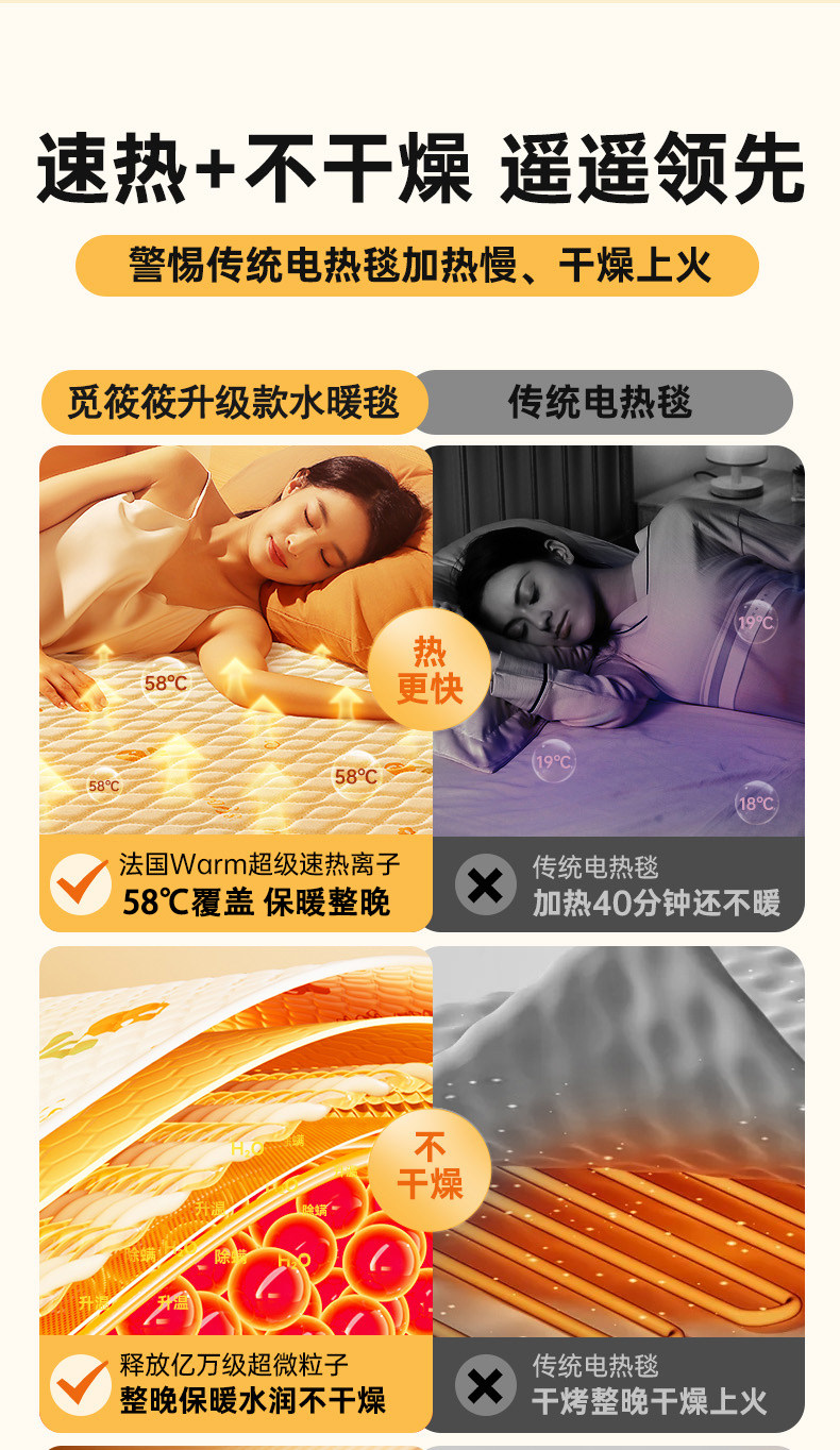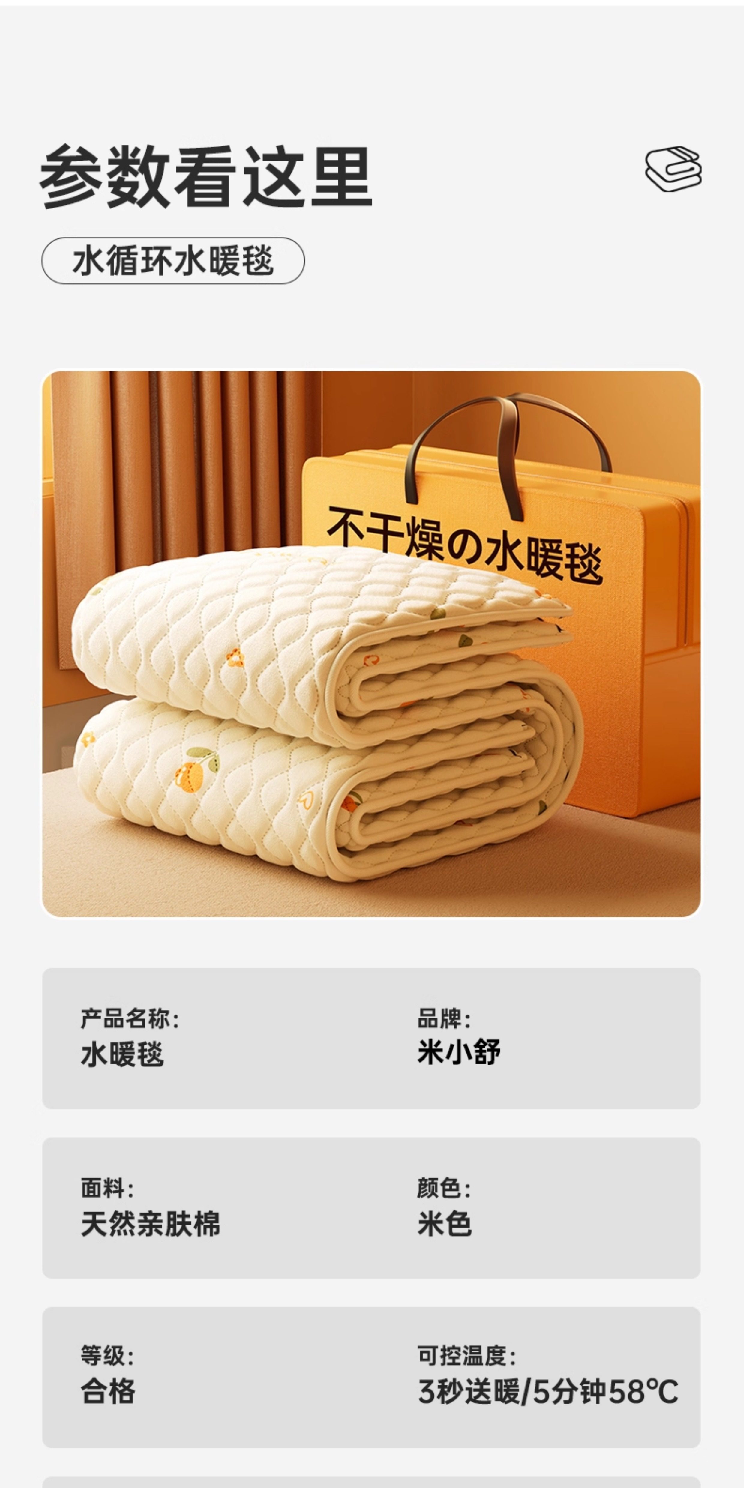 | Color Classification | 2025 New Upgrade[Zhenxi Natural Cotton Is Skin-Friendly and Antibacterial, Maternal and Infant Grade Fabric, Antibacterial and Mite Repellent],[]15% Off✅Limited to 20 People Per Day✅While Supplies Last!!,[Outperforms Old-Style Electric Blankets]Beware of Graphene Heating Scams: New Water-Heated Blankets Won'T Overheat – Featuring Smart Water Circulation Temperature Control.,Skin-Friendly[0.7*1.5M]Water Circulation Does Not Cause Fire✅Safety Timing✅Remove Mites and Bacteria✅Maternal and Infant Grade Fabric,Skin-Friendly[0.9*1.8M]Water Circulation Does Not Cause Fire✅Safety Timing✅Remove Mites and Bacteria✅Maternal and Infant Grade Fabric,Skin-Friendly[1.2*1.8M]Water Circulation Does Not Cause Fire✅Safety Timing✅Remove Mites and Bacteria✅Maternal and Infant Grade Fabric,Skin-Friendly[1.5*1.8M]Water Circulation Does Not Cause Fire✅Safety Timing✅Remove Mites and Bacteria✅Maternal and Infant Grade Fabric,Skin-Friendly[2.0*1.8M]Water Circulation Does Not Cause Fire✅Safety Timing✅Remove Mites and Bacteria✅Maternal and Infant Grade Fabric,Skin-Friendly[1.5*1.8m Dual Control Model]Water Circulation Does Not Cause Fire✅Safety Timing✅Remove Mites and Bacteria✅Maternal and Infant Grade Fabric,Skin-Friendly[1.8*2.0m Dual Control Model]Water Circulation Does Not Cause Fire✅Safety Timing✅Remove Mites and Bacteria✅Maternal and Infant Grade Fabric,..,...,.... |