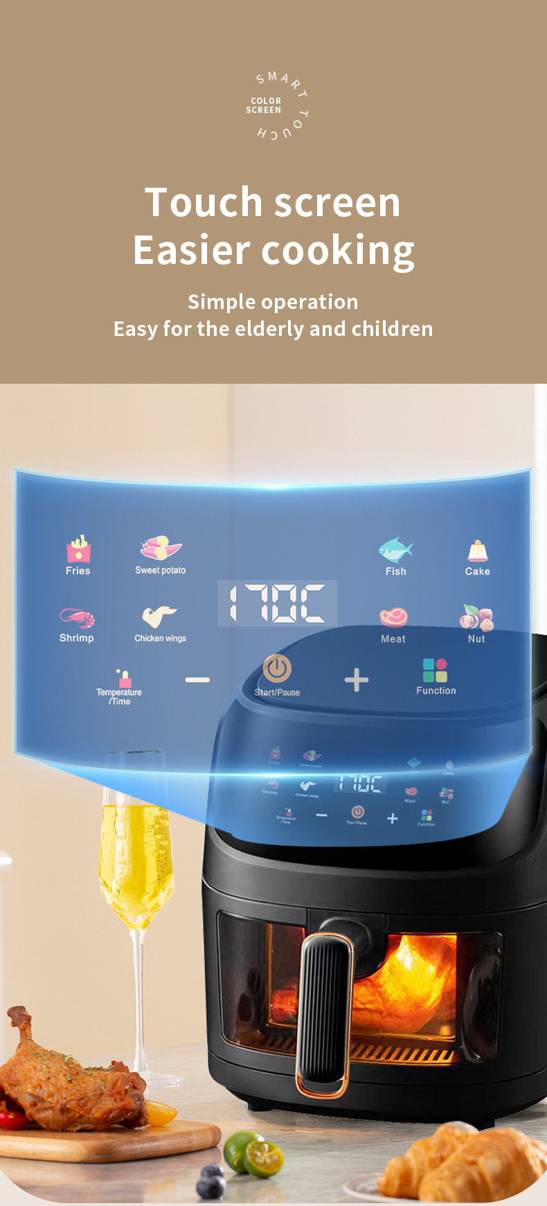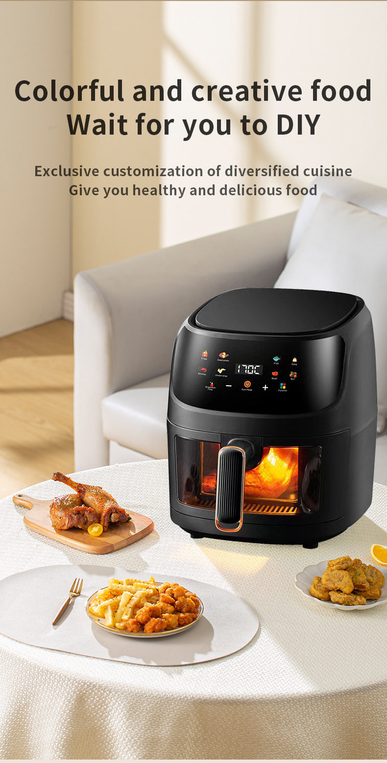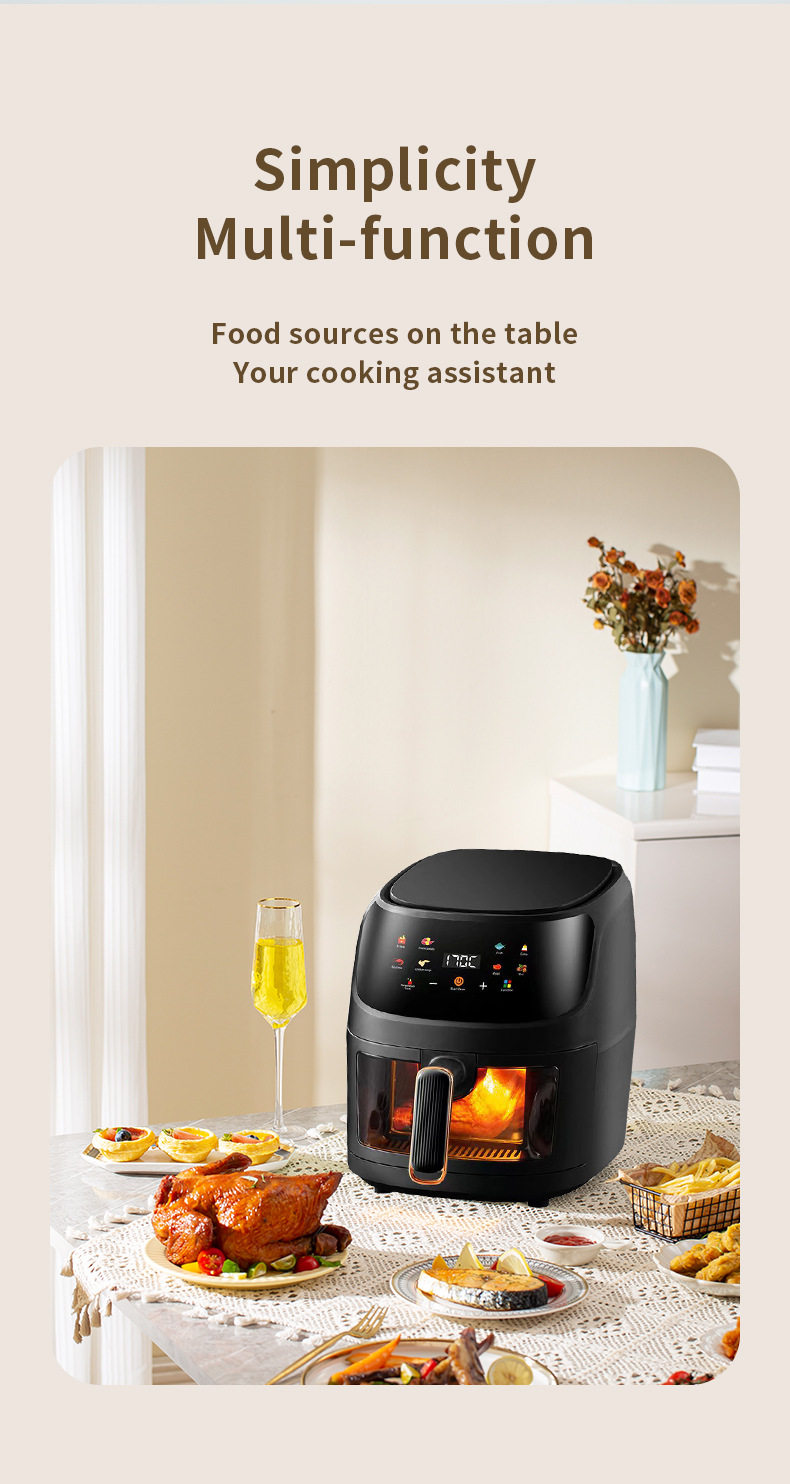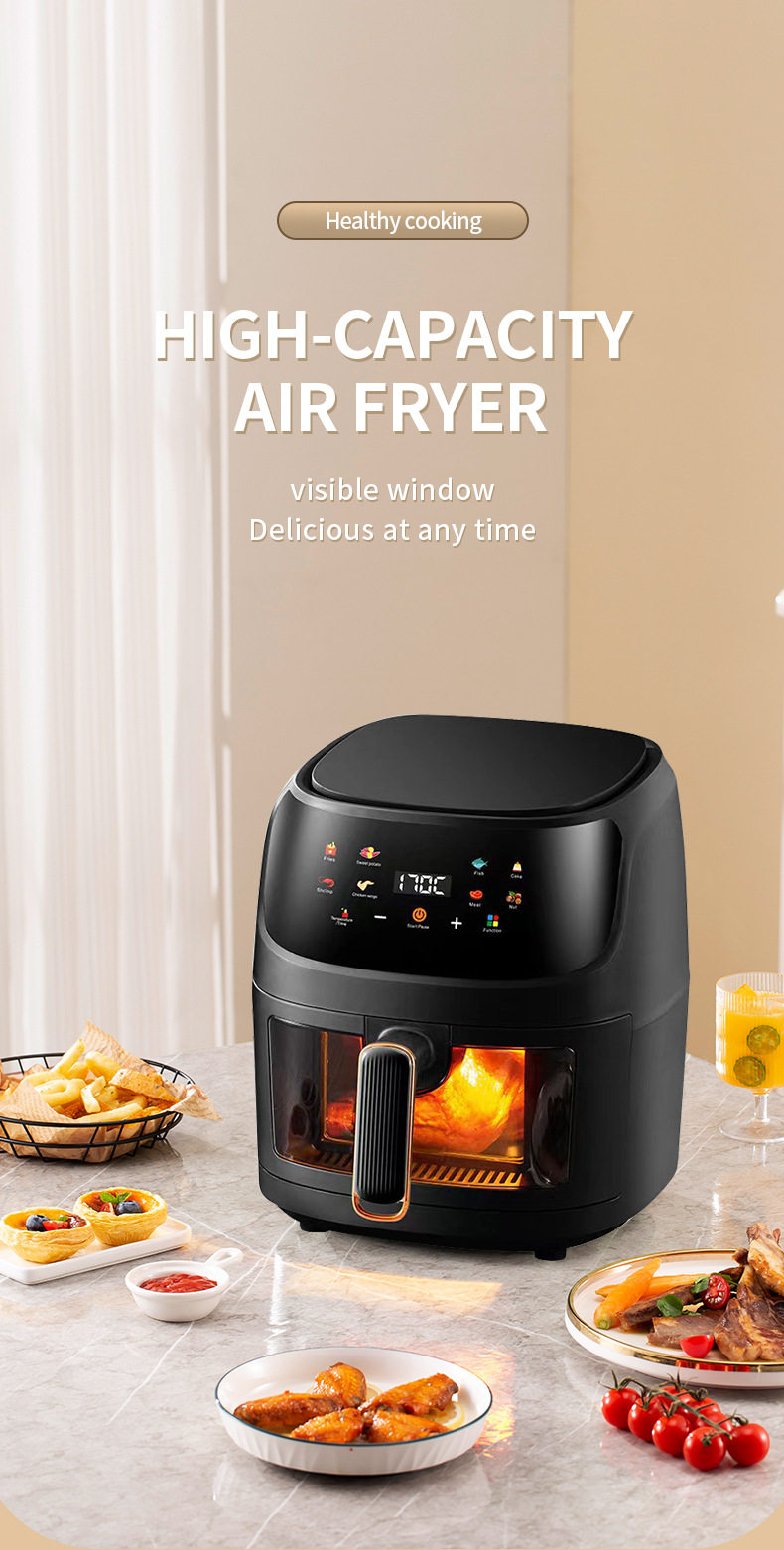 Air Fryer for Home Use with Visual Touch Screen, Large Capacity, Multifunctional Smart Electric Fryer, 110V European and American Standard, Cross-Border Model