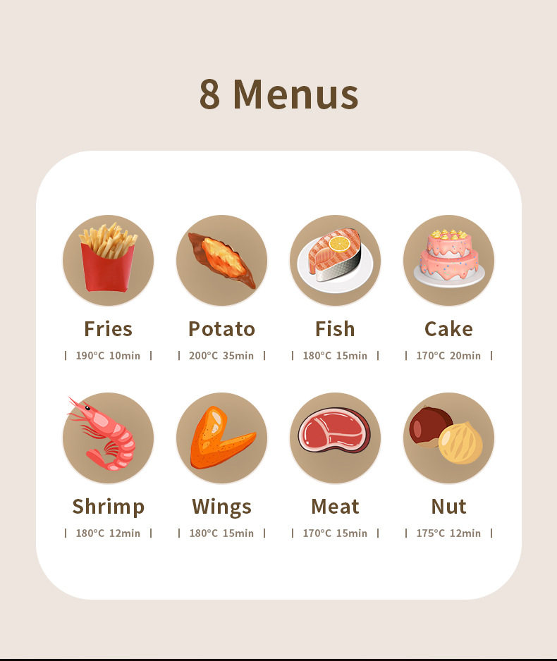 | Color Classification | Air Fryer Machine (4L),Air Fryer Touch Screen (4.5/6L),Visible Air Fryer Touch Screen (6L),Air Fryer Color Touch Screen (8L),Air Fryer Oven Touch Screen (15L),Glass Visible Air Fryer Touch Screen (6L),Visual Fryer Color Touch Screen (8L),608 Stainless Steel Air Fryer (8L),19 Models of Air Fryers,21 Models of Air Fryers,21 Models of Stainless Steel Air Fryers,Visible Air Fryer with Color Touchscreen,Mz-Kz703 Mechanical Fryer (Single Knob),Mz-Kz703 Mechanical Fryer (Dual Knobs),Mz-Kz701 Computer Fryer,Mz-601 Stainless Steel Air Fryer |