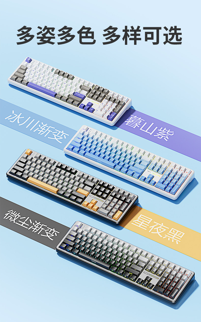 | Color Classification | Yunduo Woof-Wof Three-Mode Keyboard and Mouse Combo [Includes Full Set of Keycaps + Desk Mat],Panda Mahjong - Tri-Mode Keyboard and Mouse Combo [Includes Full Set of Keycaps + Desk Mat],Flower Season Meow Meow - Three-Mode Keyboard and Mouse [Free Full Version Keycaps + Desk Mat],Minimalist Gaming - Tri-Mode Keyboard and Mouse Combo [Includes Full-Size Keycap Set + Desk Mat],Daiya Sugar-Three-Mode Keyboard and Mouse [Free Full Version of Keycaps + Table Mat],Xinghe Youmeng-Three-Mode Keyboard and Mouse [Free Full Version of Keycaps + Table Mat],Huiji Man Dao - Three-Mode Keyboard and Mouse [Free Full-Size Keycap Set + Desk Mat],Bread Bear-Three-Mode Keyboard and Mouse [Free Full Version of Keycaps + Table Mat],Clouds Woof-Woof - Tri-Mode Rgb Edition [Includes Full Set of Keycaps],Panda Mahjong - Tri-Mode Rgb Edition [Includes Full Set of Keycaps],Flower Season Meow Meow - Three-Mode Rgb Edition [Includes Full Set of Keycaps],Minimalist Gaming Keyboard - Tri-Mode Rgb Edition [Full Set of Keycaps Included],Big Bud Sugar - Tri-Mode Rgb Edition [Includes Full Set of Keycaps],Xinghe Youmeng-Three-Mode Rgb Version [Free Full Version Keycaps],Ash Island - Tri-Mode Rgb Edition [Full Keycap Set Included],Bread Bear-Three-Mode Rgb Version [Free Full Version Keycaps] |