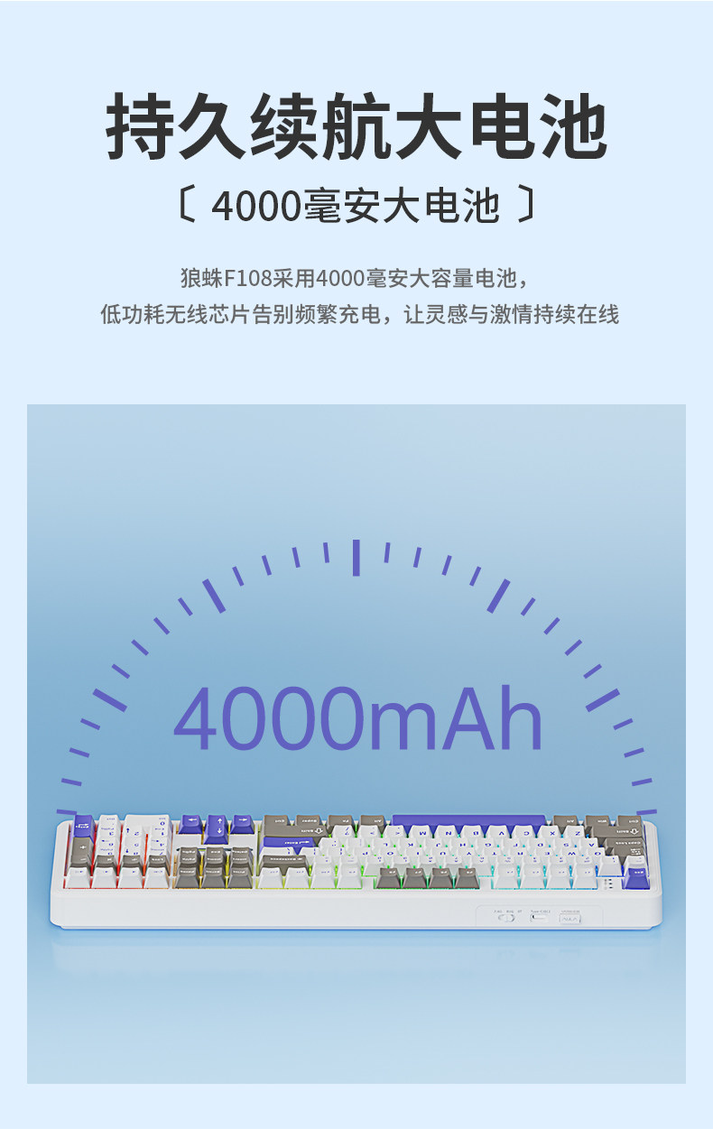 Wolf Spider F108 Three-Mode Keyboard and Mouse Set for E-Sports, Gaming, and Office Use, Mechanical Keyboard with Hot-Swappable Wireless 2.4g