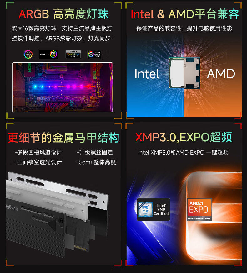 Jinbaida Ddr5 Memory Module Rgb Star Blade 6000 Silver Blade 6400 White Blade 24g 48g 96g Low Latency C32