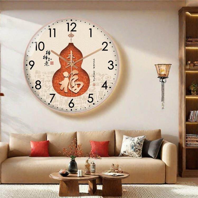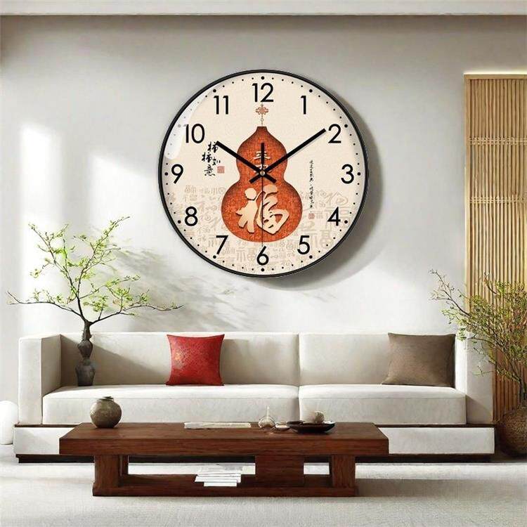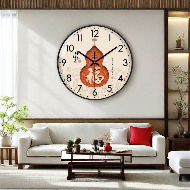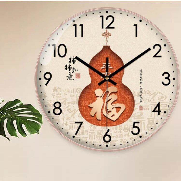 Chinese-Style Gourd-Shaped Wall Clock for Living Room, New Chinese-Style Clock, Silent Sweep-Second Quartz Clock, No-Drill Wall Clock