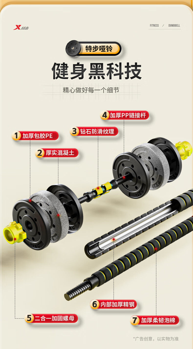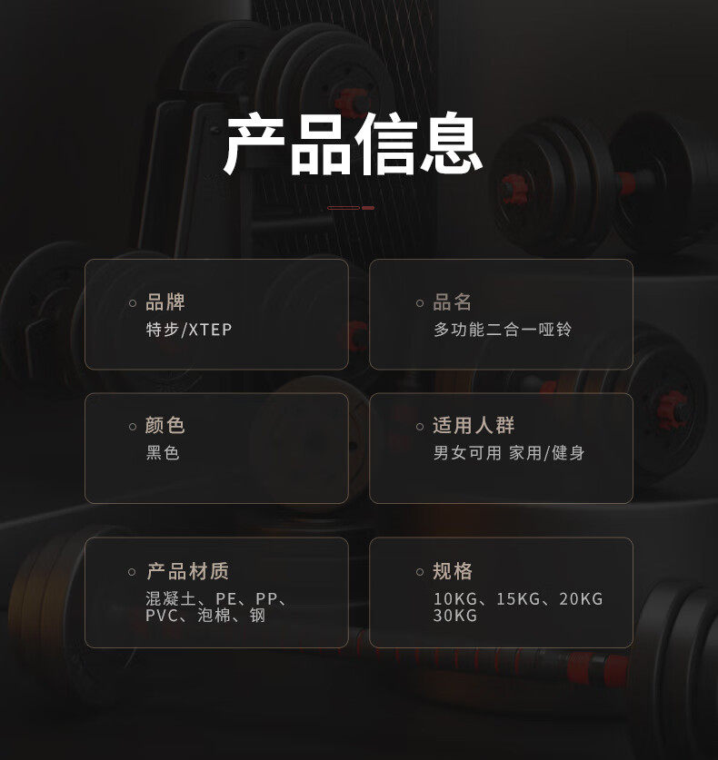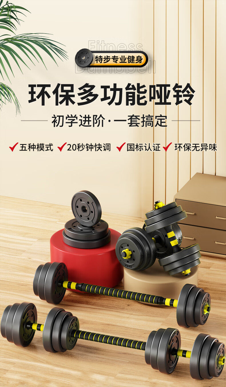 Xtep Dumbbells for Fitness, Men's and Youth Home Use, Adjustable Weight Equipment, Barbell 10kg, 20kg Pair