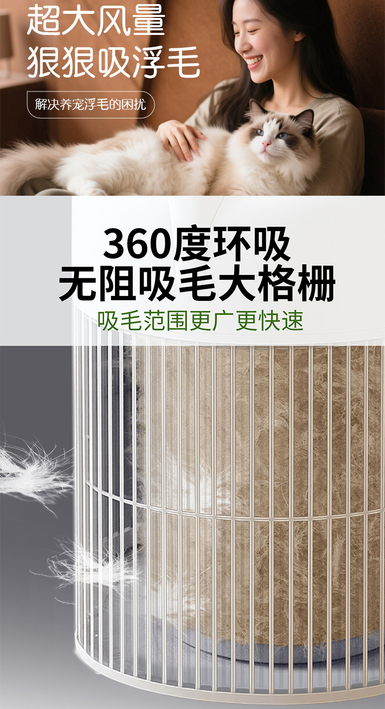 Fully Automatic Cat Hair Suction Device, Pet Air Purifier, Special Hair Suction Machine for Cats, Removes Floating Hair and Absorbs Dog Hair