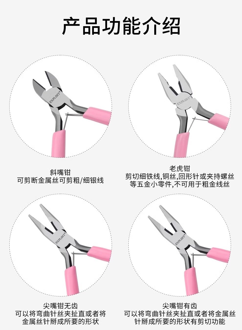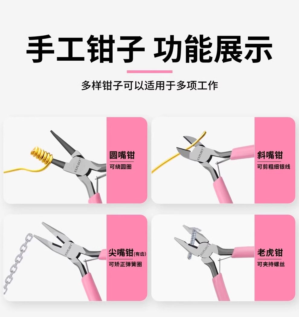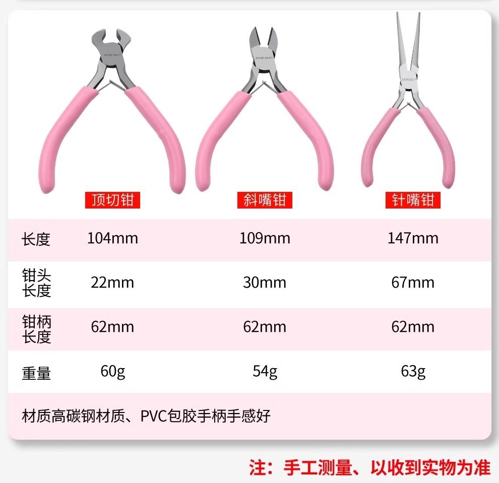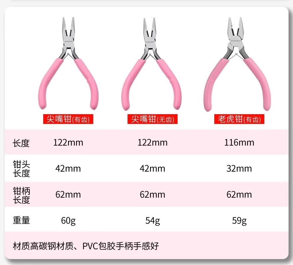 | Color Classification | [Special for Handwork] Pink Needle Nose Pliers (with Teeth),[for Manual Use] Pink Top Cutting Pliers,[Special for Hand Use] 5inch Yellow* Mini Flat Nose Pliers,[Special for Hand Use] 5inch Yellow* Mini Curved Nose Pliers,[for Manual Use] 5inch Yellow* Mini Top Cutting Pliers,[Special for Hand Use] 5inch Yellow* Mini Needle Nose Pliers (Toothless),[for Manual Use] 4.5inch Black* Diagonal Pliers,[Special for Hand Use] 4.5inch Black* Curved Nose Pliers,[for Handmade Use] 4.5inch Black* Jewelry Pliers |