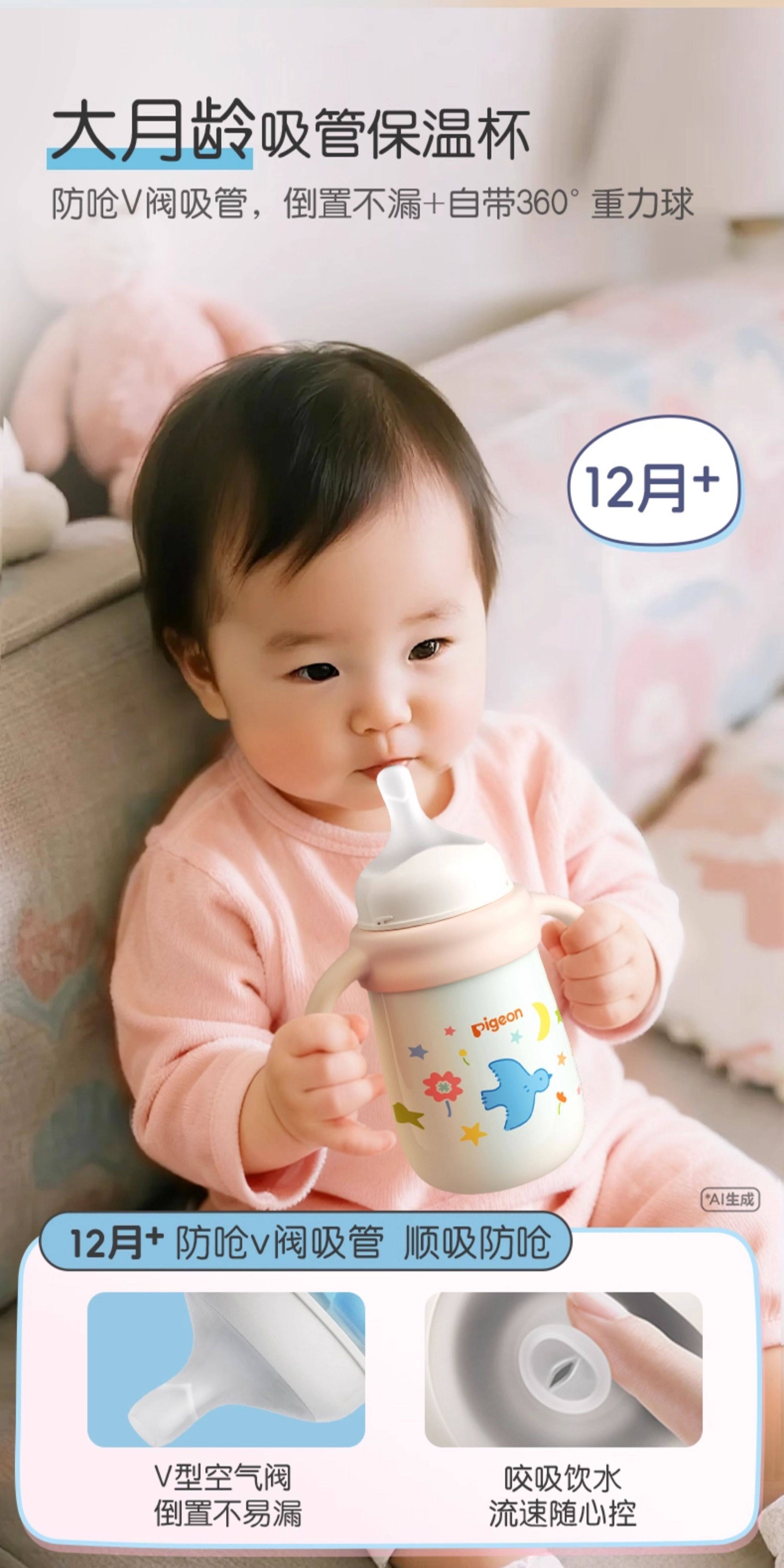 Pigeon Baby Insulated Cup Children's Water Cup Direct Drinking Straw Cup Autumn and Winter Insulated Milk Bottle Anti-Choking Anti-Leak 1-3 Years Old+