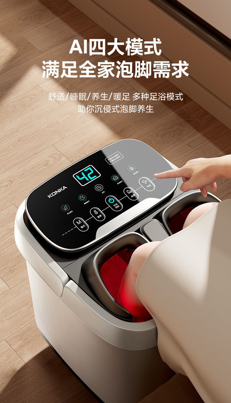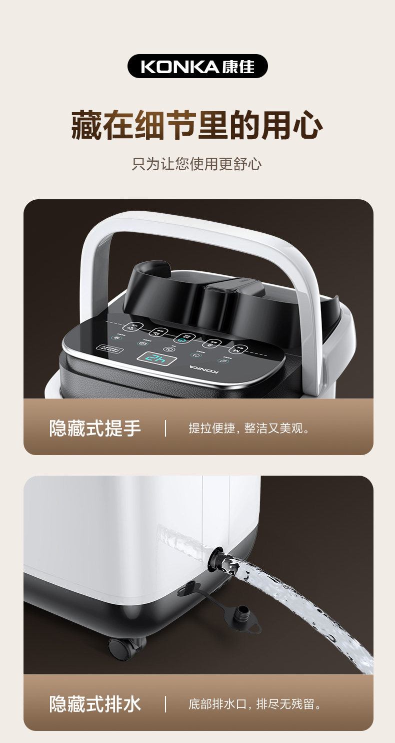 | Color Classification | 【Holographic Smart Steaming Model】Constant Temperature Heating + Foot Soak Massage + Cold Dispelling + Dehumidification + Wellness & Stress Relief + Sleep Aid + Rapid Sweat Dissipation + Deep Body & Mind Relaxation + Inverter Power Saving + Free Foot Bath Pack,【Premium Upgrade: the Ultimate Luxury Experience】Upgraded Digital Display + Constant Temperature Heating + Smart Central Control + Foot-Operated Acupressure + Timer Function + Enhanced Rapid Heating + Inverter Energy Saving + Free Foot Bath Gift Set,[Konka Top Lcd Model]❤️Steaming & Steeping Foot Bath + Upgraded Rapid Heating + Circulating Heating + Large Waterproof Lcd Screen + 16D Massage + Massage Pebbles + Simulated Shiatsu Massage + Water & Electricity Separation + Complete Foot Bath Gift Set,[Full-Featured Top-Of-The-Line Lcd Model]❤️Upgraded Foot Roller Massage + Steaming Foot Bath + Upgraded Quick Heating + Circulating Heating + Lcd Waterproof Large Screen + 16D Massage + Massage Pebbles + Simulated Human Finger Pressure + Water and Electricity Separation + Foot Bath Gift Pack,[Konka Advanced Luxury Health Bucket] Deep Bucket + 20D Massage + Fully Intelligent Fumigation Foot Bath + 9 Massage Techniques + 6 Massage Rollers + Enlarged Health Medicine Box + Wireless Remote Control + Foot Bath Gift Pack.,[Konka Fully Equipped with High-End Health Bucket]✅Patented Tai Chi Massage + Deep Tissue Bucket + 20D Massage + 7 Massage Zones + 9 Massage Techniques + Acupressure Massage Beads + Circulating Heat Therapy + Wireless Remote Control + Complete Foot Bath Gift Set,2025 New Style [High-End✅【Smart Pro Deep Bucket】Multi-Mode Smart Adjustment + Steaming & Soaking + 2-in-1 Roller & Acupressure Massage + Tai Chi Massage Wheels + Lcd Smart Control Screen + Foot Acupoint Massage + Wireless Remote Control + Free Foot Bath Gift Set,2025 New Style [High-End✅【Huawei Hilink Ecosystem】Mobile App Interconnectivity / 4 Smart Modes + 7 Massage Functions + Circulating Constant Temperature Heating + Foot Rubbing Design Foot Bath Box + Wireless Remote Control + Free Foot Bath Gift Set,2025 New Arrival: Supreme Edition✅【Uv Sterilization Deep Bucket】Upgraded Blue Light Sterilization + Hd Waterproof Touchscreen + Detachable Massage Tray + 6 Sets of Tai Chi Massage Wheels + Smart Temperature Control + Timer + Wireless Remote Control + 800W Rapid Heating + Foot Bath Gift Set,2025 Upgrade [Top Configuration✅Uv Sterilization + Fountain Deep Tub】Upgraded 99.99% Sterilization + Hd Waterproof Touchscreen + Detachable Massage Tray + 6 Sets of Tai Chi Massage Wheels + Smart Temperature Control + Timer + Wireless Remote Control + Rapid Heating + Foot Bath Gift Set,【Steam & Infusion】Hydro-Electric Separation + Bio-Mimicry Massage + Steam Infusion |