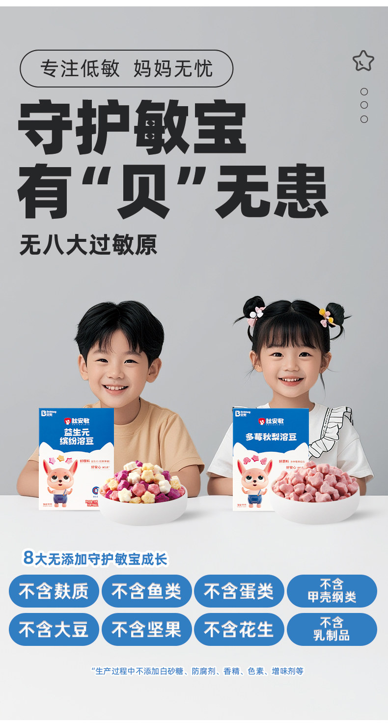 Beidou Yogurt Soluble Beans Children's Snack with Added Probiotics, Gluten-Free, Egg and Milk, Free Recipe for 8-Month-Old Babies