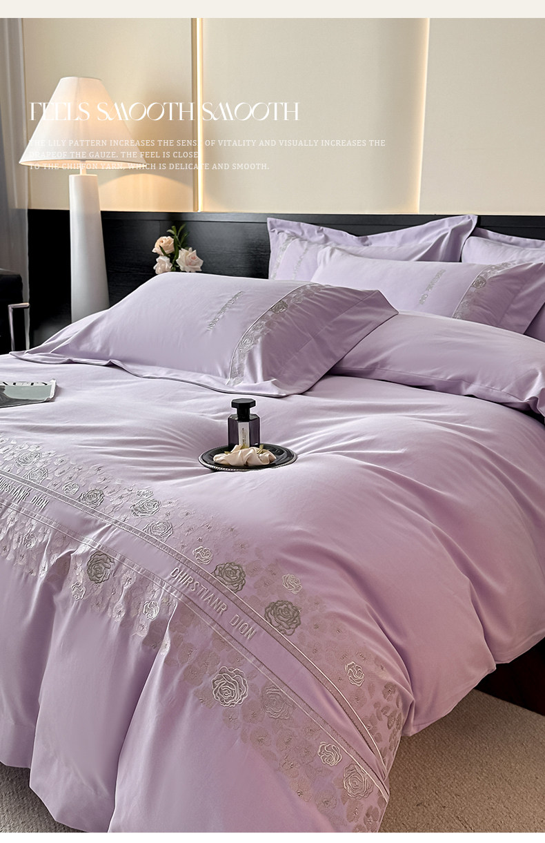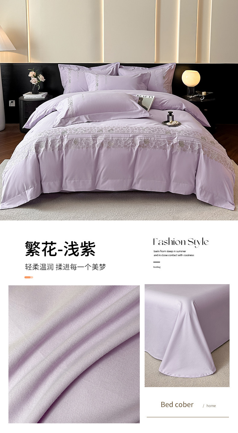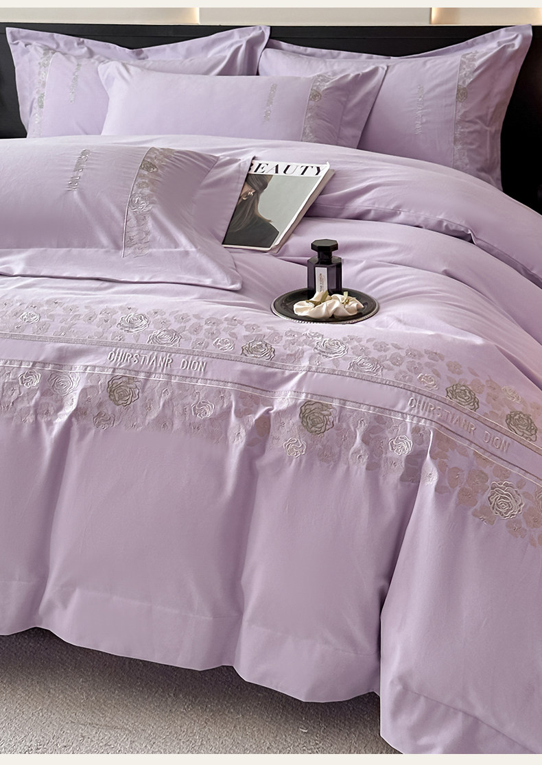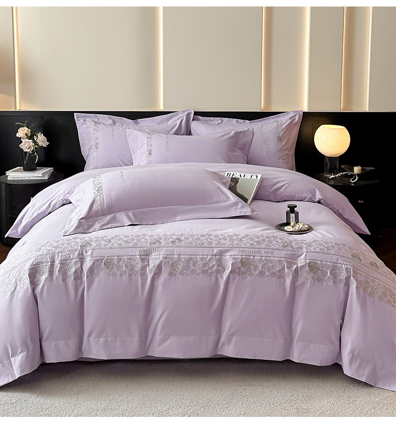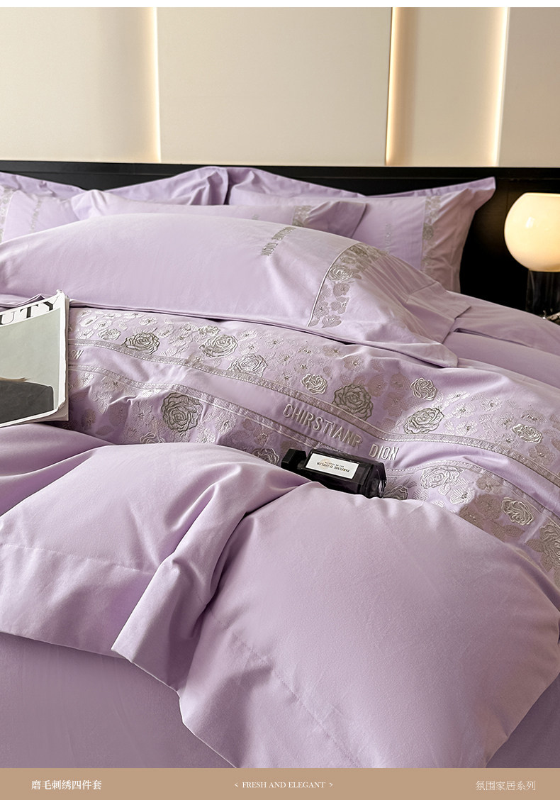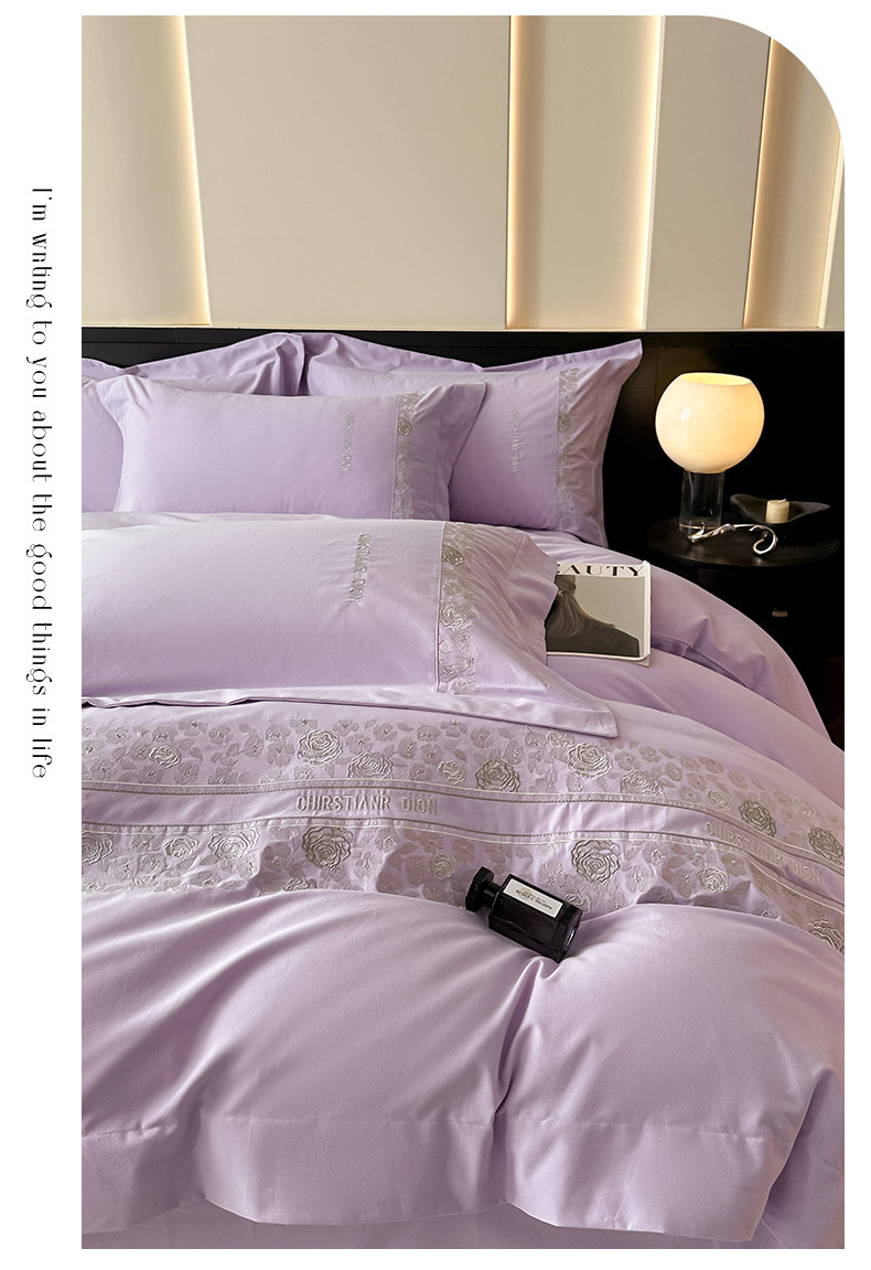 New 100S Pure Cotton Brushed Four-Piece Set, Pure Cotton Bed Sheet, High-End Fitted Sheet, Duvet Cover, High-End Bedding 4 Pieces