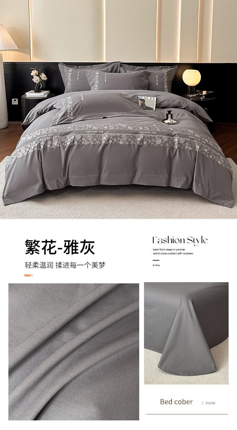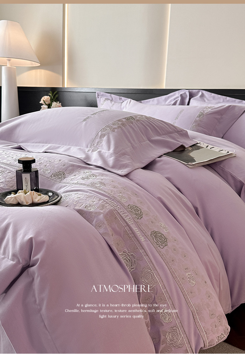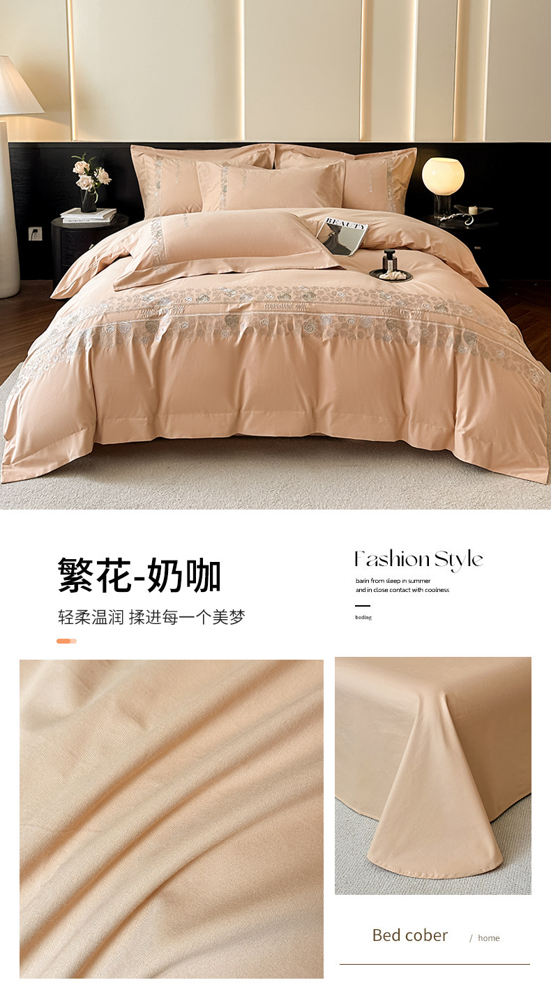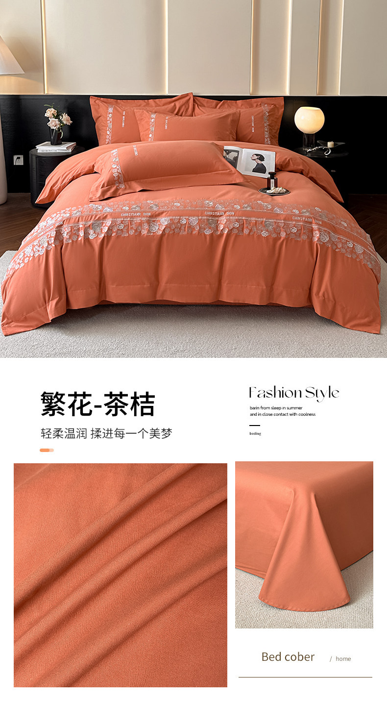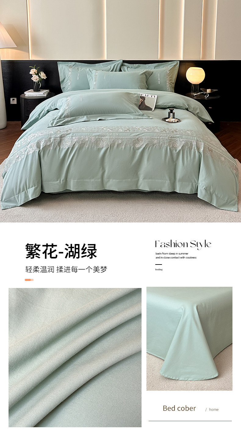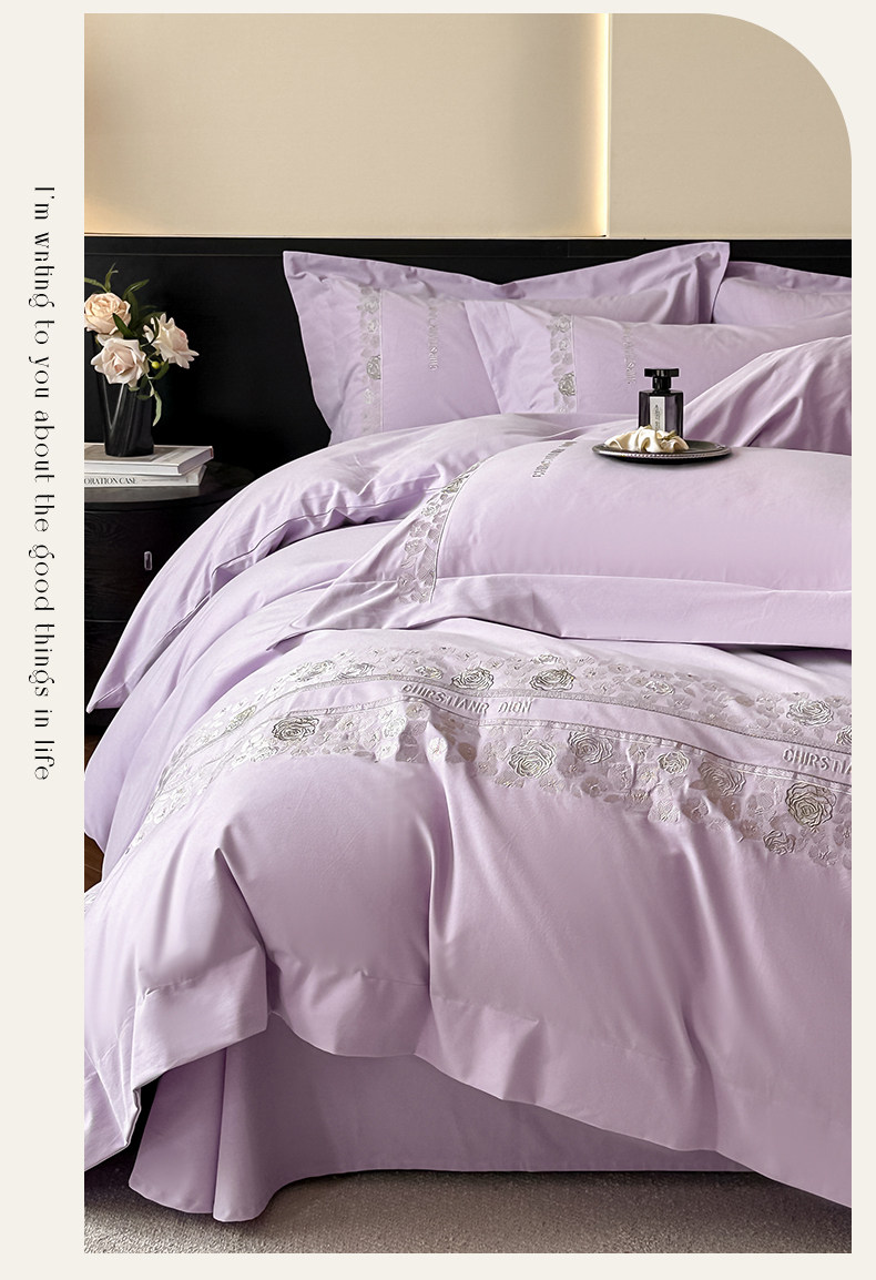 New 100S Pure Cotton Brushed Four-Piece Set, Pure Cotton Bed Sheet, High-End Fitted Sheet, Duvet Cover, High-End Bedding 4 Pieces