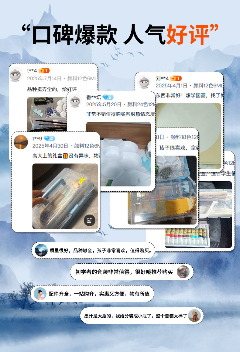 | Color Classification | ⭐⭐⭐Practical Entry-Level Model✅18-Piece Set[Starry Blue Calligraphy & Painting Tote Bag + 40 Sheets of 8K Xuan Paper],⭐⭐⭐Practical Entry-Level Model✅18-Piece Set[Girly Pink Calligraphy & Painting Tote Bag + 40 Sheets of 8K Xuan Paper],Standard 20-Piece Set[Starry Blue Calligraphy & Painting Tote Bag + 40 Sheets of Xuan Paper],Standard 20-Piece Set[Girly Pink Calligraphy & Painting Tote Bag + 40 Sheets of Xuan Paper],⭐Recommended by Famous Teachers, 25-Piece Set[Three Types of Xuan Paper][Starry Blue Calligraphy & Painting Tote Bag + 60 Sheets of Xuan Paper]Free Stamp Engraving,⭐Recommended by Famous Teachers, 25-Piece Set[Three Types of Xuan Paper][Girly Pink Calligraphy & Painting Tote Bag + 60 Sheets of Xuan Paper]Free Stamp Engraving,[Add More Rice Paper]25-Piece Set[Starry Blue Calligraphy & Painting Tote Bag + 80 Sheets of Xuan Paper + Wolf Hair Brush],[Add More Rice Paper]25-Piece Set[Girly Pink Calligraphy & Painting Tote Bag + 80 Sheets of Xuan Paper + Wolf Hair Brush],A Complete Set⭐Luxurious 35-Piece Set[Starry Sky Blue Tote Bag],A Complete Set⭐Luxurious 35-Piece Set[Girly Pink Handbag],Trial Model 14-Piece Set[Starry Sky Blue Tote Bag],Trial Model 14-Piece Set[Girly Pink Handbag],The Following Is the Combination of Marley Pigments,[Upgrade to Mary Kay Paints]✅18-Piece Set[Starry Blue - Calligraphy & Painting Tote Bag + 8K Raw Xuan Paper],[Upgrade to Mary Kay Paints]✅18-Piece Set[Girly Pink - Calligraphy & Painting Tote Bag + 8K Xuan Paper],[Upgrade to Mary Kay Paints]✅20-Piece Set[Starry Blue Calligraphy & Painting Tote Bag + 40 Sheets of Xuan Paper],[Upgrade to Mary Kay Paints]✅20-Piece Set[Girly Pink Calligraphy & Painting Tote Bag + 40 Sheets of Xuan Paper],[Upgrade to Mary Kay Paints]✅25-Piece Set[Three Types of Xuan Paper][Starry Blue Calligraphy & Painting Tote Bag + 60 Sheets of Xuan Paper]Free Stamp Engraving,[Upgrade to Mary Kay Paints]✅25-Piece Set[Three Types of Xuan Paper][Girly Pink Calligraphy & Painting Tote Bag + 60 Sheets of Xuan Paper]Free Stamp Engraving,[Upgrade to Mary Kay Paints]✅25-Piece Set[Starry Blue Calligraphy & Painting Tote Bag + 80 Sheets of Xuan Paper + Wolf Hair Brush],[Upgrade to Mary Kay Paints]✅25-Piece Set[Girly Pink Calligraphy & Painting Tote Bag + 80 Sheets of Xuan Paper + Wolf Hair Brush],[Upgrade to Mary Kay Paints]✅35-Piece Set[Starry Sky Blue Tote Bag],[Upgrade to Mary Kay Paints]✅35-Piece Set[Pink Tote Bag],[Upgrade to Mary Kay Paints]✅14-Piece Set[Starry Sky Blue Tote Bag],[Upgrade to Mary Kay Paints]✅14-Piece Set[Girly Pink Handbag] |