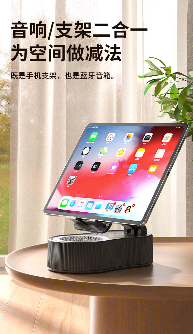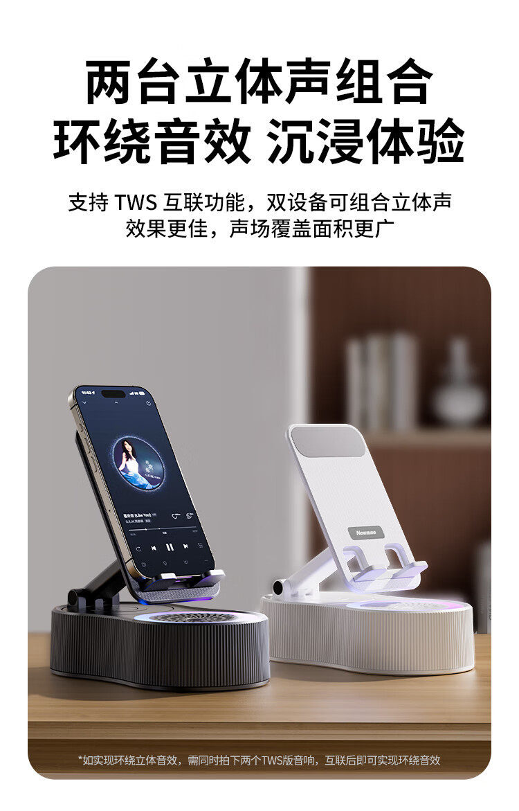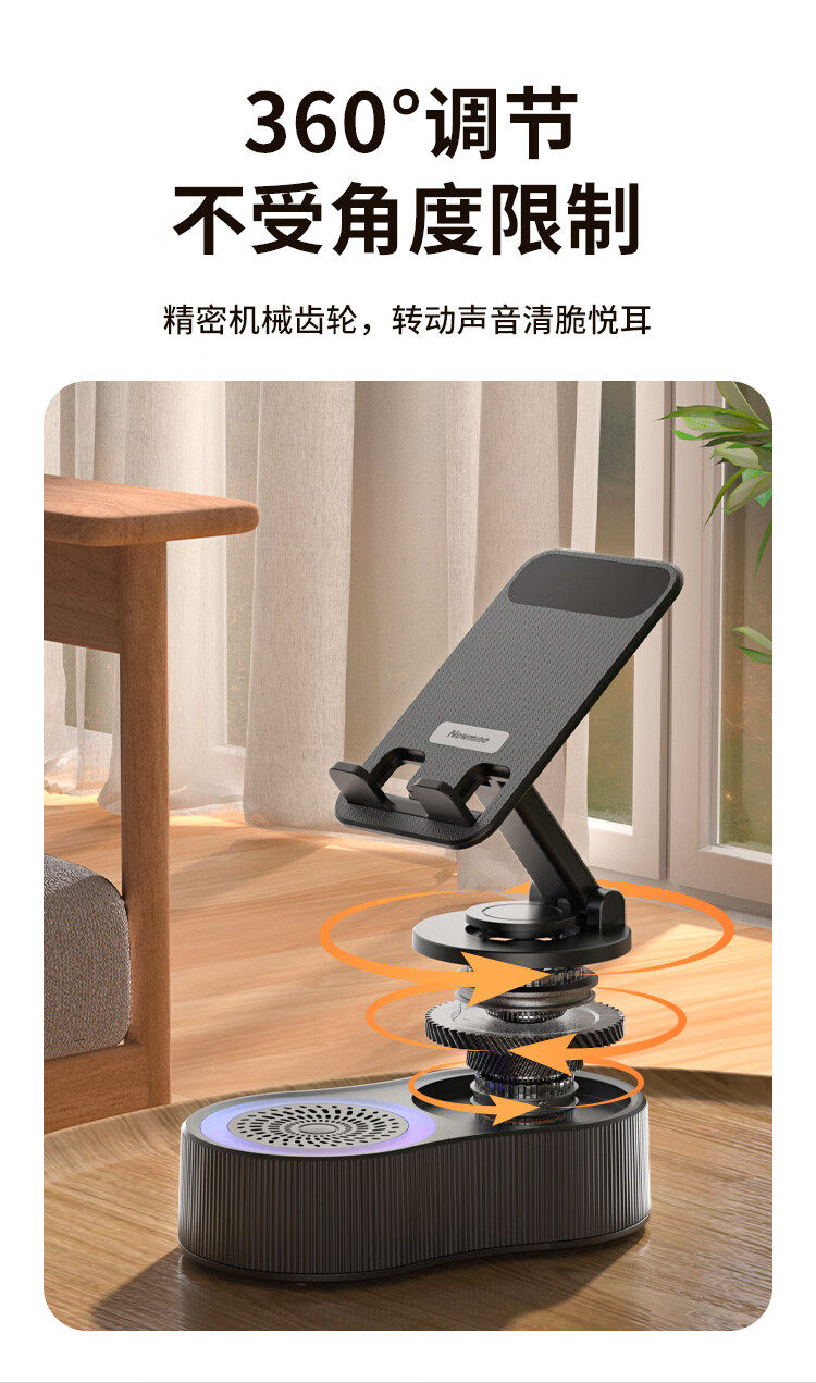 Newman Mobile Phone Holder Bluetooth Speaker 360-Degree Rotating Foldable Desktop Tablet Portable Speaker for Watching Shows Pbs007