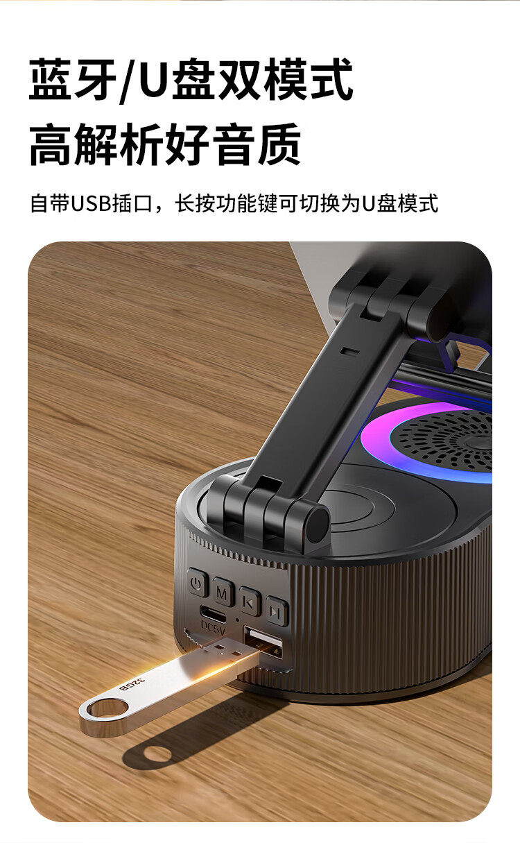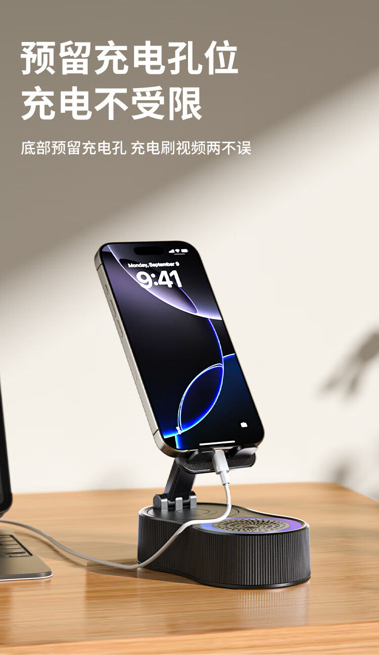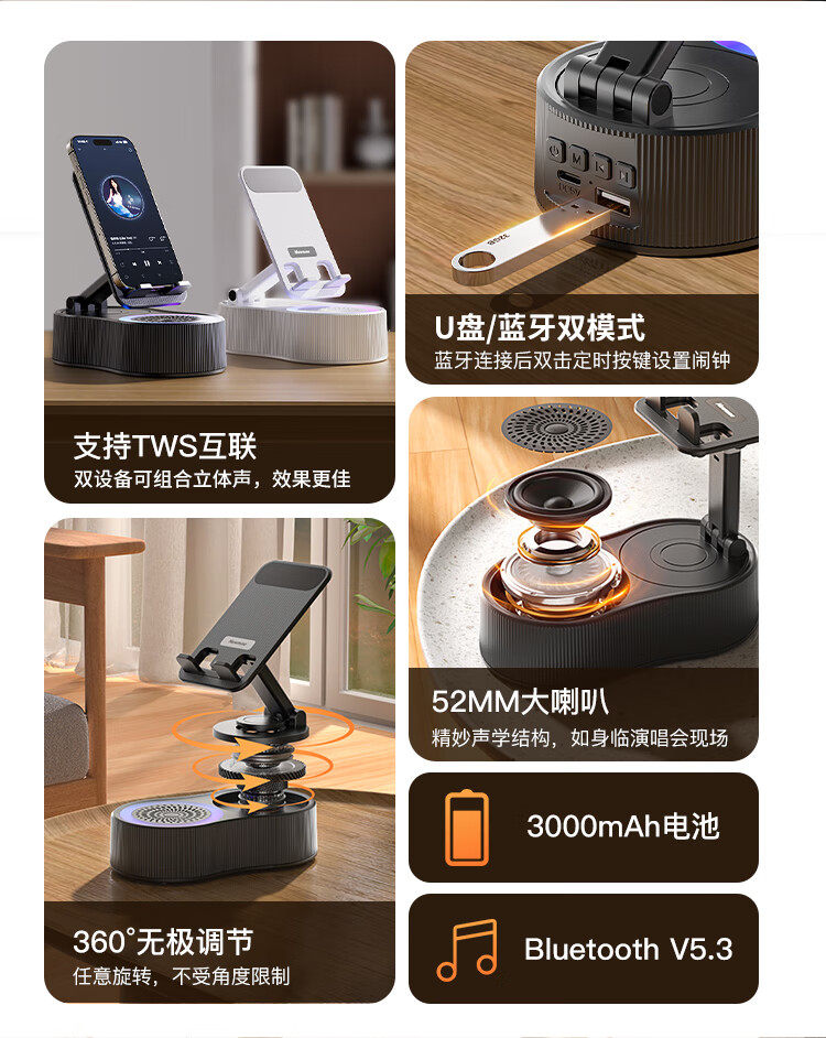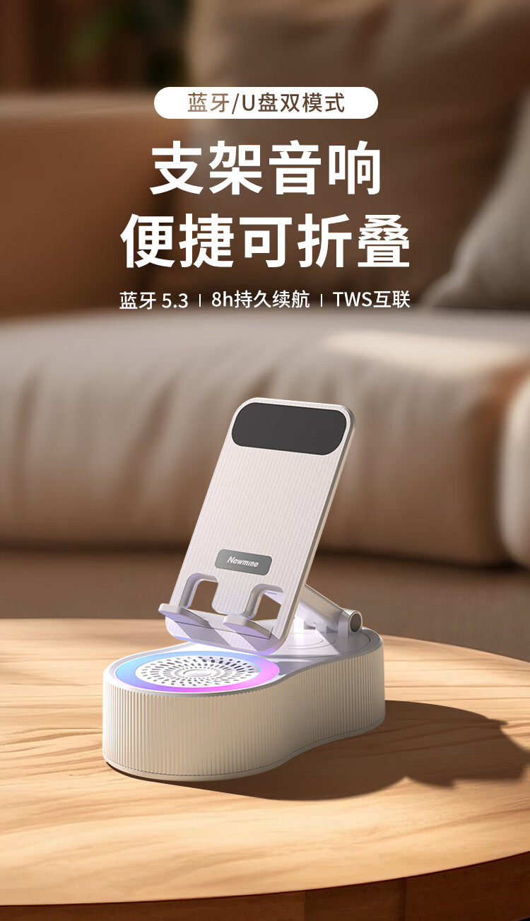 Newman Mobile Phone Holder Bluetooth Speaker 360-Degree Rotating Foldable Desktop Tablet Portable Speaker for Watching Shows Pbs007