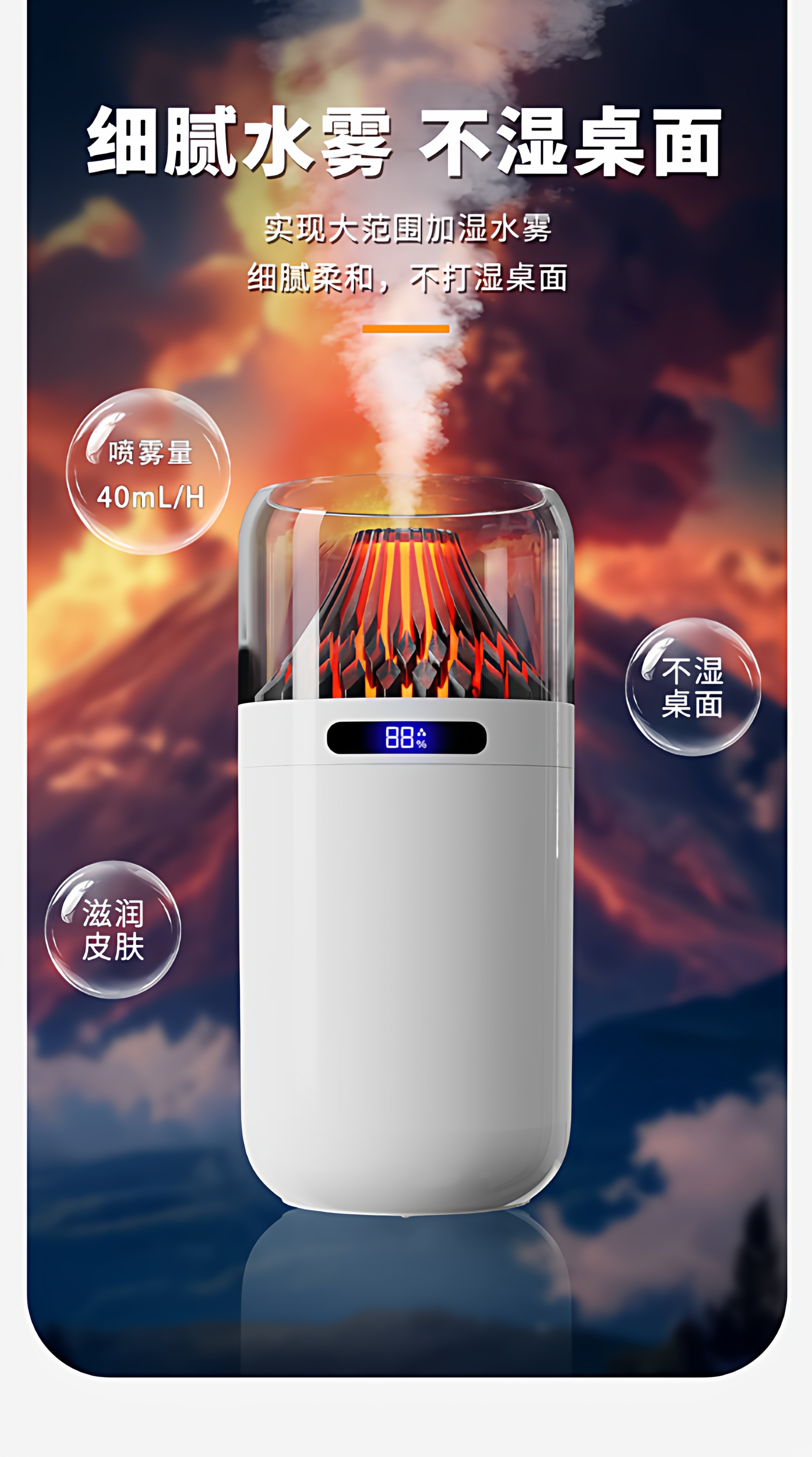 New Volcano-Style High-End Humidifier with Ambient Light, Aromatherapy, Minimalist Design, Small Size, Large Spray, Suitable for Home, Office, Dormitory, Bedroom, Universal for Pregnant Women and Infants, Large Capacity, Mini and Compact