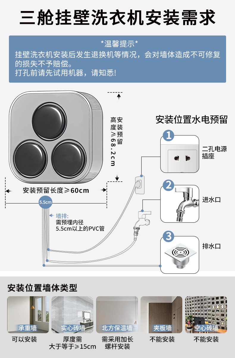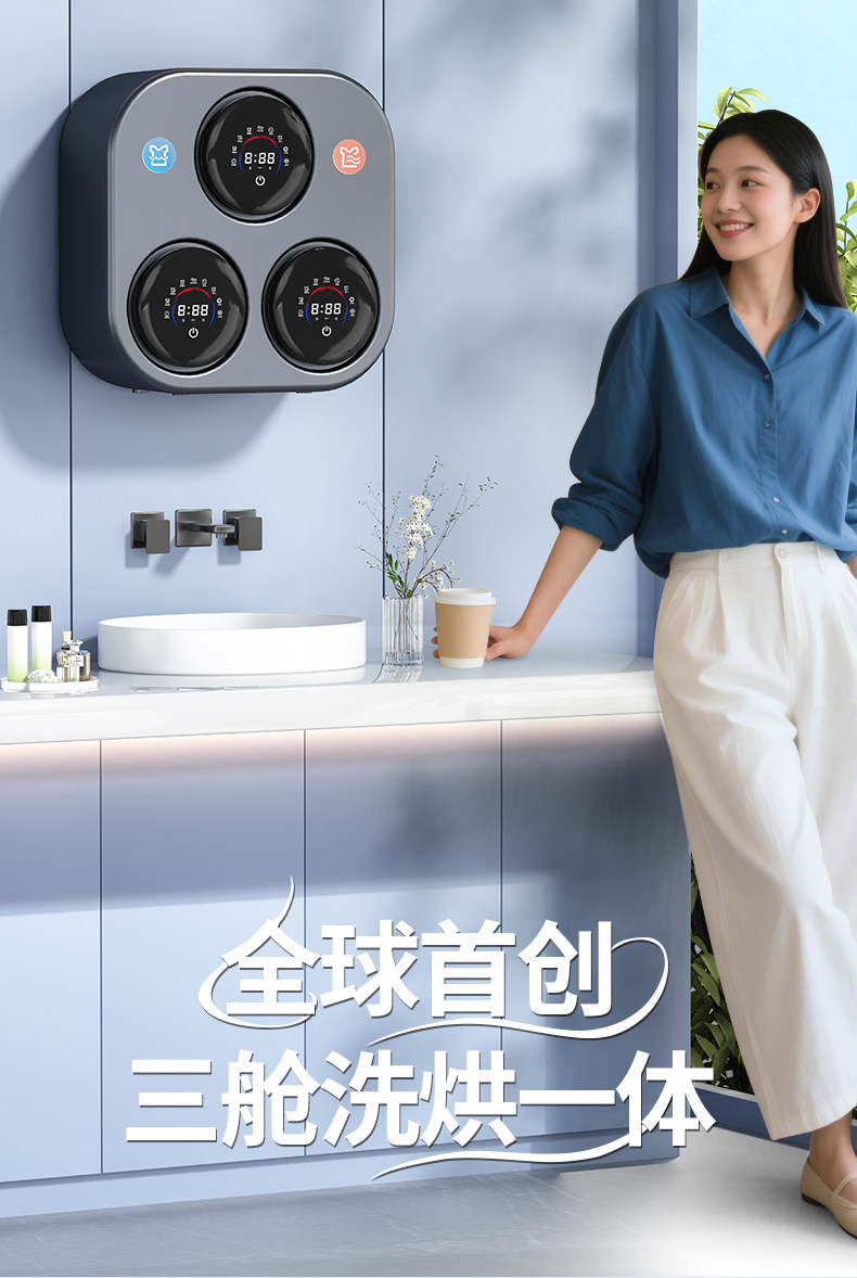 Three-Tub Underwear Washing Machine, Wall-Mounted, Small, Fully Automatic, Dedicated Drum Washing and Drying Machine, Sock Washing Magic Device