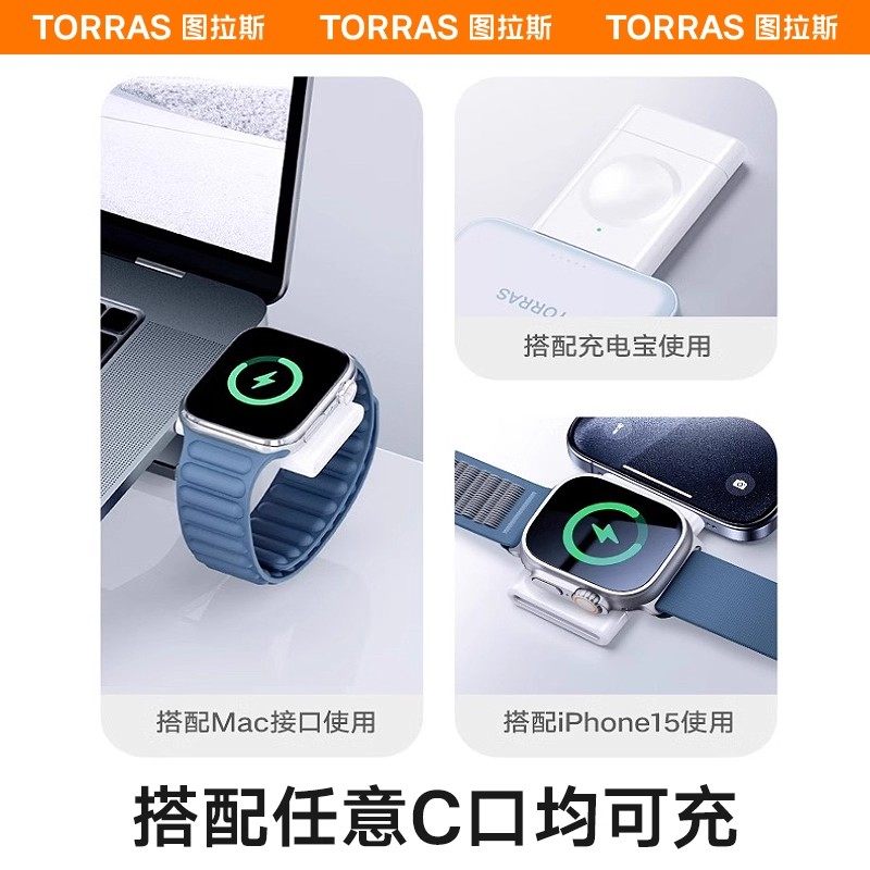 Turas Fast Charging Is Suitable for Apple Watch Charger Iwatch9 Wireless Magnetic Watch Ultra 2Nd Generation Apple Watchs7/8/6/5/4/3/2Se Mini Portable Charging Base