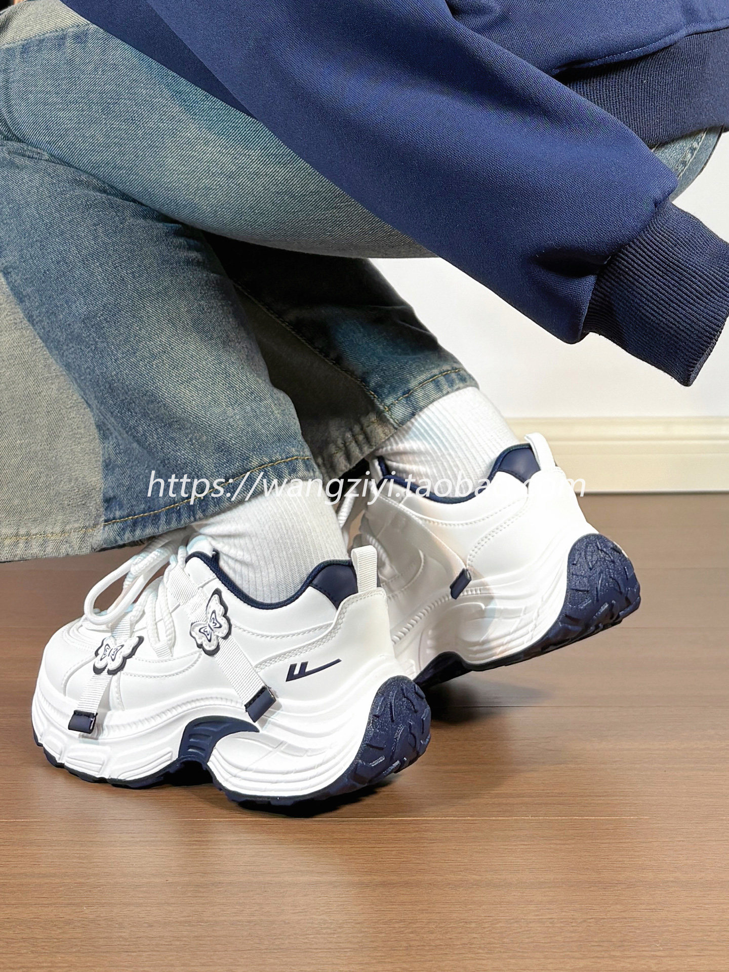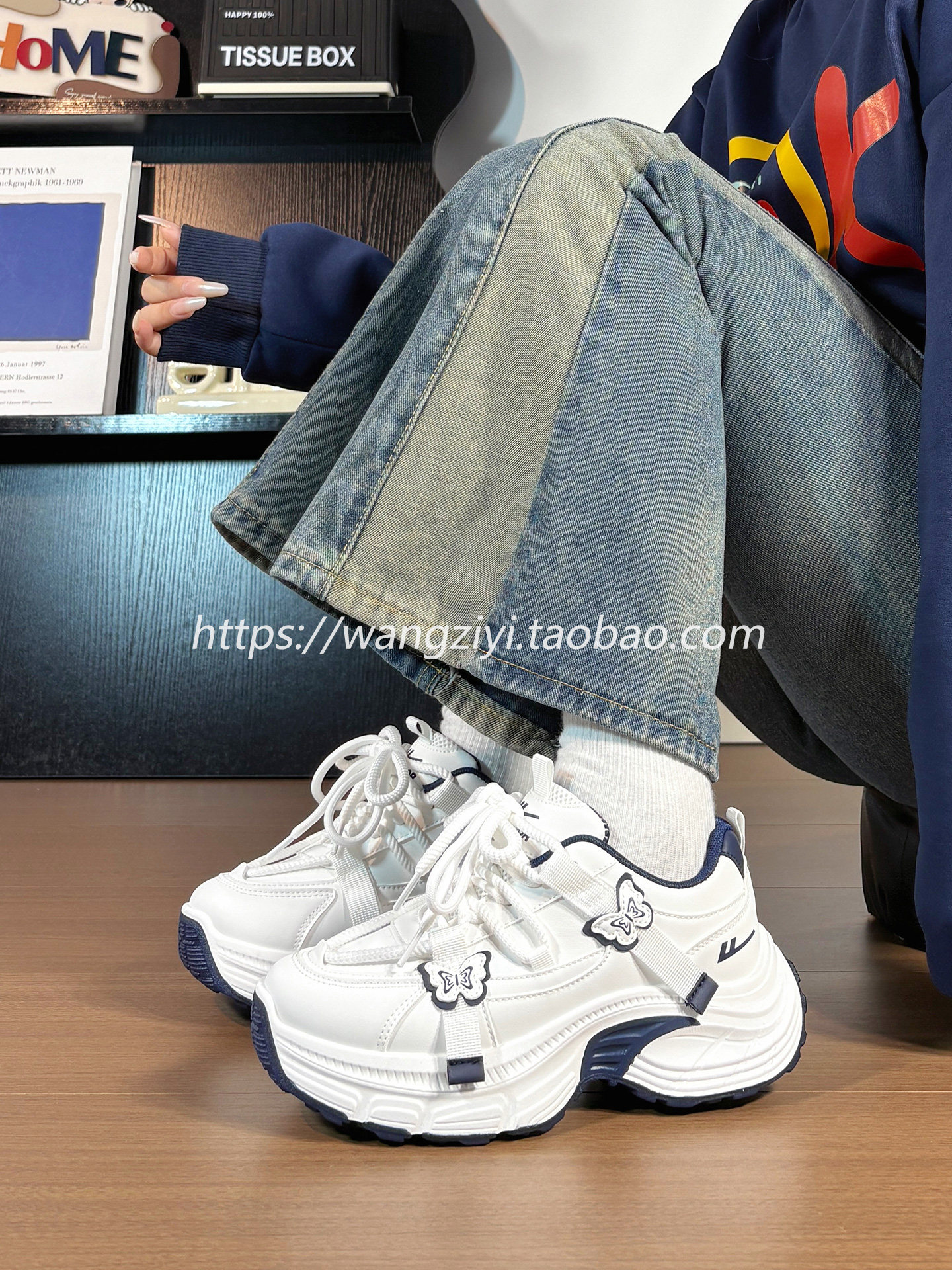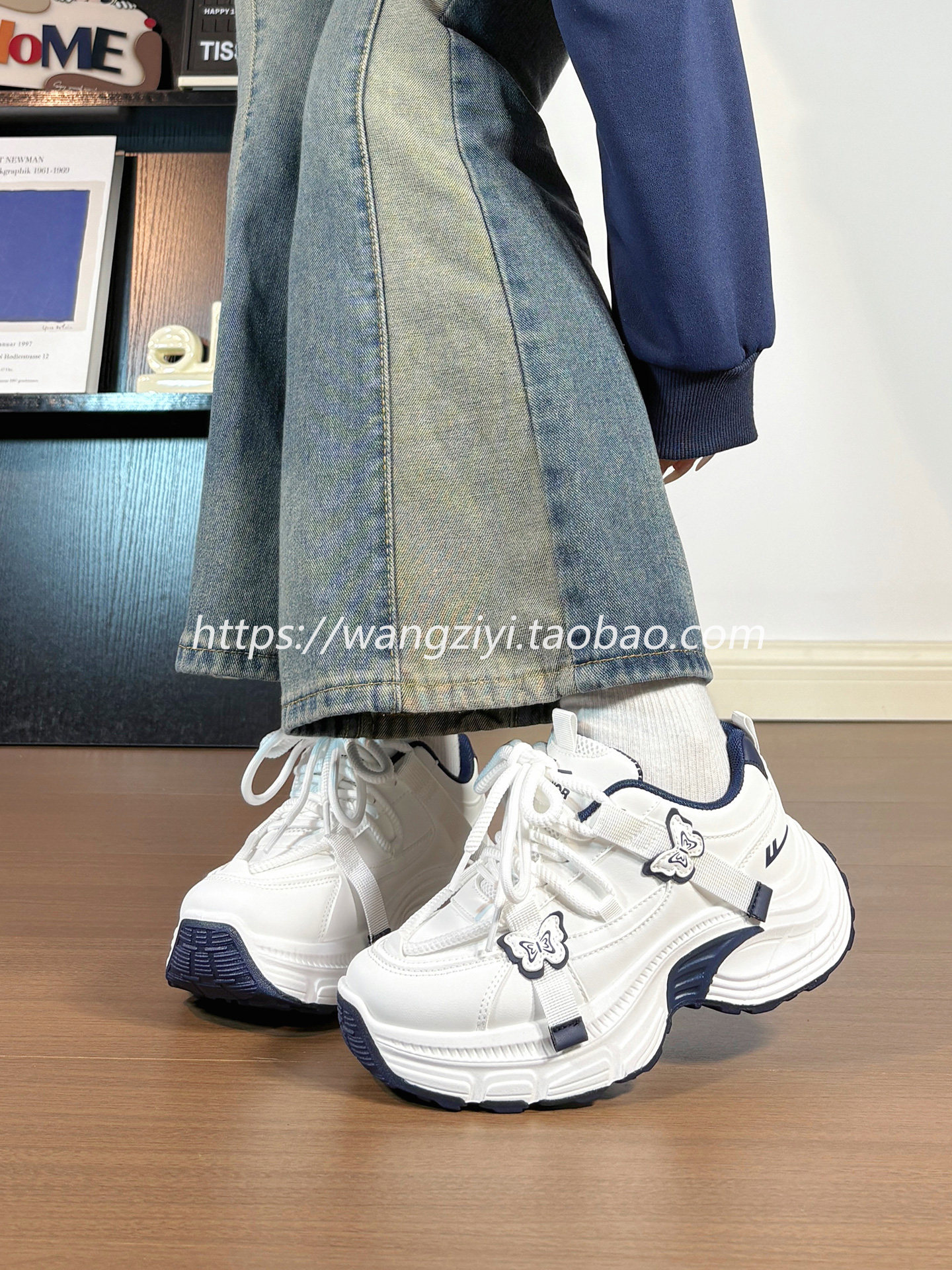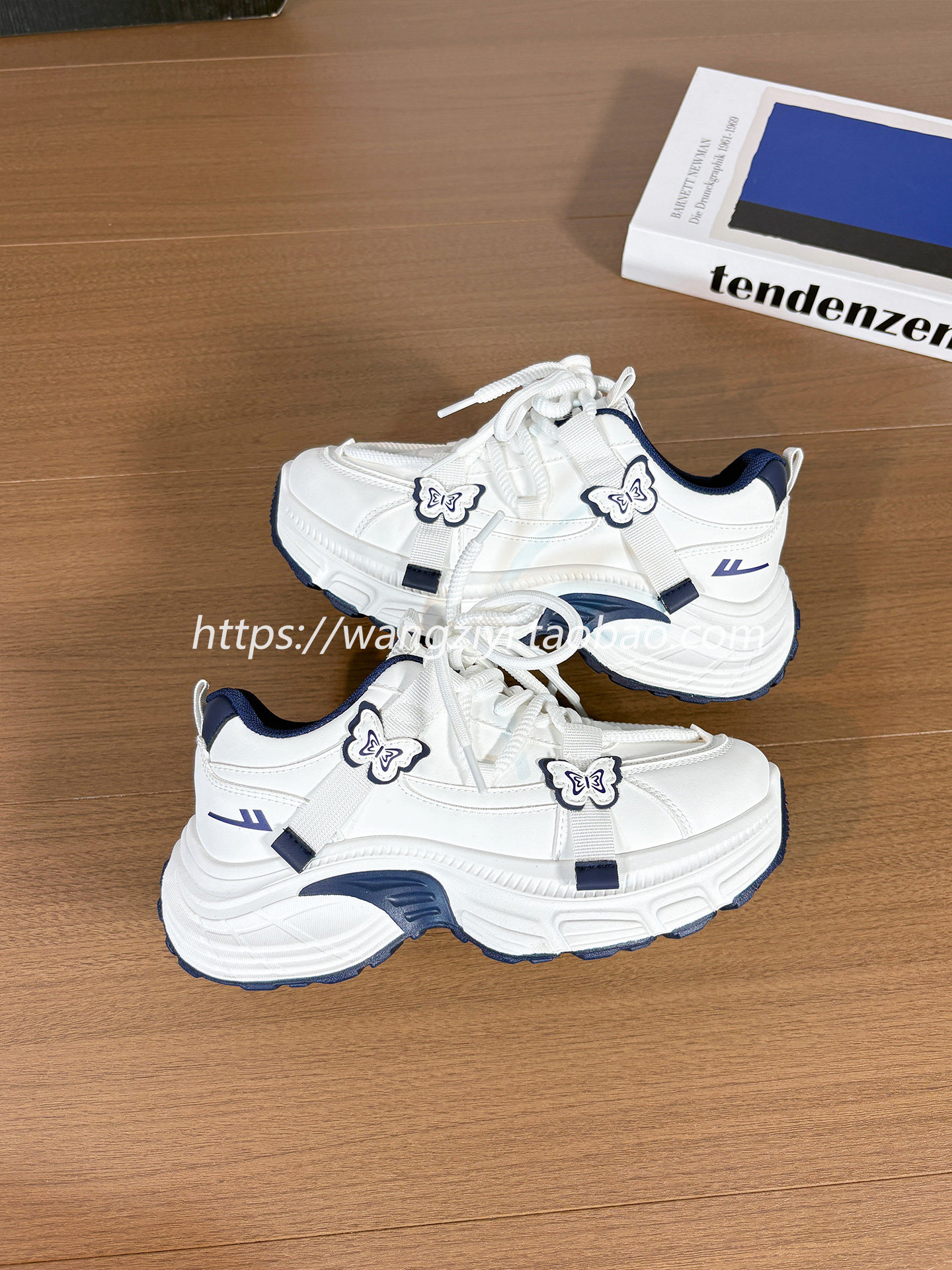 Original Butterfly Sneakers for Women, Leather Upper, Winter Fleece-Lined, Internet Popular Style, Versatile, Warm, Thick-Soled Dad Shoes for Women