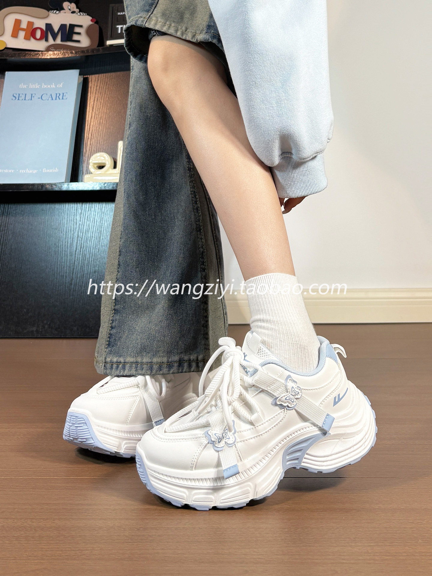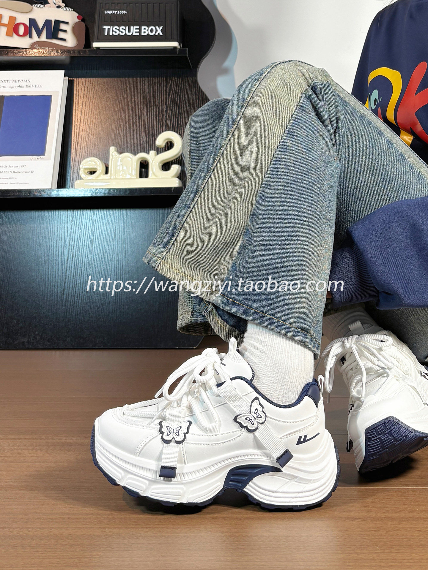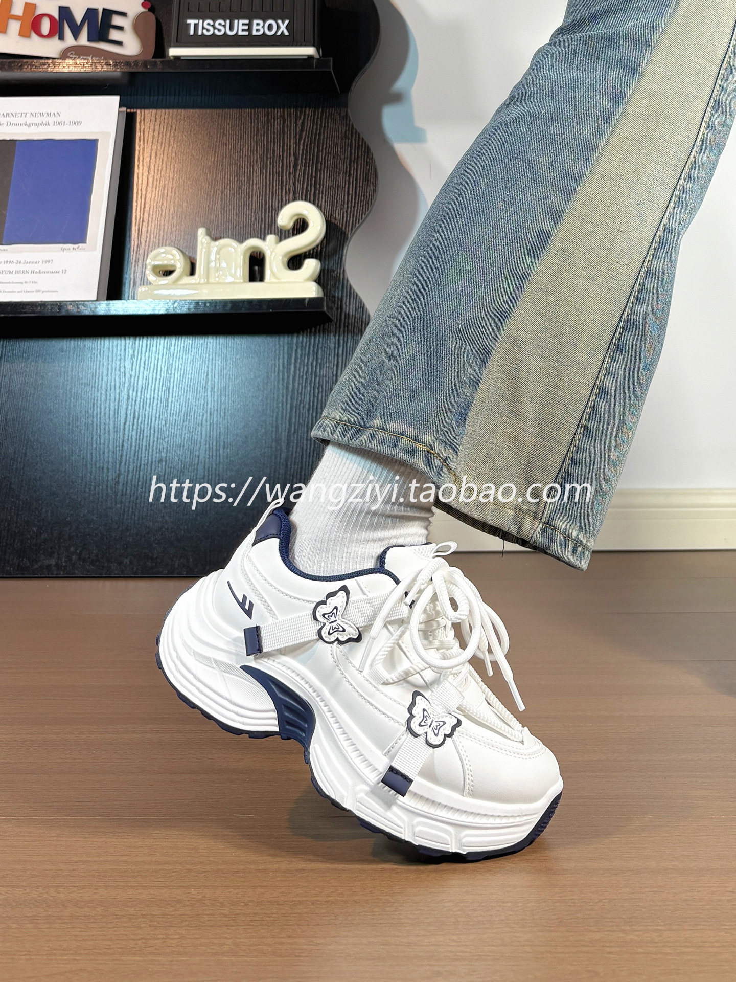 Original Butterfly Sneakers for Women, Leather Upper, Winter Fleece-Lined, Internet Popular Style, Versatile, Warm, Thick-Soled Dad Shoes for Women