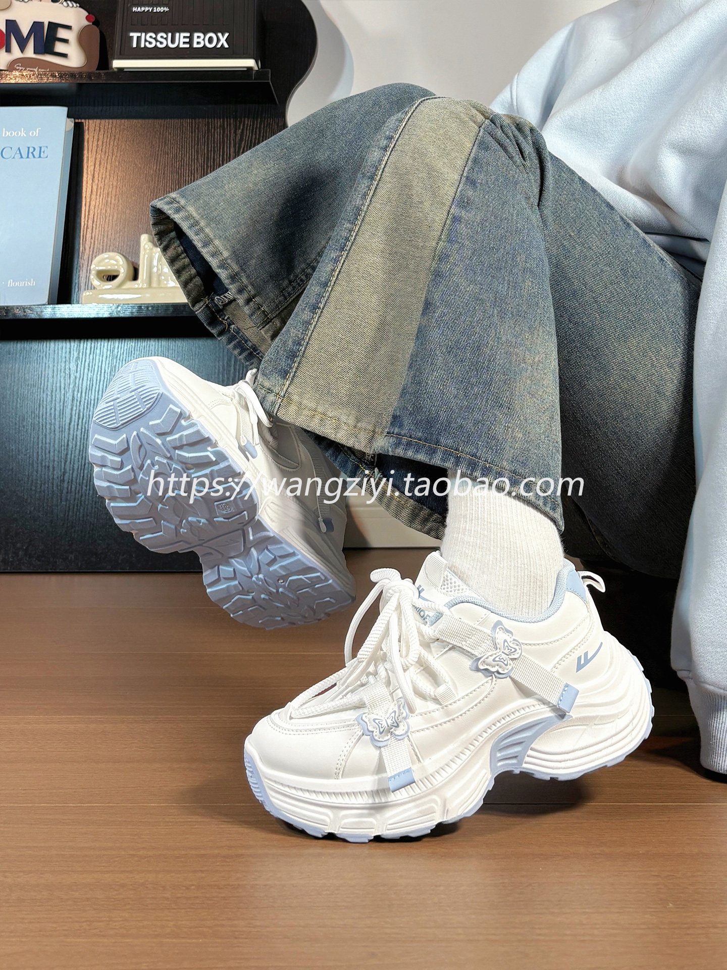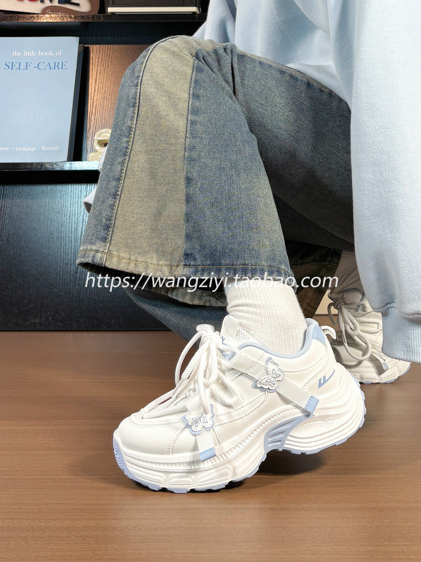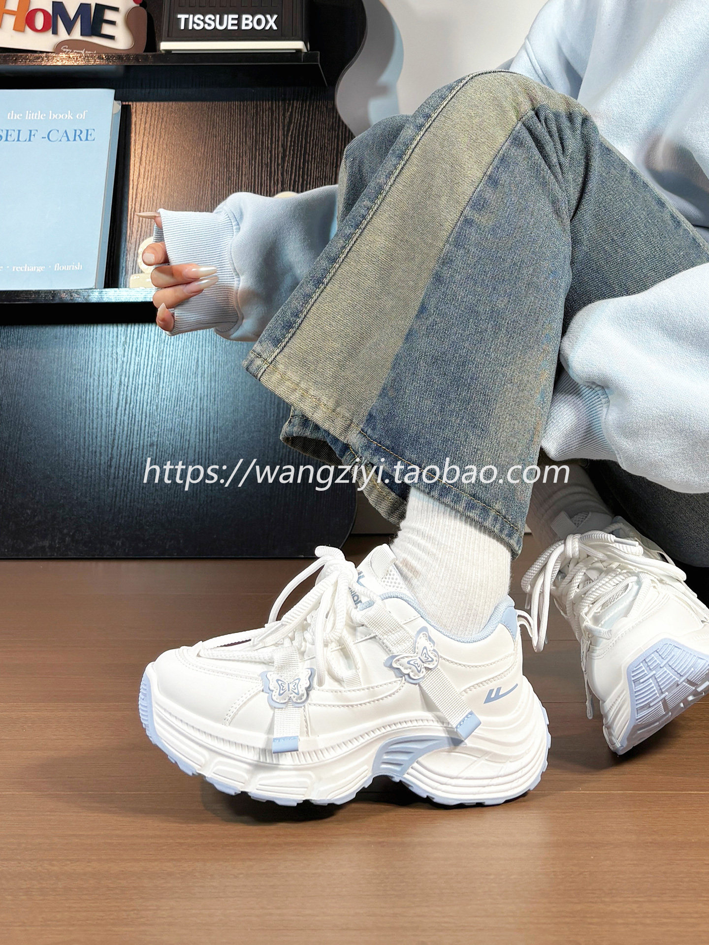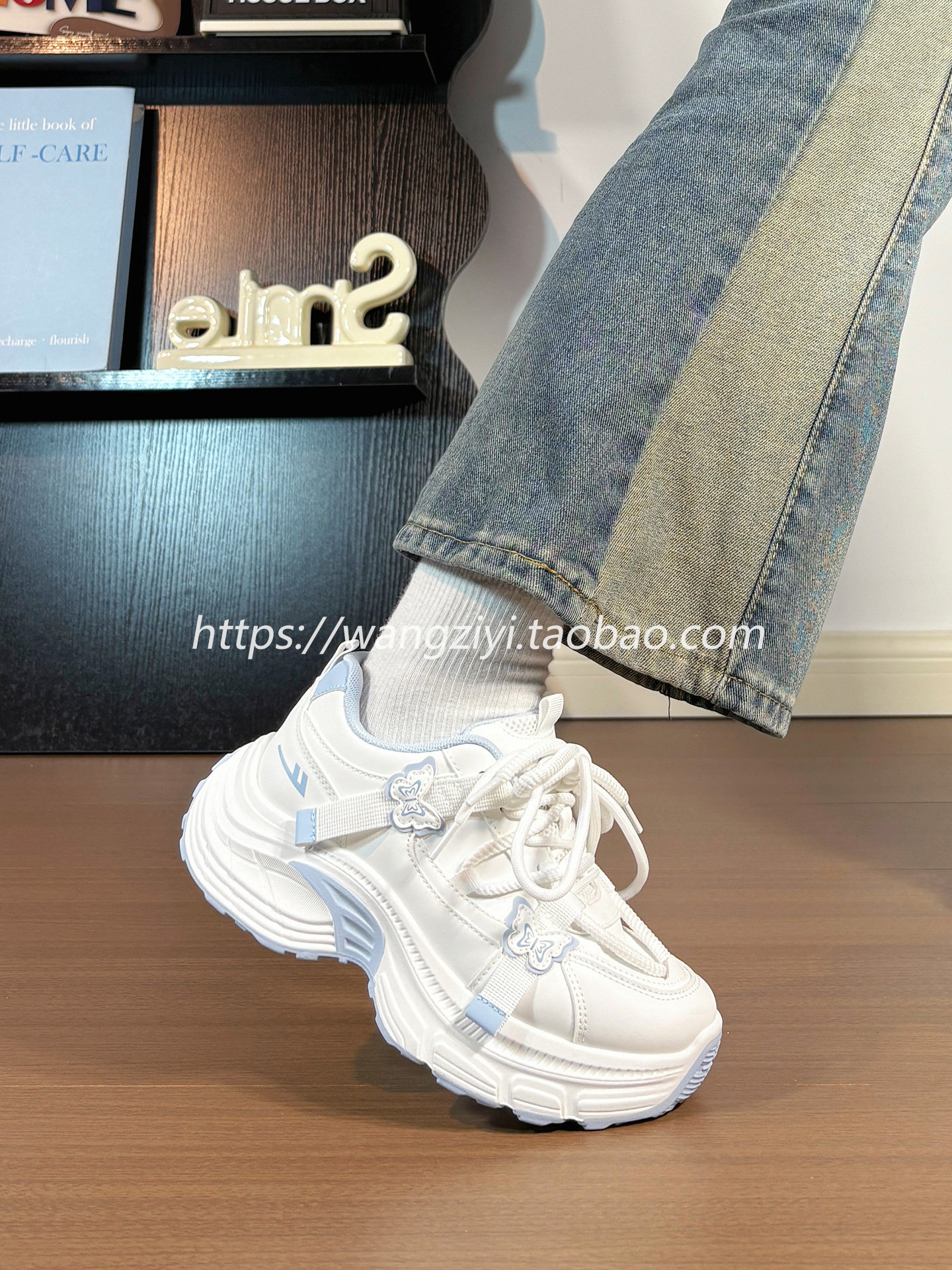 Original Butterfly Sneakers for Women, Leather Upper, Winter Fleece-Lined, Internet Popular Style, Versatile, Warm, Thick-Soled Dad Shoes for Women