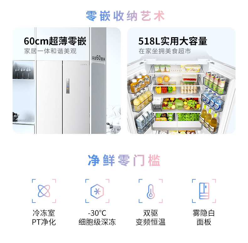 Midea's Hualing Shenji Xiao Zeus 518 Dual-System Zero-Inset Automatic Ice-Making French-Door Four-Door Home Refrigerator