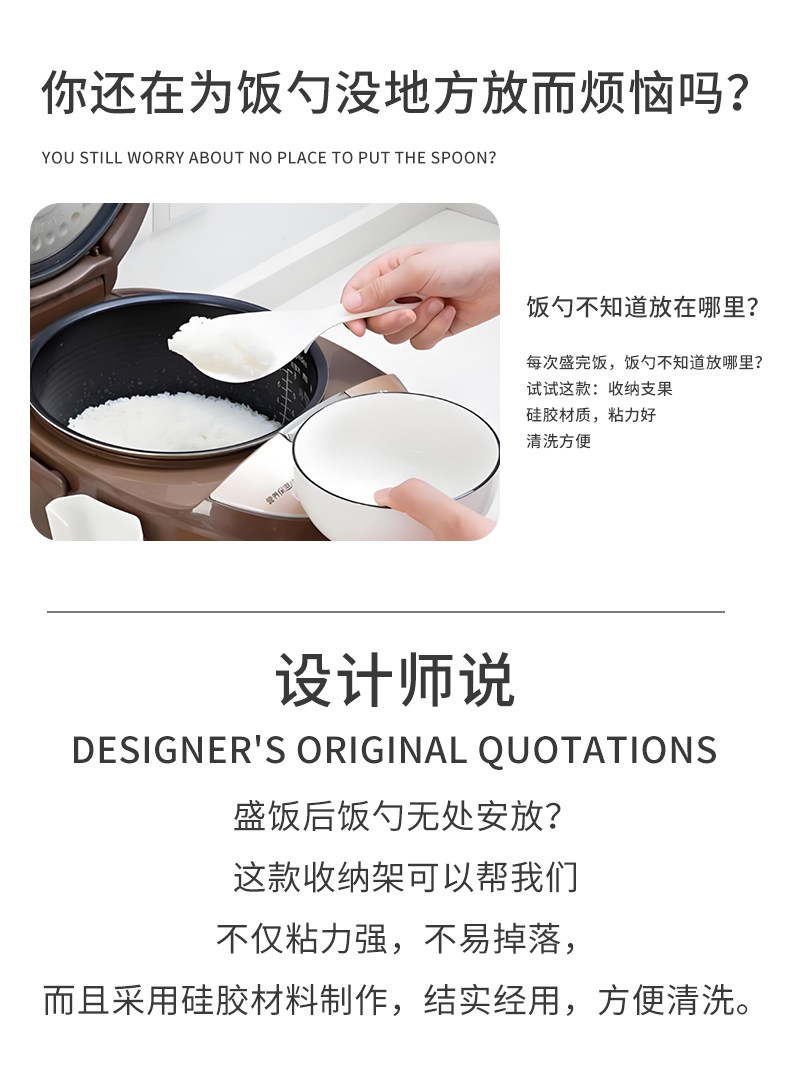 3m Adhesive Rice Spoon Holder Kitchen Wall-Mounted Storage Rack Rice Cooker Spatula Spoon Placement Rack