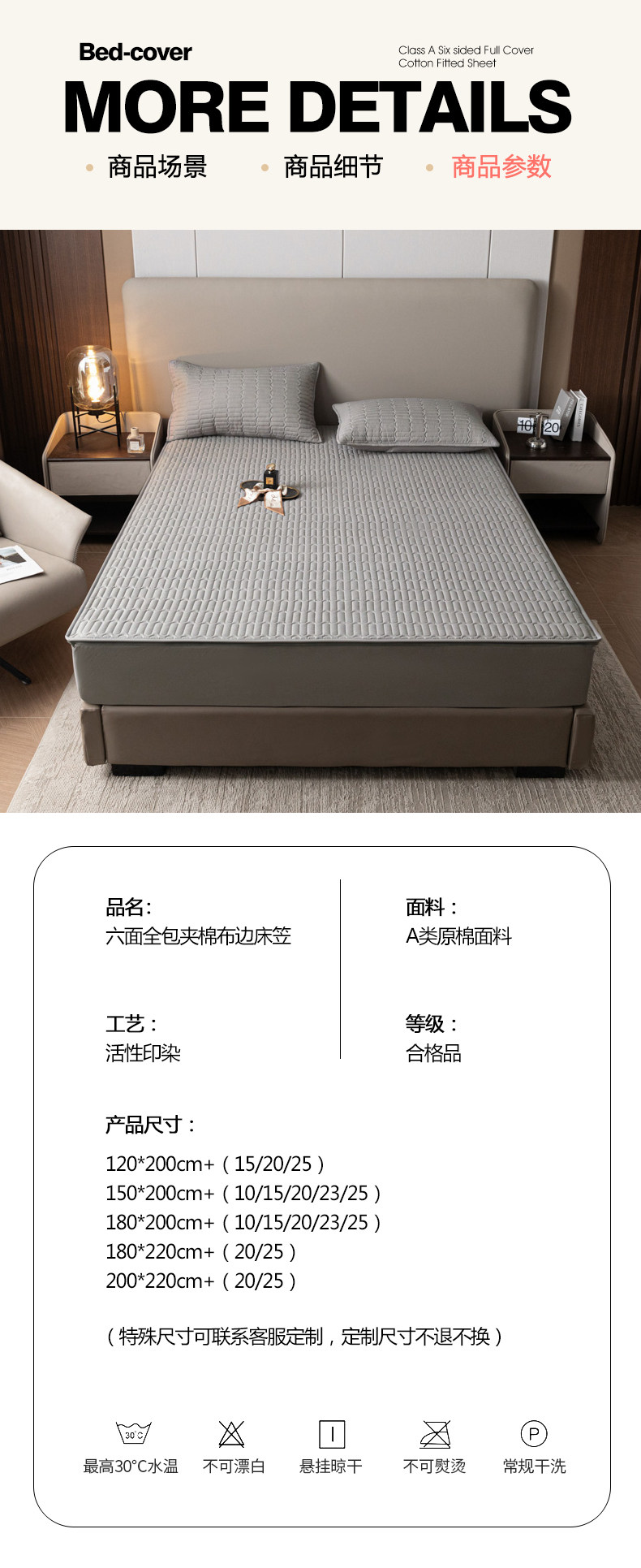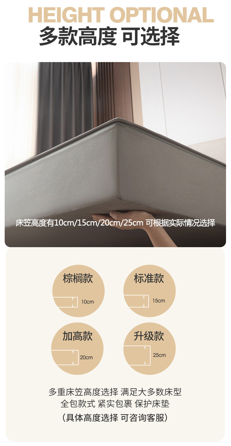 | Bed Sheets/Fitted Sheets Size | Single Piece of Fitted Sheet-120X200Cm+15Cm[Suitable for 15cm Mattress],Single Piece of Fitted Sheet-120X200Cm+20Cm[Suitable for 20cm Mattress],Single Piece of Fitted Sheet-120X200Cm+25Cm[Suitable for 25cm Mattress],Single Piece of Fitted Sheet-150X200Cm+10Cm[Suitable for 10cm Mattress],Single Piece of Fitted Sheet-150X200Cm+15Cm[Suitable for 15cm Mattress],Single Piece of Fitted Sheet-150X200Cm+20Cm[Suitable for 20cm Mattress],Single Piece of Fitted Sheet-150X200Cm+23Cm[Suitable for 23cm Mattress],Single Piece of Fitted Sheet-150X200Cm+25Cm[Suitable for 25cm Mattress],Single Piece of Fitted Sheet-180X200Cm+10Cm[Suitable for 10cm Mattress],Single Piece of Fitted Sheet-180X200Cm+15Cm[Suitable for 15cm Mattress],Single Piece of Fitted Sheet-180X200Cm+20Cm[Suitable for 20cm Mattress],Single Piece of Fitted Sheet-180X200Cm+23Cm[Suitable for 23cm Mattress],Single Piece of Fitted Sheet-180X200Cm+25Cm[Suitable for 25cm Mattress],Single Piece of Fitted Sheet-180X220Cm+20Cm[Suitable for 20cm Mattress],Single Piece of Fitted Sheet-180X220Cm+25Cm[Suitable for 25cm Mattress],Single Piece of Fitted Sheet-200X220Cm+20Cm[Suitable for 20cm Mattress],Single Piece of Fitted Sheet-200X220Cm+25Cm[Suitable for 25cm Mattress],[Three-Piece Fitted Sheet Set]120X200Cm+15Cm+1 Pair of Quilted Pillowcases of the Same Style,[Three-Piece Fitted Sheet Set]120X200Cm+Height 20cm+1 Pair of Quilted Pillowcases of the Same Style,[Three-Piece Fitted Sheet Set]120X200Cm+Height 25cm+1 Pair of Quilted Pillowcases of the Same Style,[Three-Piece Fitted Sheet Set]150X200Cm+Height 10cm+1 Pair of Quilted Pillowcases of the Same Style,[Three-Piece Fitted Sheet Set]150X200Cm+Height 15cm+1 Pair of Quilted Pillowcases of the Same Style,[Three-Piece Fitted Sheet Set]150X200Cm+Height 20cm+1 Pair of Quilted Pillowcases of the Same Style,[Three-Piece Fitted Sheet Set]150X200Cm+Height 23cm+1 Pair of Quilted Pillowcases of the Same Style,[Three-Piece Fitted Sheet Set]150X200Cm+Height 25cm+1 Pair of Quilted Pillowcases of the Same Style,[Three-Piece Fitted Sheet Set]180X200Cm+Height 10cm+1 Pair of Quilted Pillowcases of the Same Style,[Three-Piece Fitted Sheet Set]180X200Cm+Height 15cm+1 Pair of Quilted Pillowcases of the Same Style,[Three-Piece Fitted Sheet Set]180X200Cm+Height 20cm+1 Pair of Quilted Pillowcases of the Same Style,[Three-Piece Fitted Sheet Set]180X200Cm+Height 23cm+1 Pair of Quilted Pillowcases of the Same Style,[Three-Piece Fitted Sheet Set]180X200Cm+Height 25cm+1 Pair of Quilted Pillowcases of the Same Style,[Three-Piece Fitted Sheet Set]180X220Cm+Height 20cm+1 Pair of Quilted Pillowcases of the Same Style,[Three-Piece Fitted Sheet Set]180X220Cm+Height 25cm+1 Pair of Quilted Pillowcases of the Same Style,[Three-Piece Fitted Sheet Set]200X220Cm+Height 20cm+1 Pair of Quilted Pillowcases of the Same Style,[Three-Piece Fitted Sheet Set]200X220Cm+Height 25cm+1 Pair of Quilted Pillowcases of the Same Style |