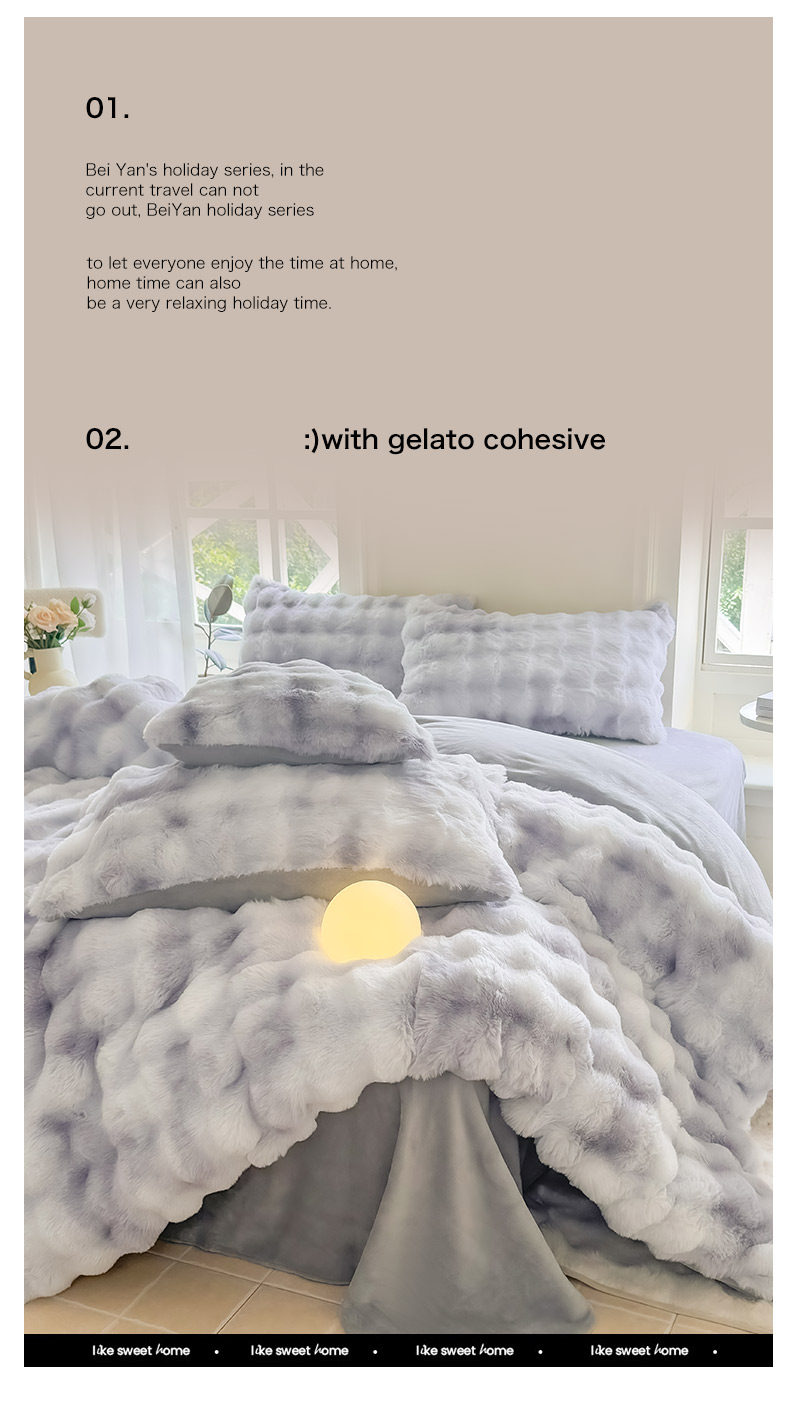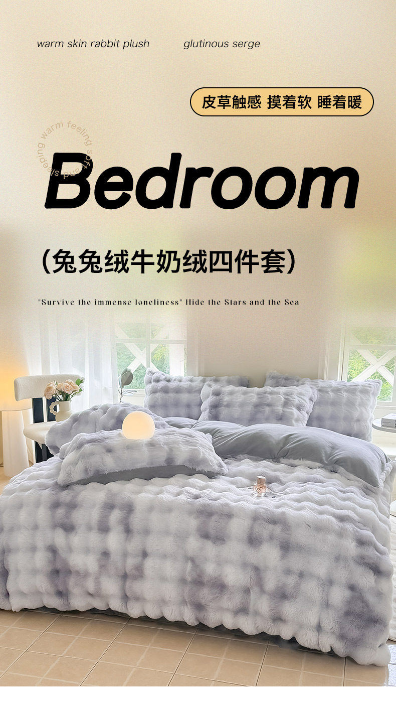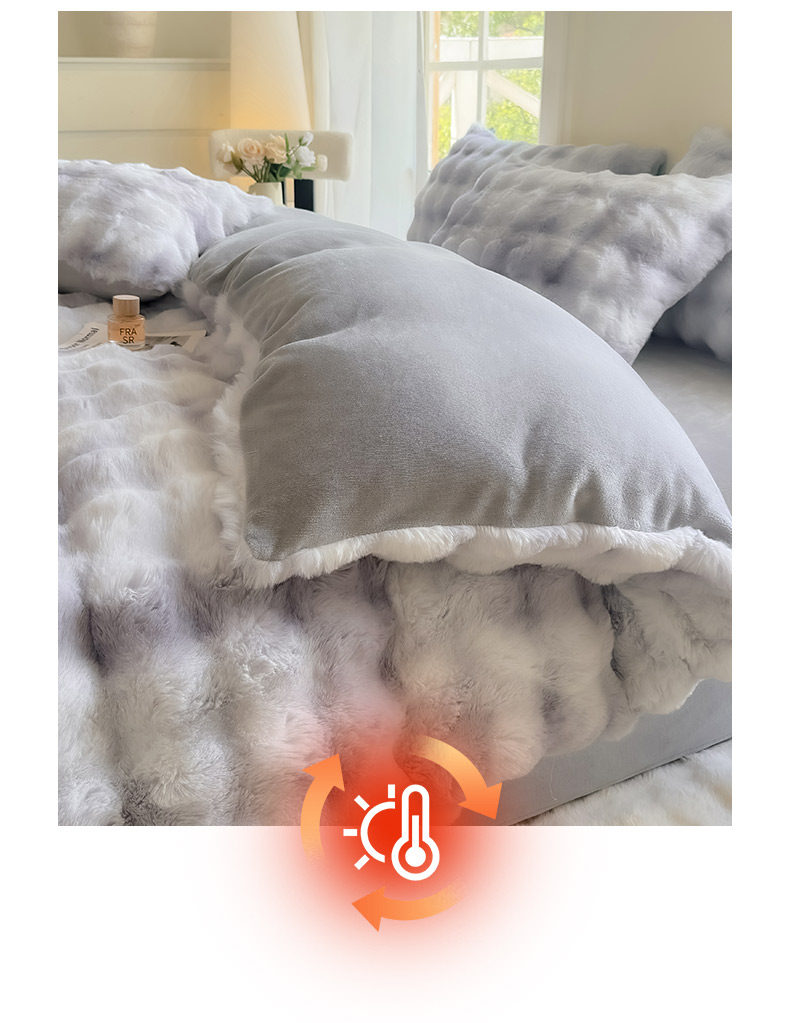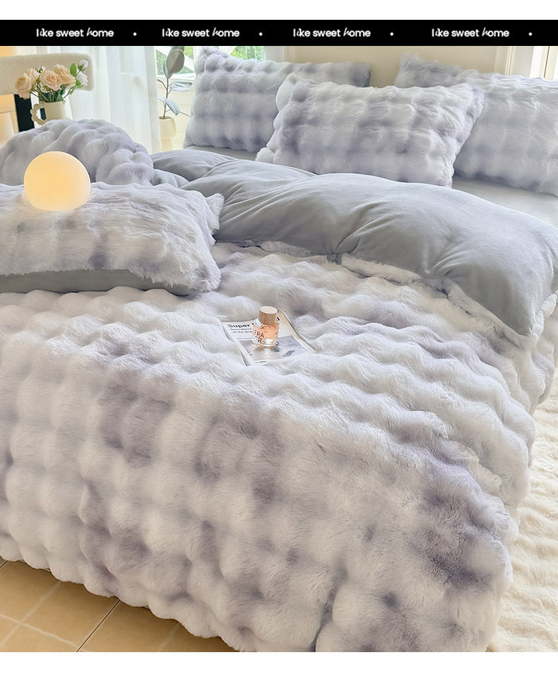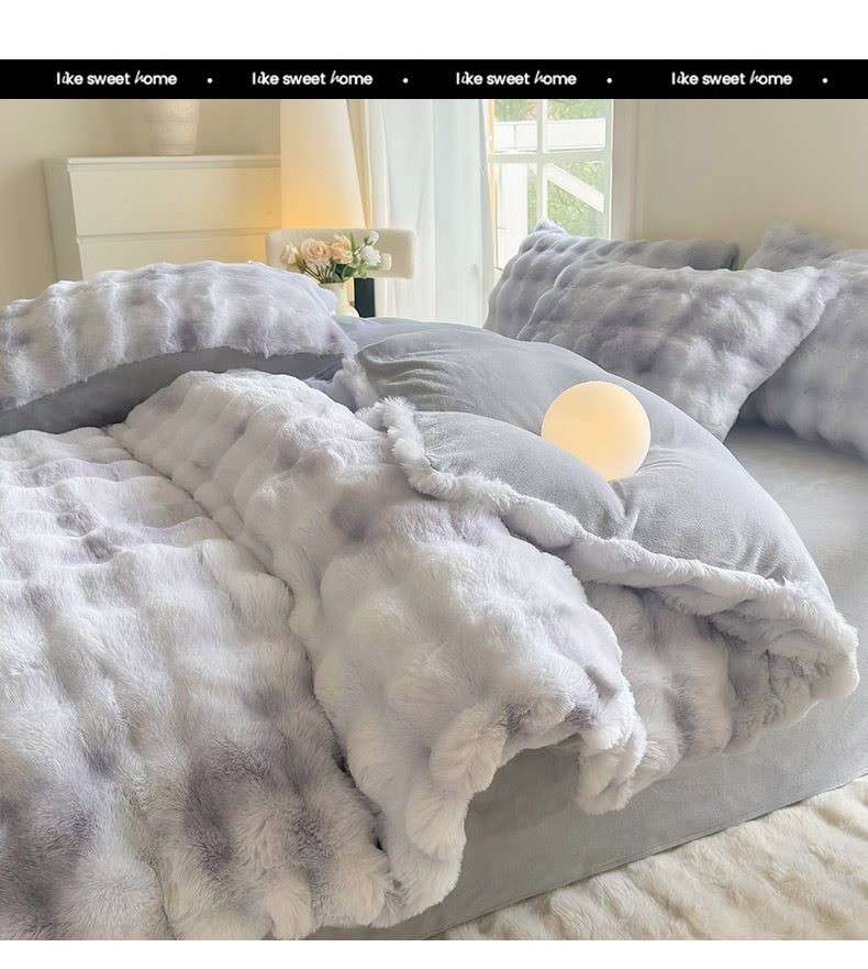 Rabbit Fur Plush Quilt, Winter Quilt, Thickened and Warm, Milk Velvet Quilt Core, Bedding Set, Complete Set, Coral Velvet Cotton Quilt Core