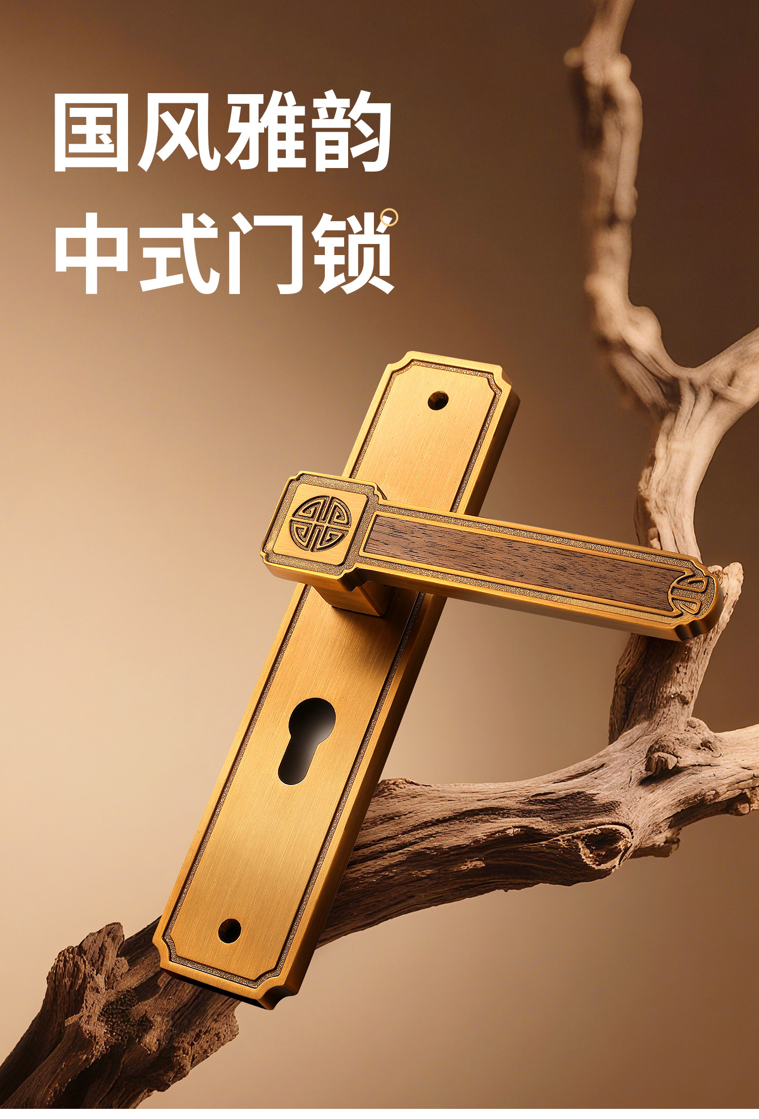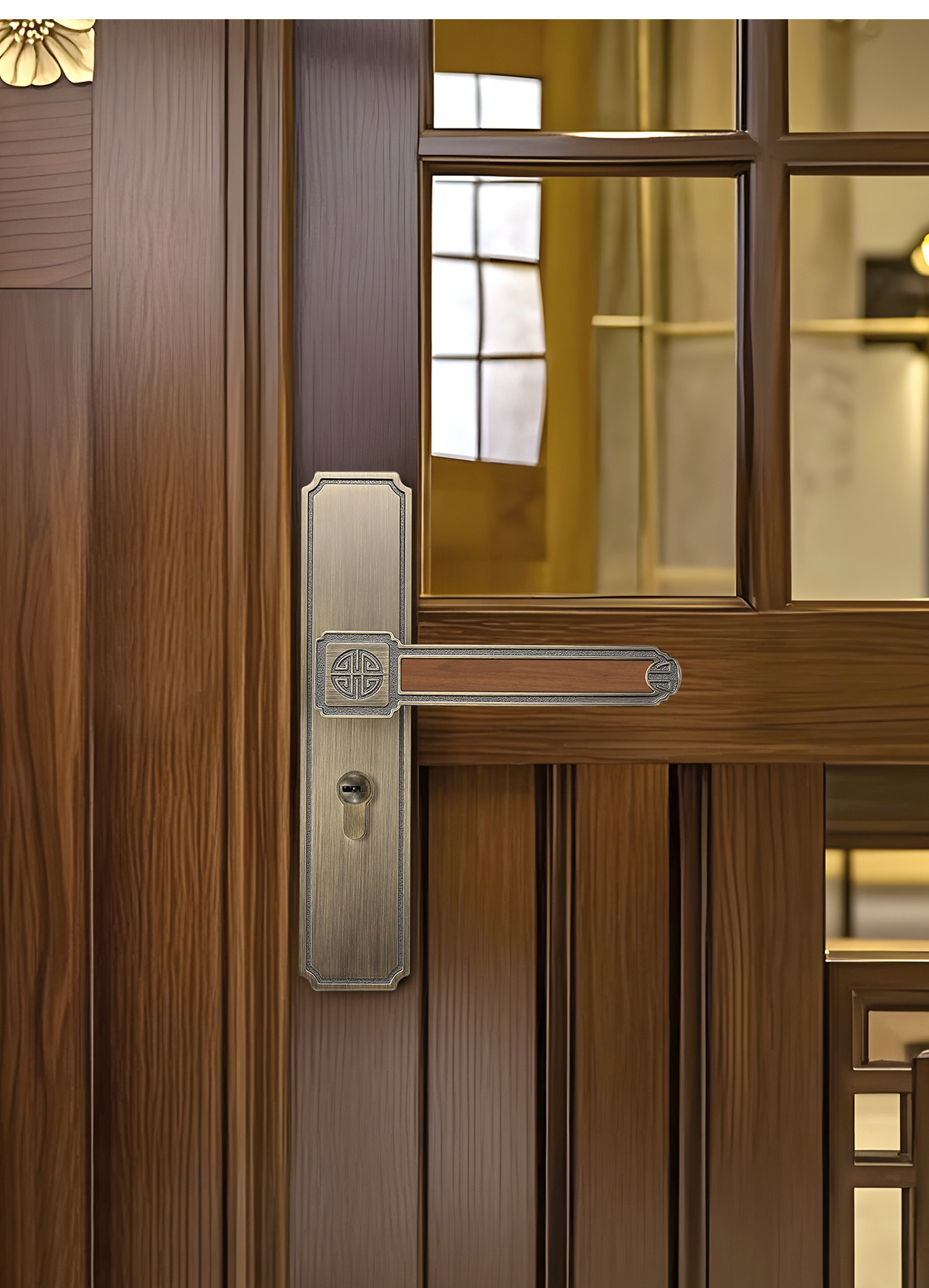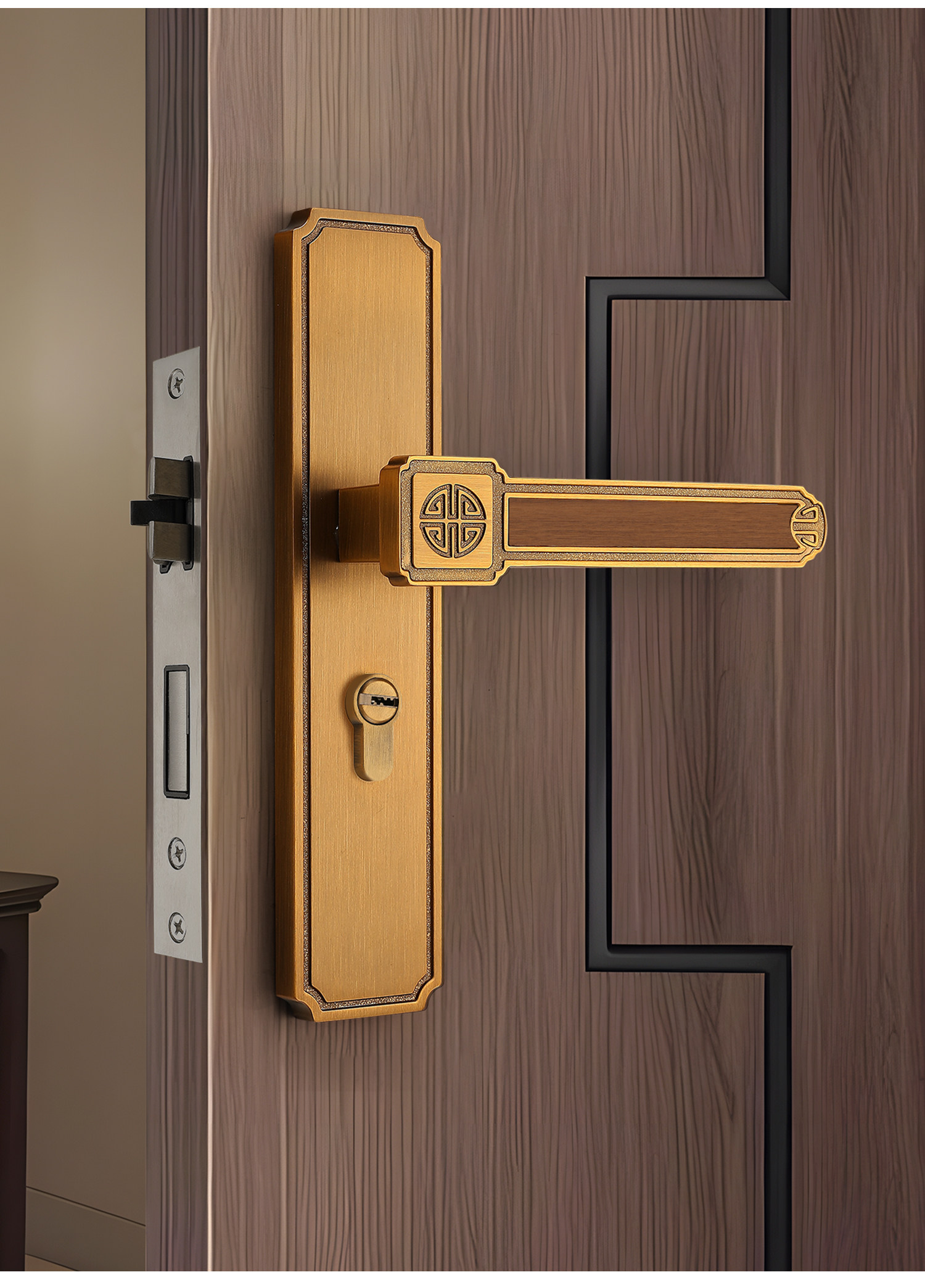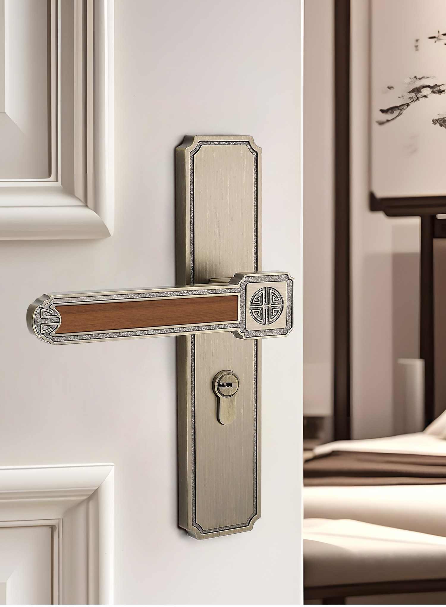 Song-Style Retro Style Home Bedroom Silent Door Lock, Song-Style Aesthetic Indoor Wooden Door Lock Handle